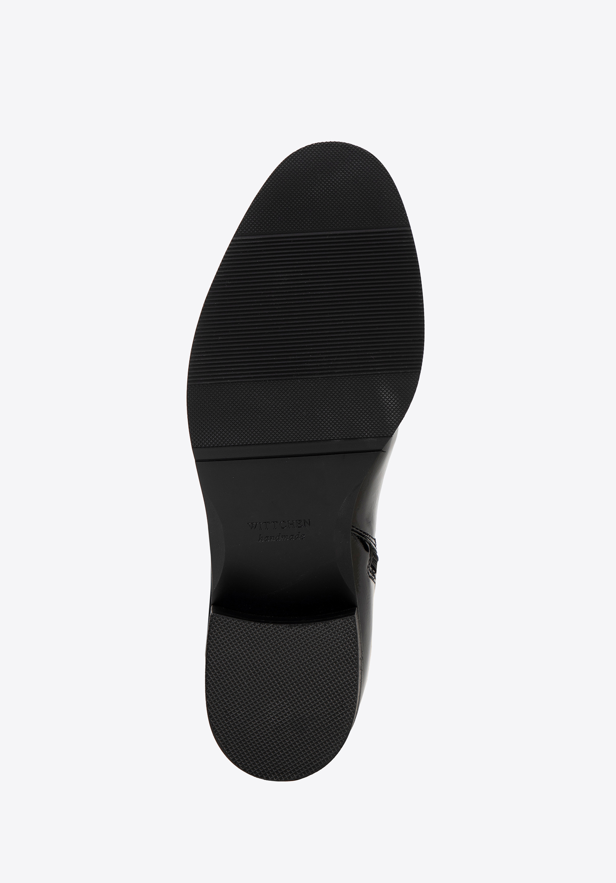 - Anyag: A cipő alsó része lakkbőrből készült, amely garantálja a tartósságot és az elegáns megjelenést sok évszakon át.