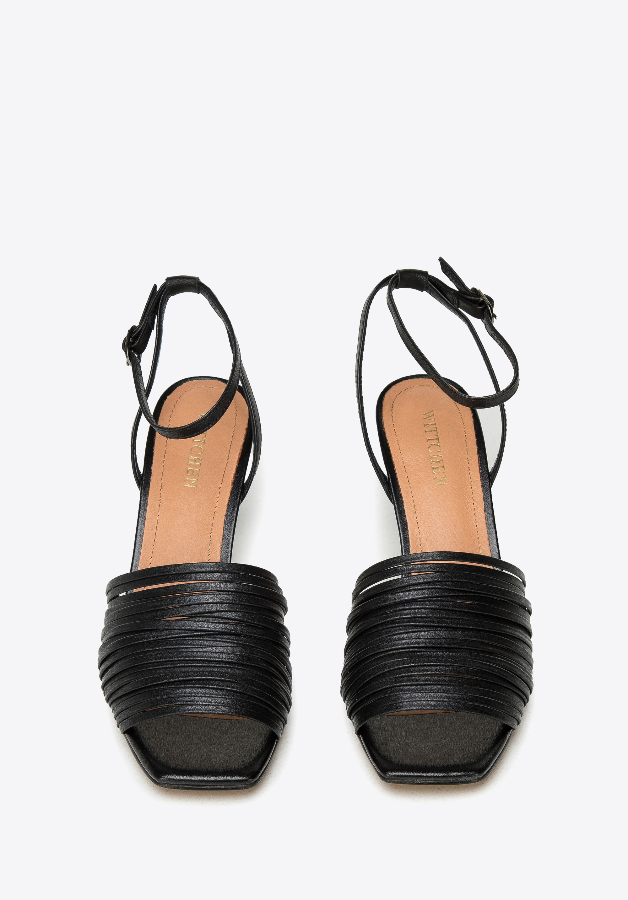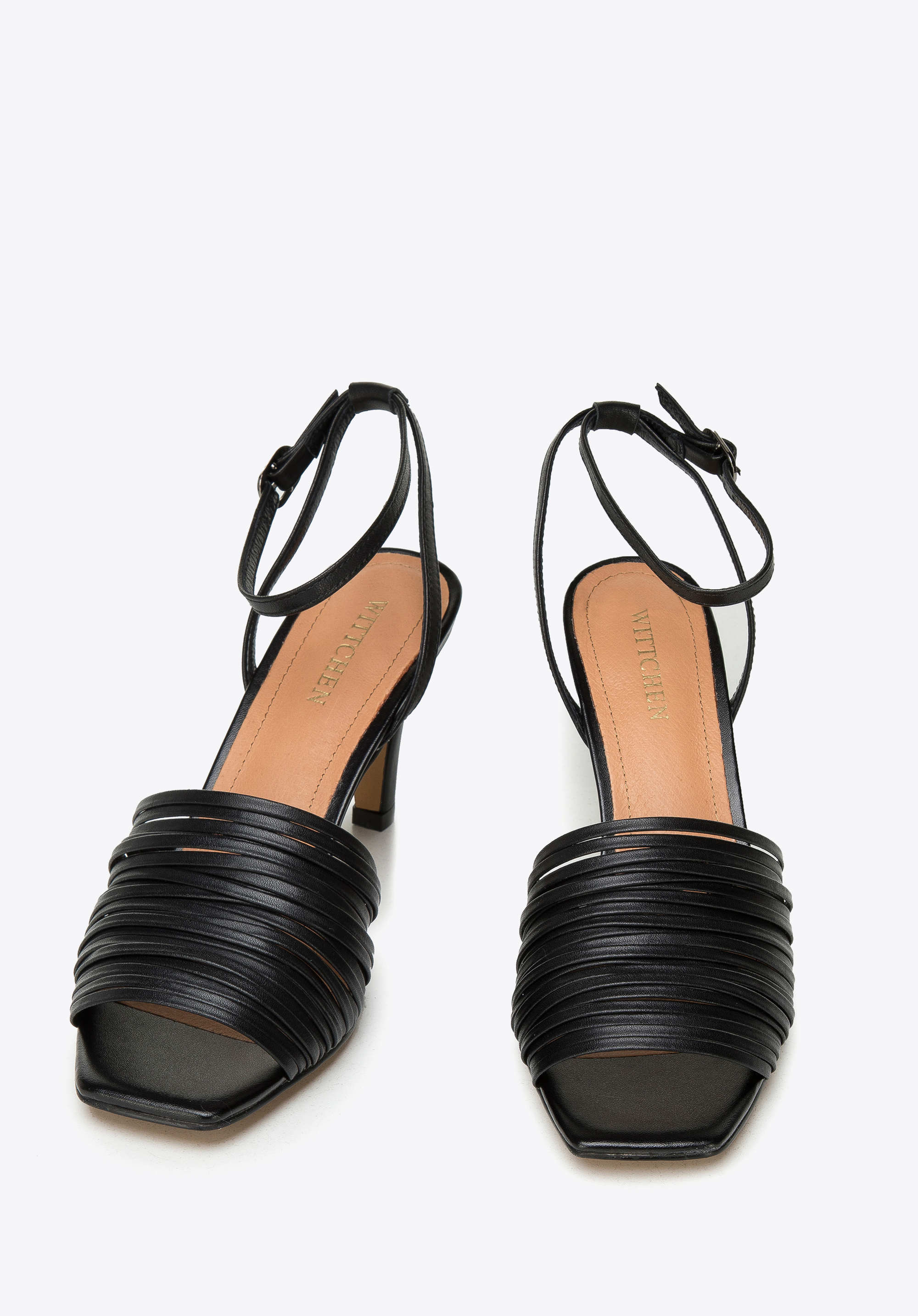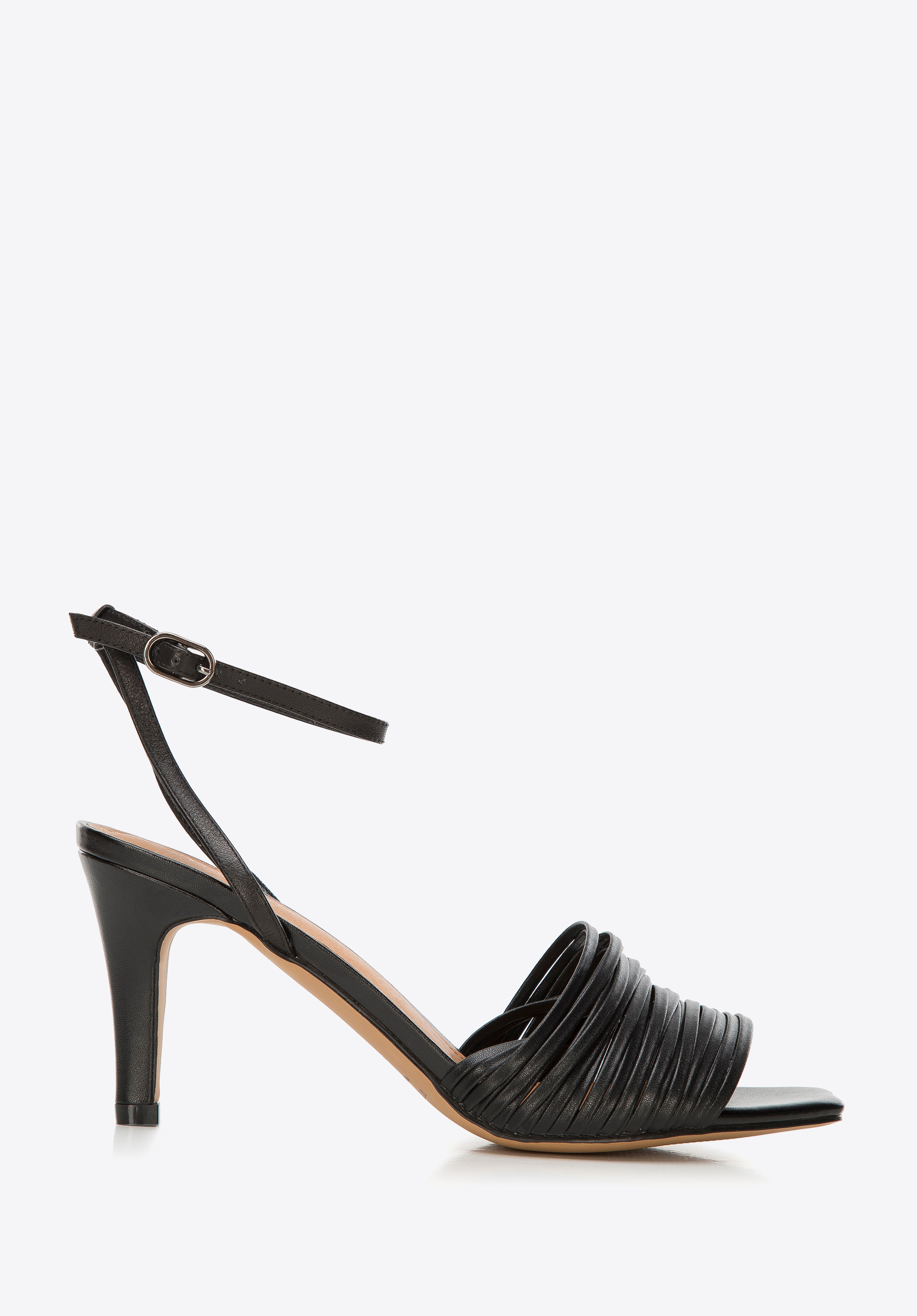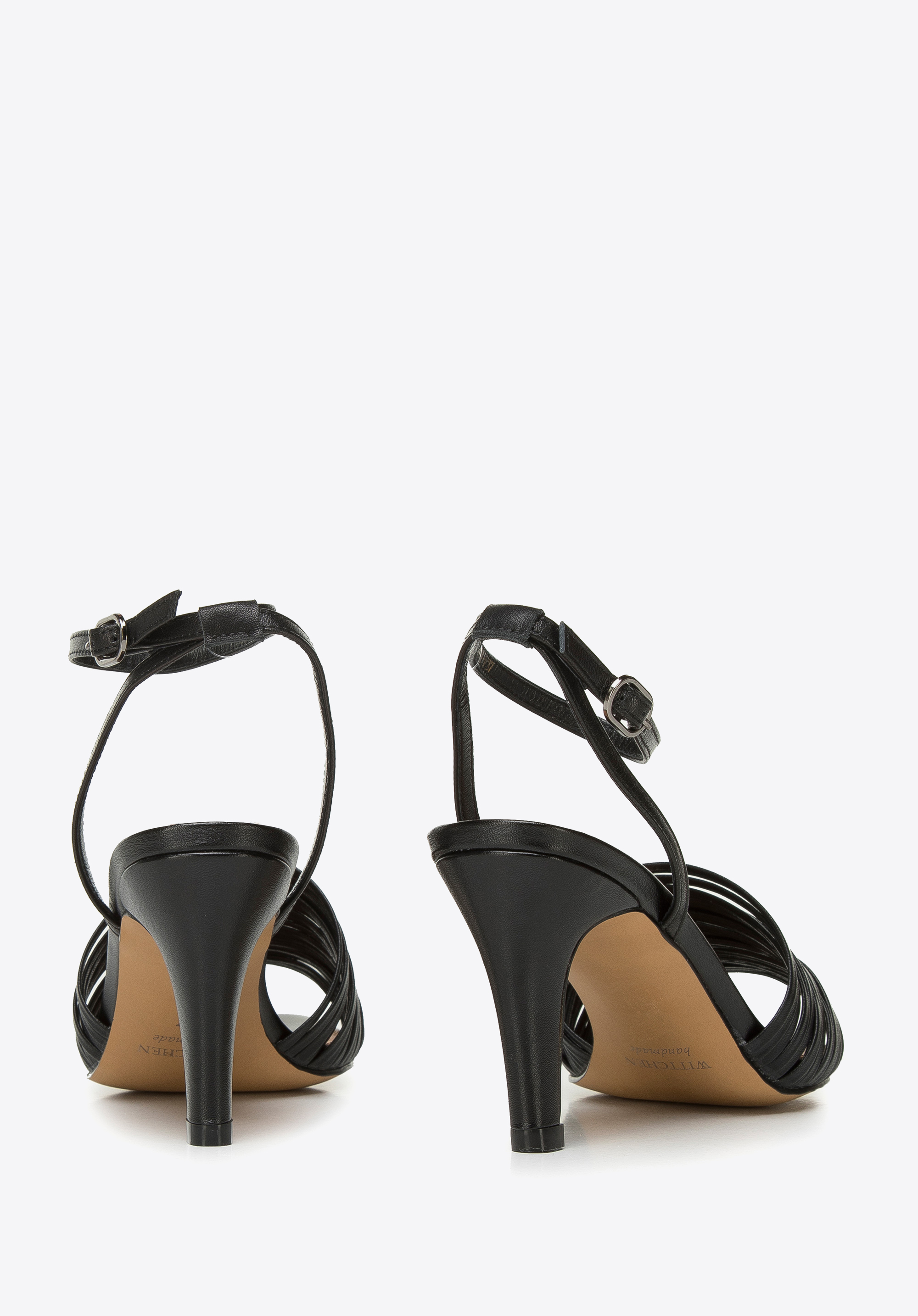 Női bőr magassarkú szandál vékony pántokkal fekete