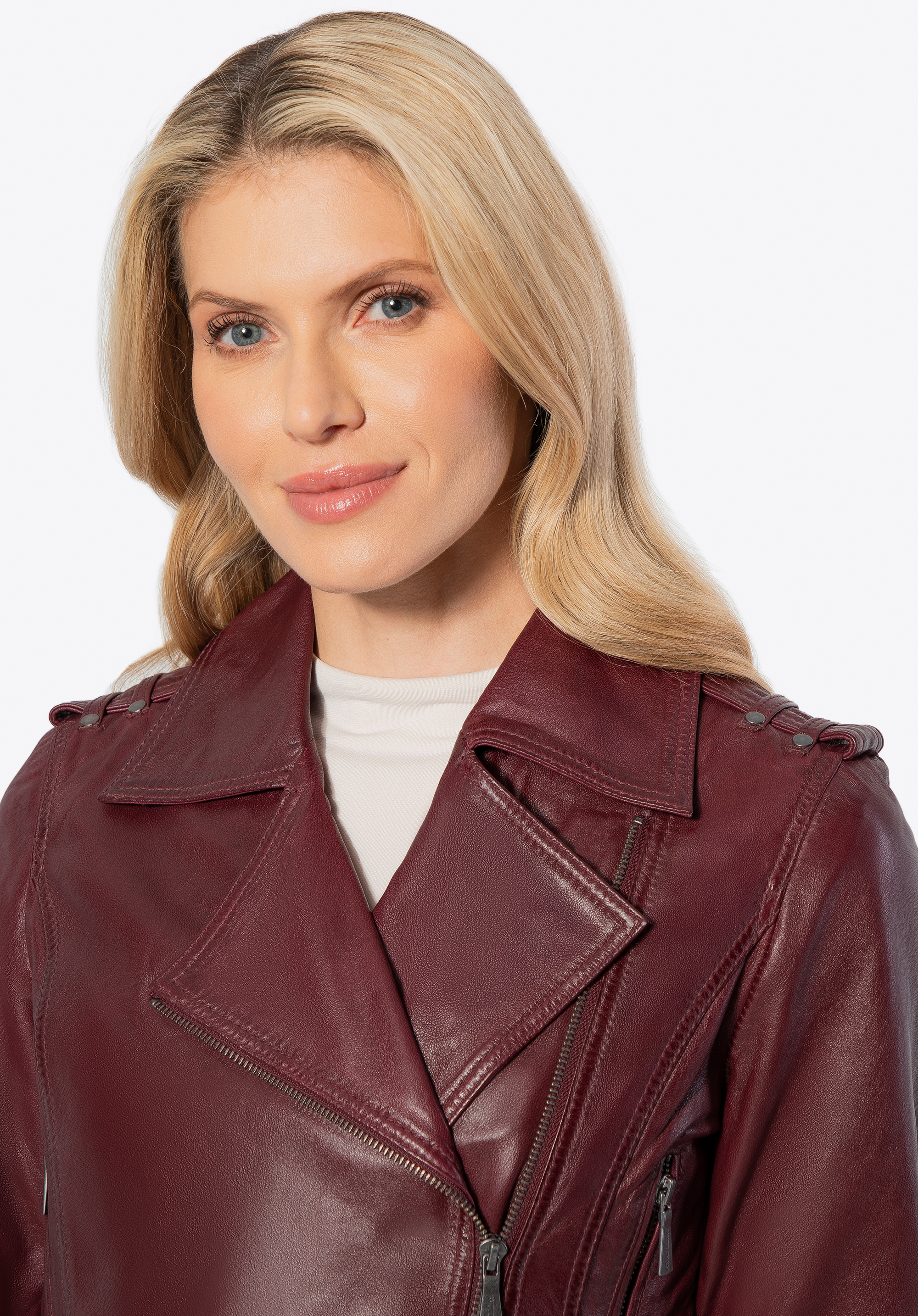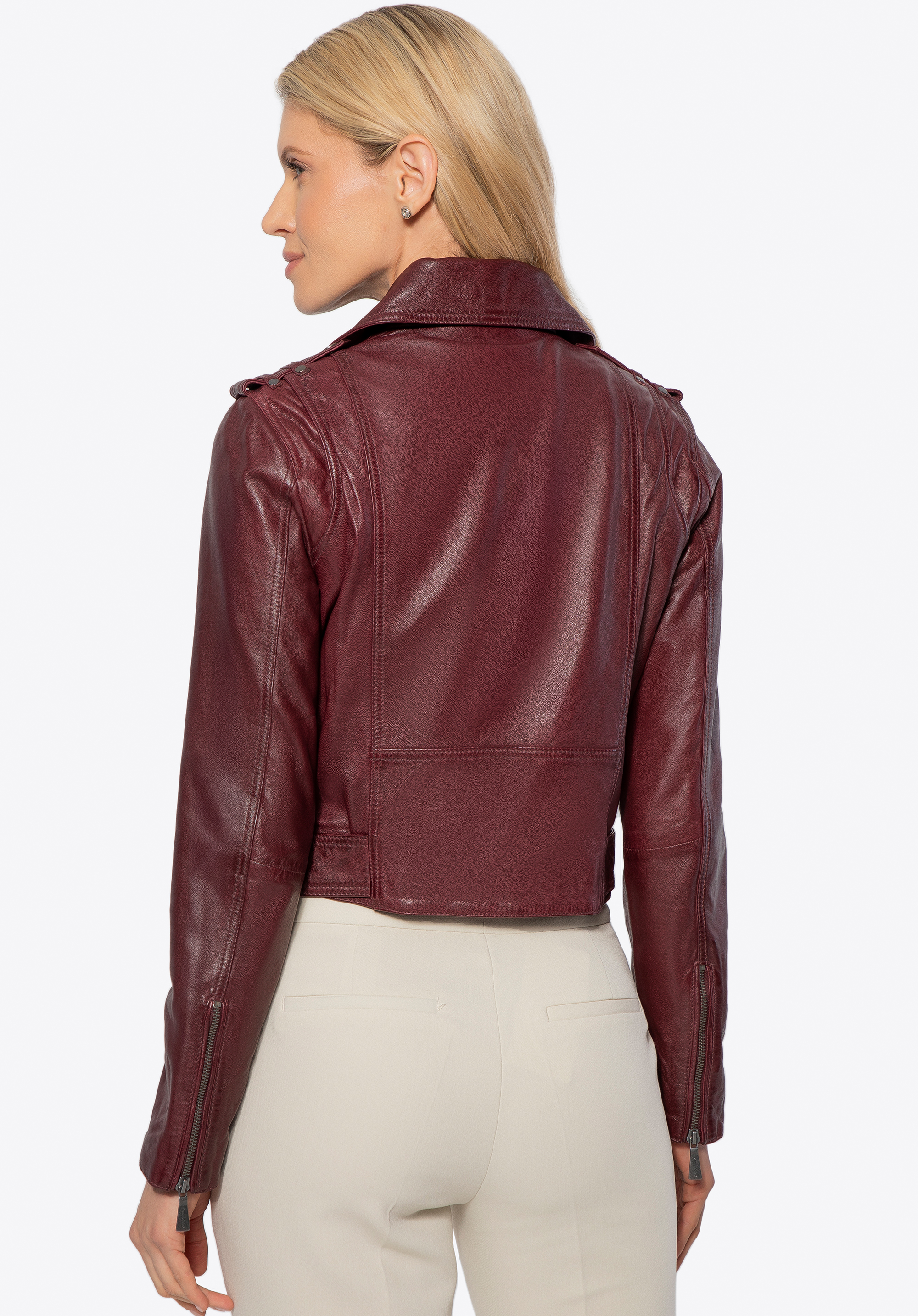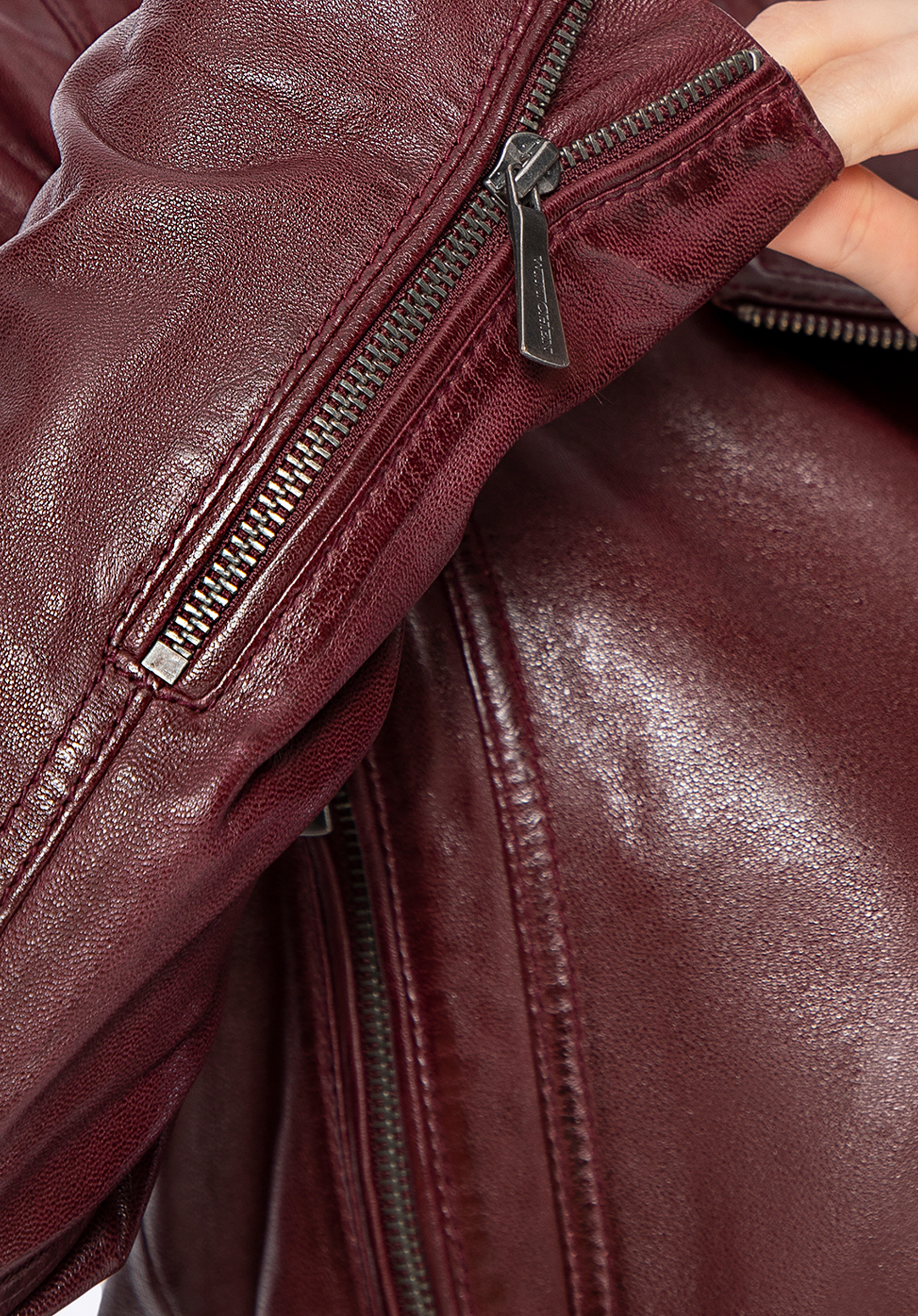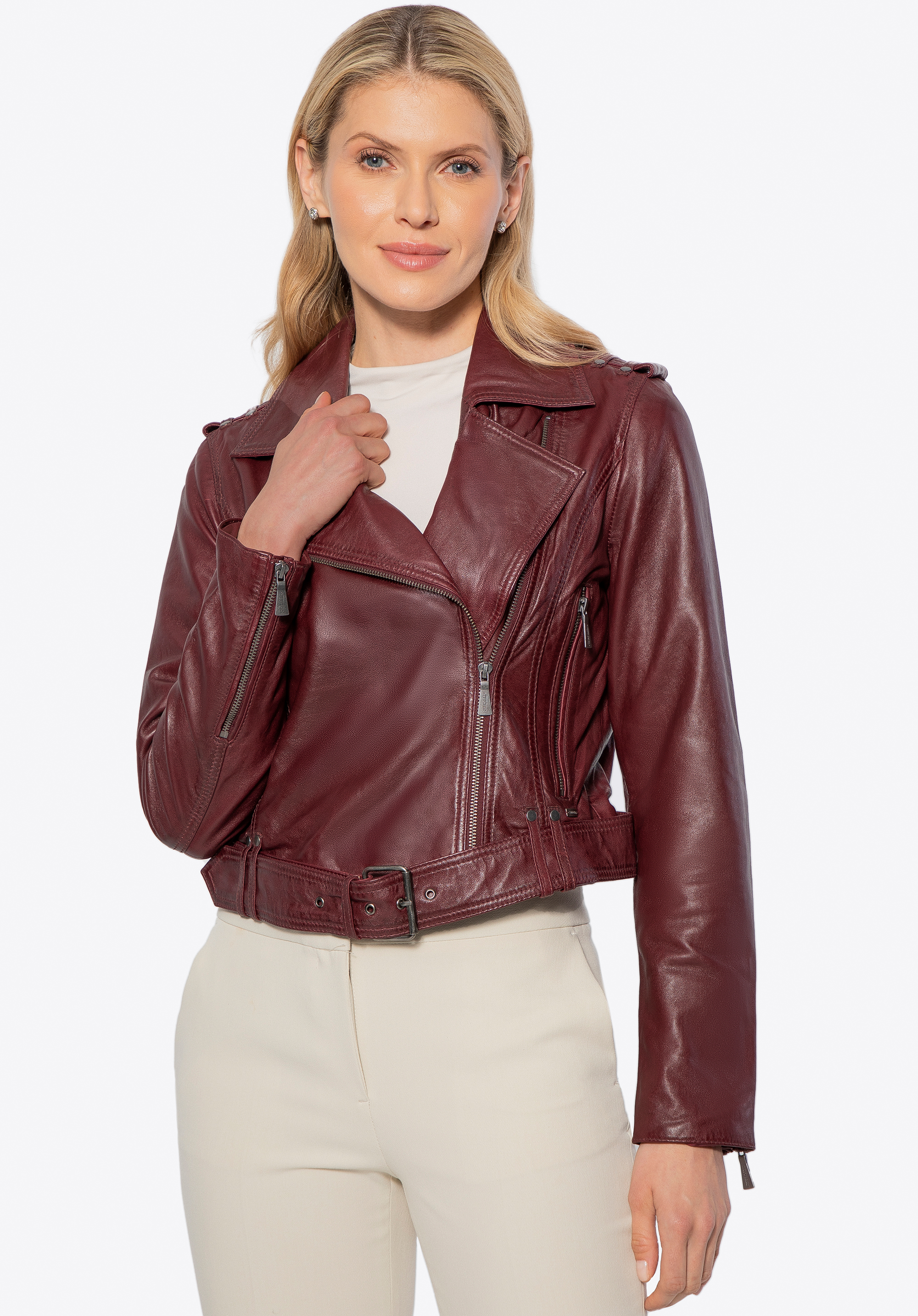 Alakítsd át mindennapi megjelenésed valami igazán különlegessé ezzel a motoros dzsekivel, amely ötvözi az eleganciát a lázadó éllel. Természetes bőrből készült, így nem csak stílusos, hanem rendkívül kényelmes is. A cipzáras rögzítés és az állítható deréköv fém csattal tökéletes illeszkedést biztosít, kiemelve a nőies sziluettet. Az ujjak cipzárral állíthatók, így a megjelenést az igényeid szerint alakíthatod.
