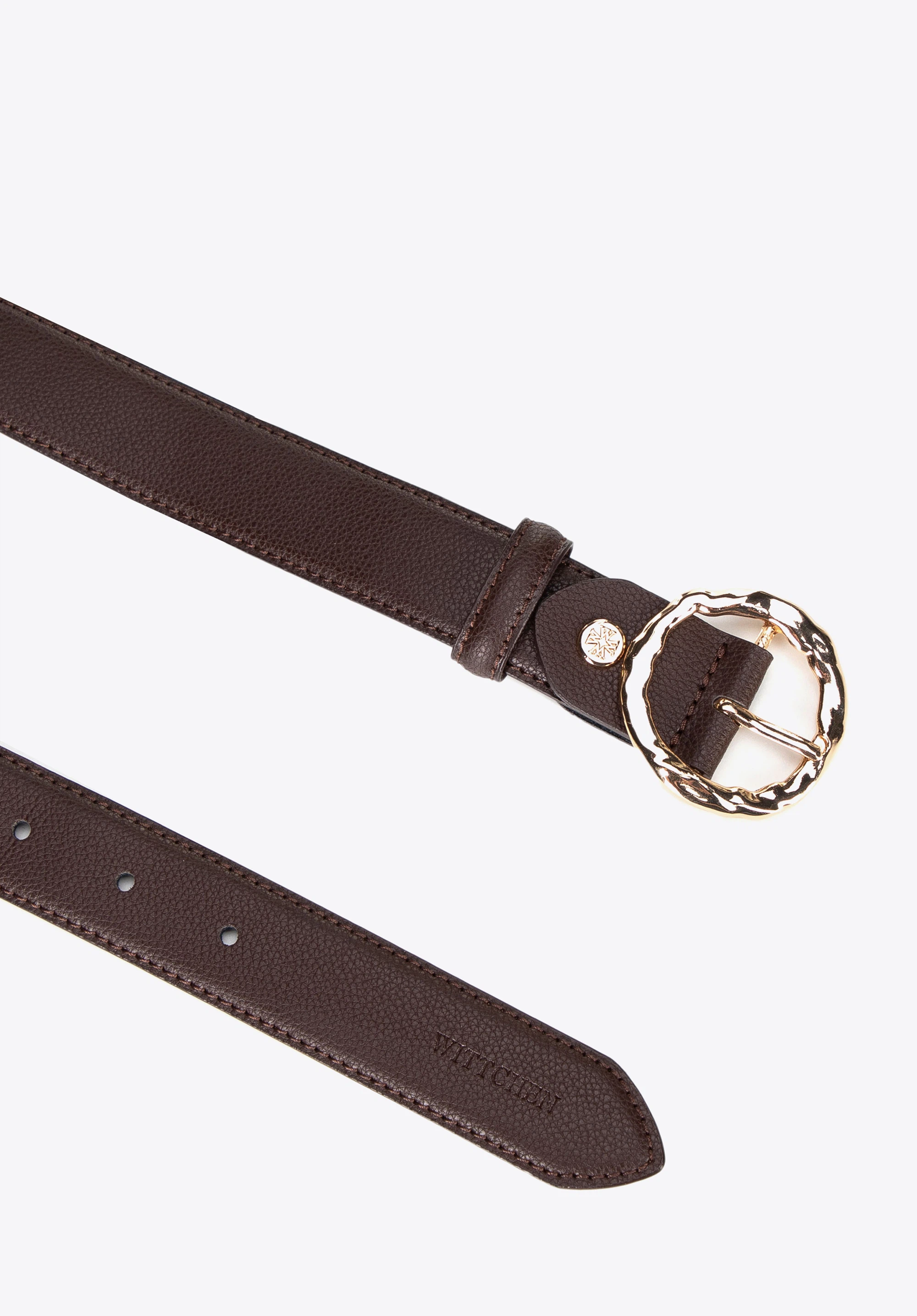 Női övünk egy minimalista kiegészítő, amely tökéletesen kiegészíti mind a hétköznapi, mind az elegáns öltözéket. Sima, természetes bőrből készült, egyszerű dizájnnal és kerek csattal rendelkezik, amely divatos hatást kelt, miközben könnyed és kifinomult megjelenést biztosít. A dizájnt diszkréten dombornyomott márkalogó teszi teljessé, kiemelve a részletekre való odafigyelést. Az öv puha, bársony tasakban érkezik, logóval – ajándéknak is tökéletes.