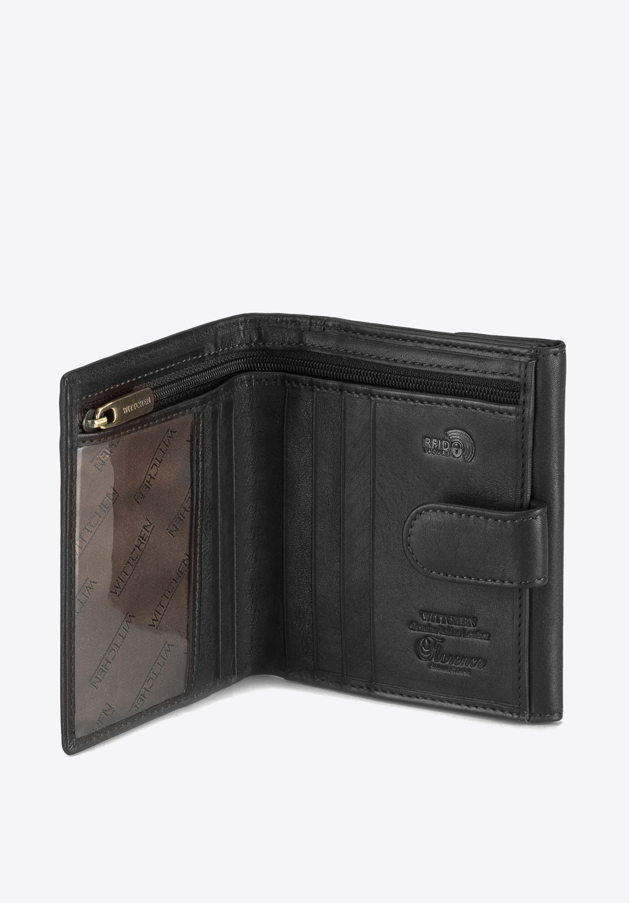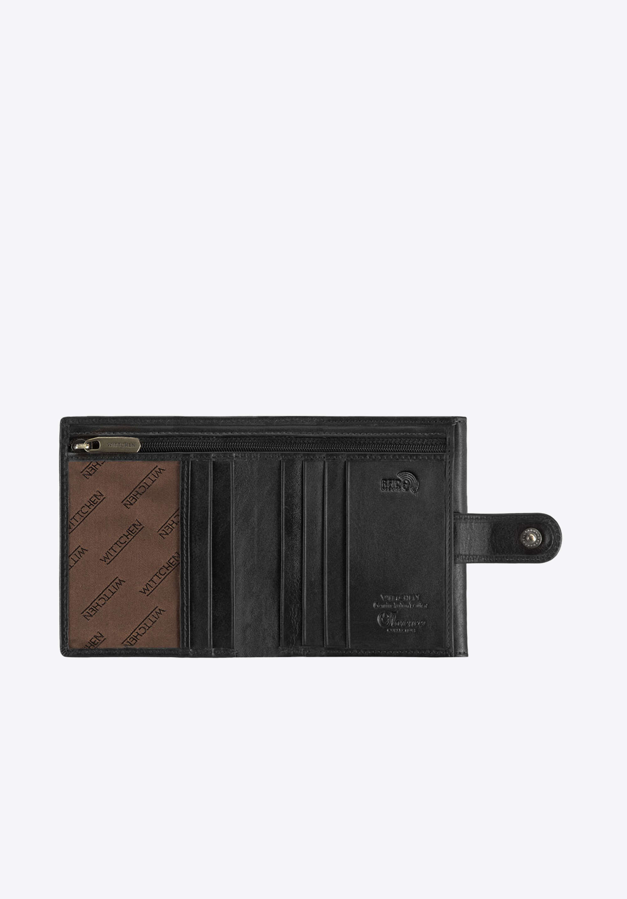 Közepes méretű univerzális pénztárca, puha borjúbőrből. Logó - WITTCHEN bőr dombornyomású címer.