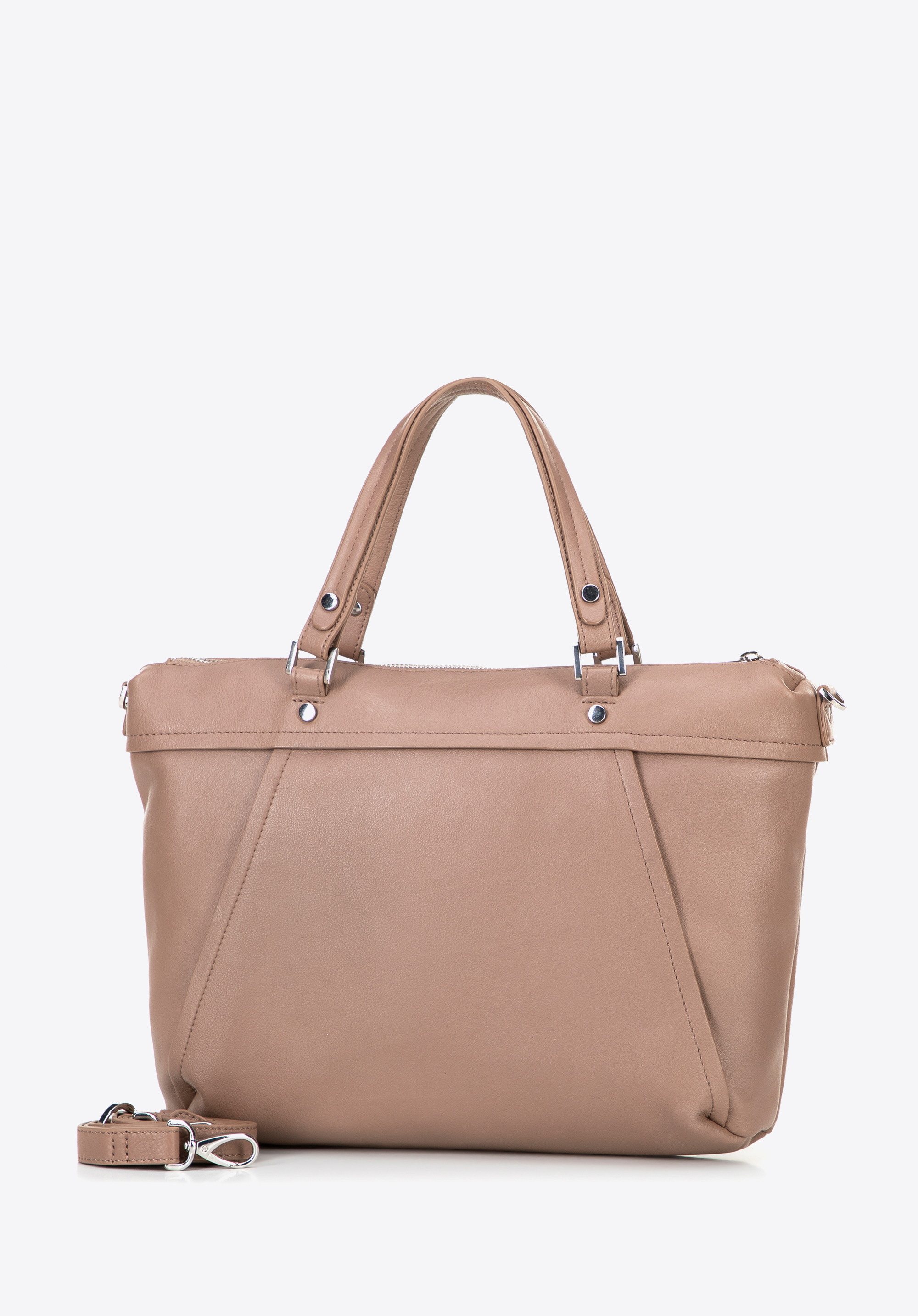 Olyan kézitáskát keresel, amely a mindennapi kényelmet ötvözi az időtlen stílussal? Akkor a természetes bőrből készült shoppertáska tökéletes választás számodra. Cipzáros, praktikus belsővel, két zsebbel rendelkezik, amelyek közül az egyik cipzáros – minden a helyén marad, amire szükséged van. Az elején két cipzáras zseb található – ideális a telefon, a kulcsok vagy más, kéznél tartandó apróságok számára. Hordd úgy, ahogy szeretnéd – a kényelmes fogantyúknál vagy az állítható, levehető pántnál fogva. Levehető bojt a cipzárnál – egy apró részlet, amely nagy hatást gyakorol.