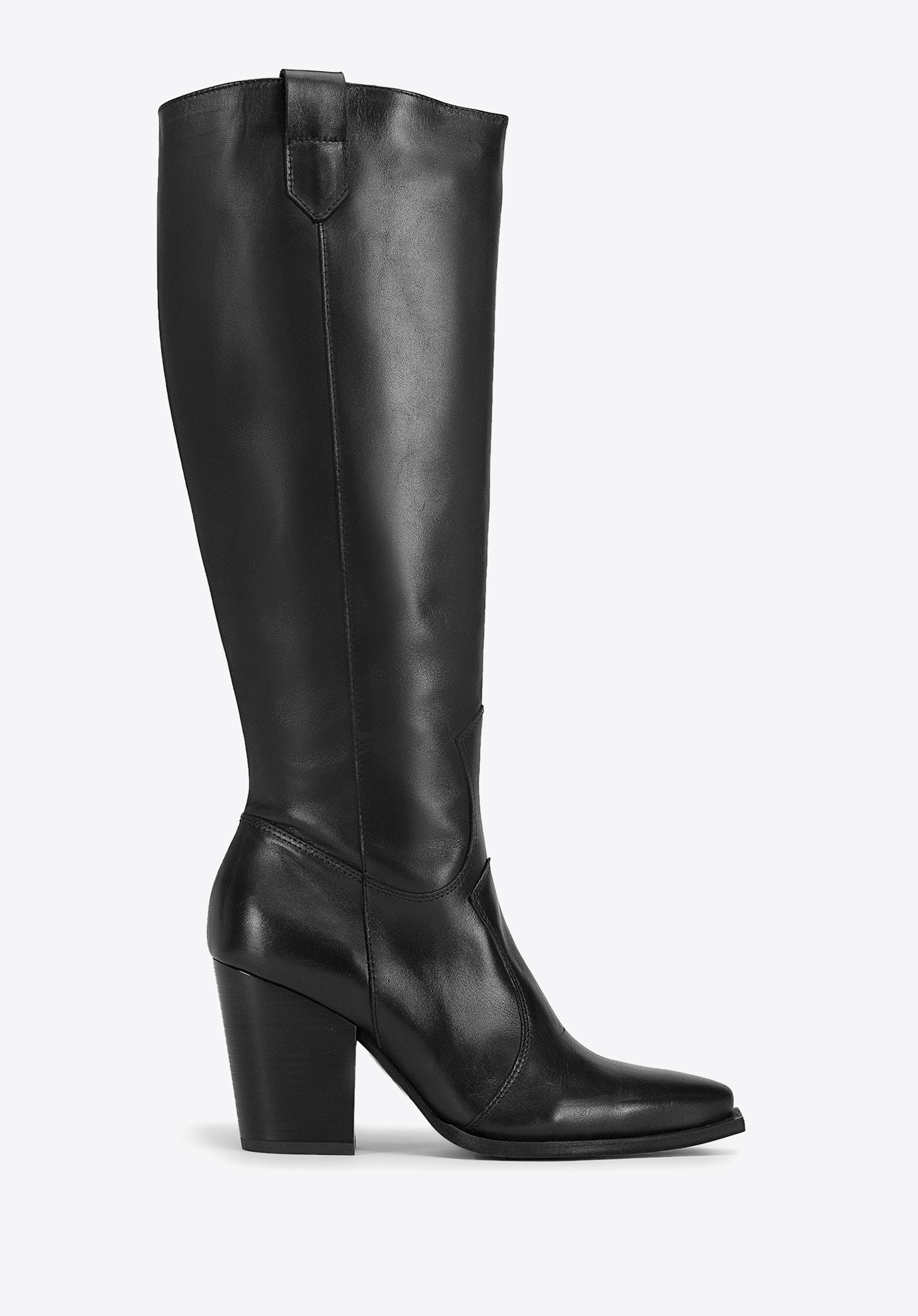 A hosszú felsőrész kiemeli a lábat, és a belső cipzárnak köszönhetően könnyen felvehető.A magas sarkú cowboy bőrcsizma remek kiegészítője mind a nőies fodros ruháknak, mind a farmer- és a bőrdzsekinek.