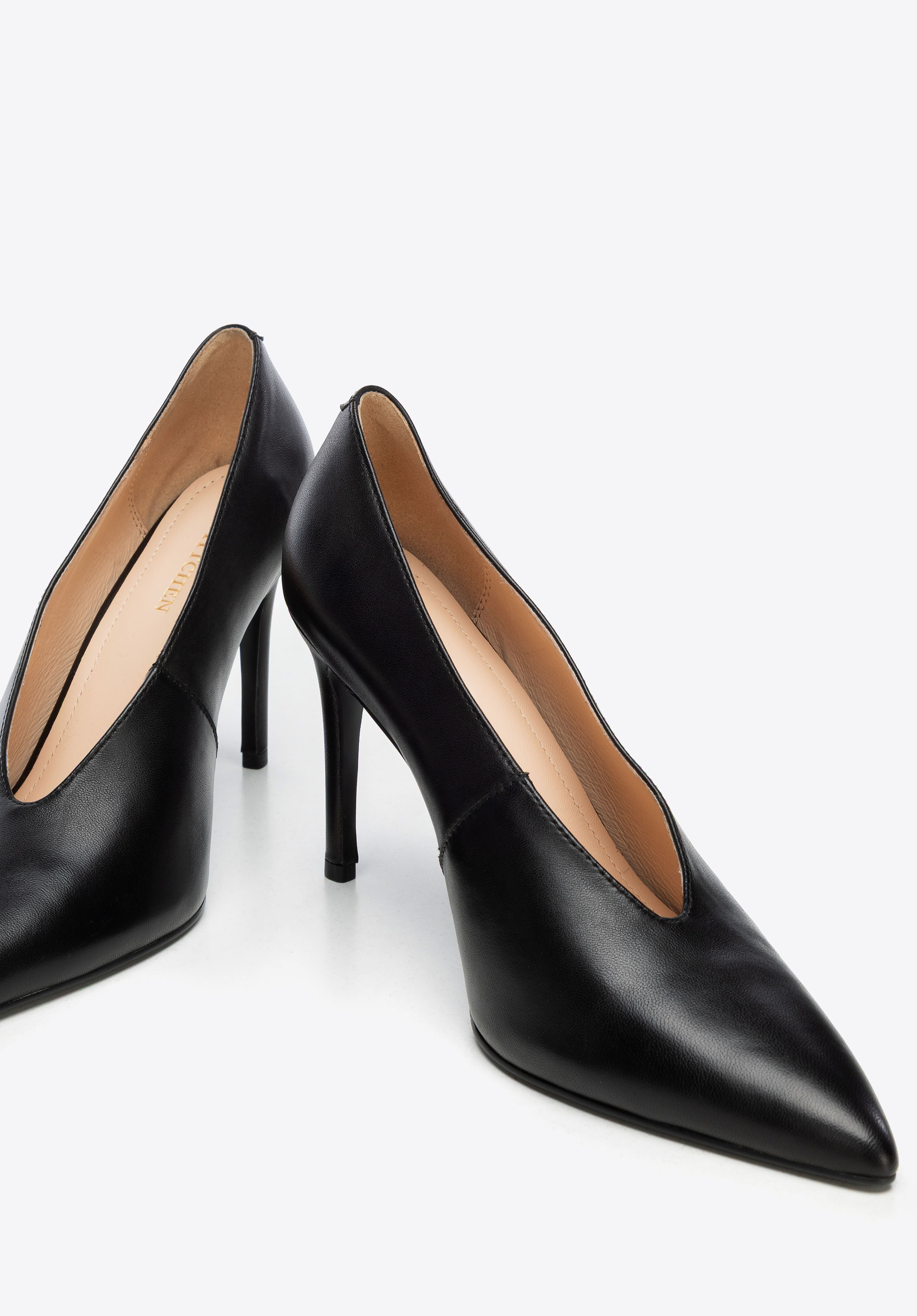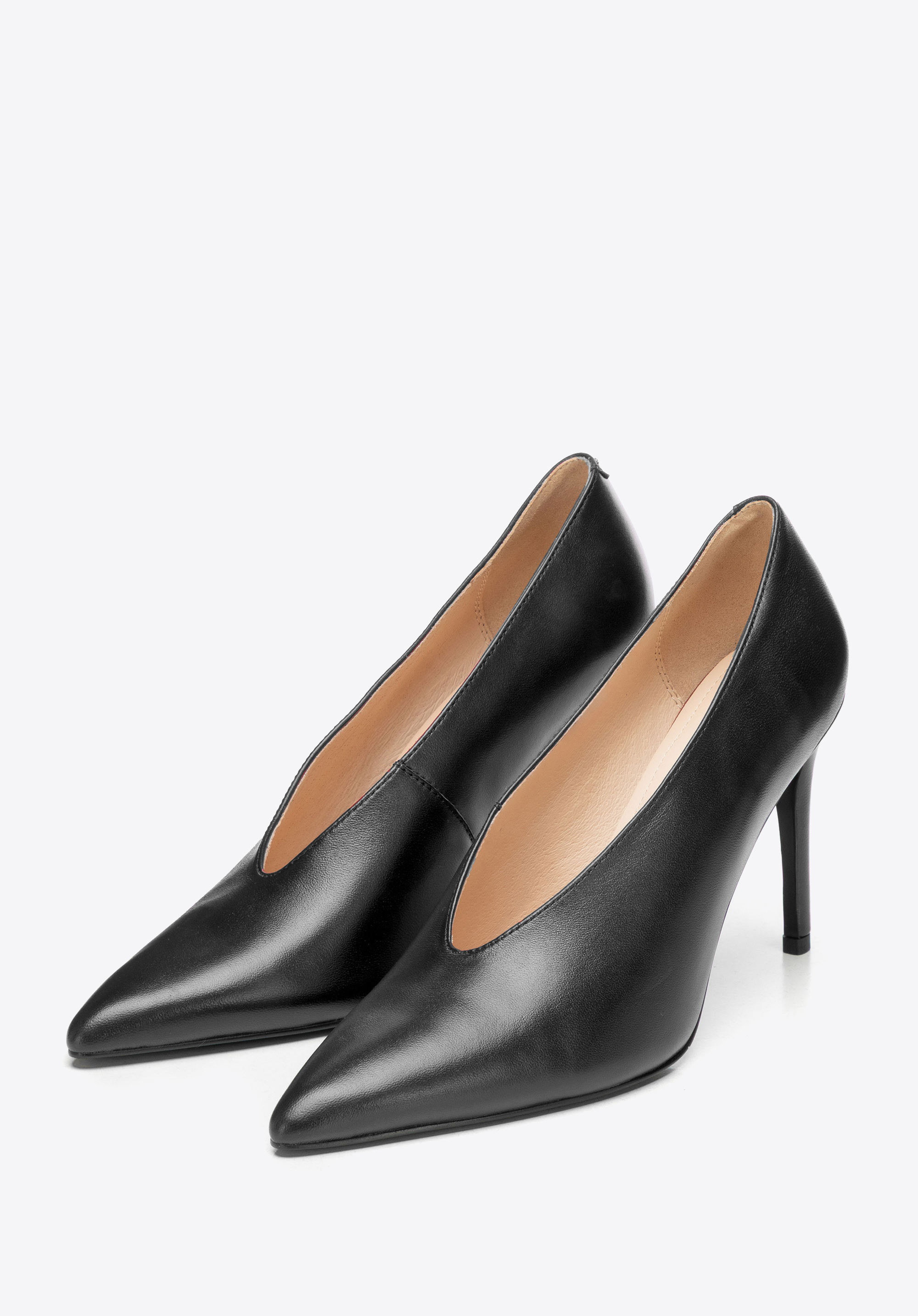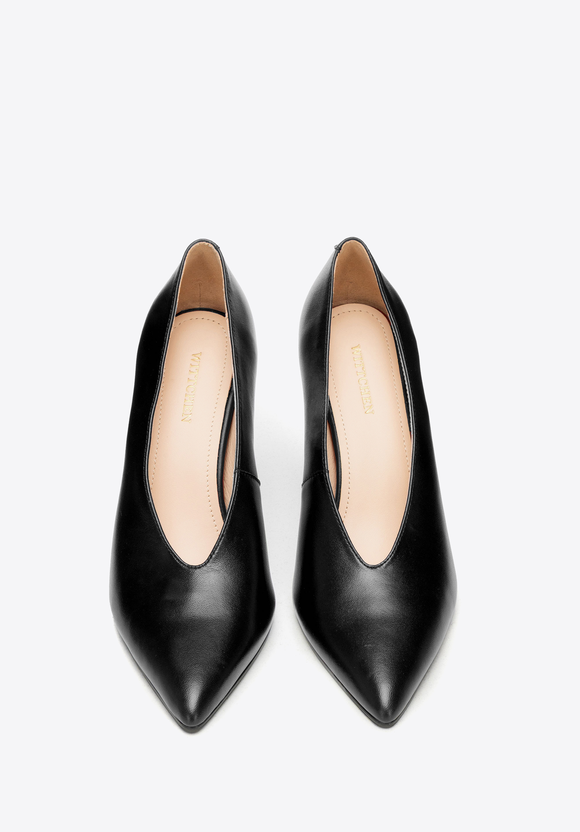 Női bőr V-kivágású tűsarkú Szín: fekete
