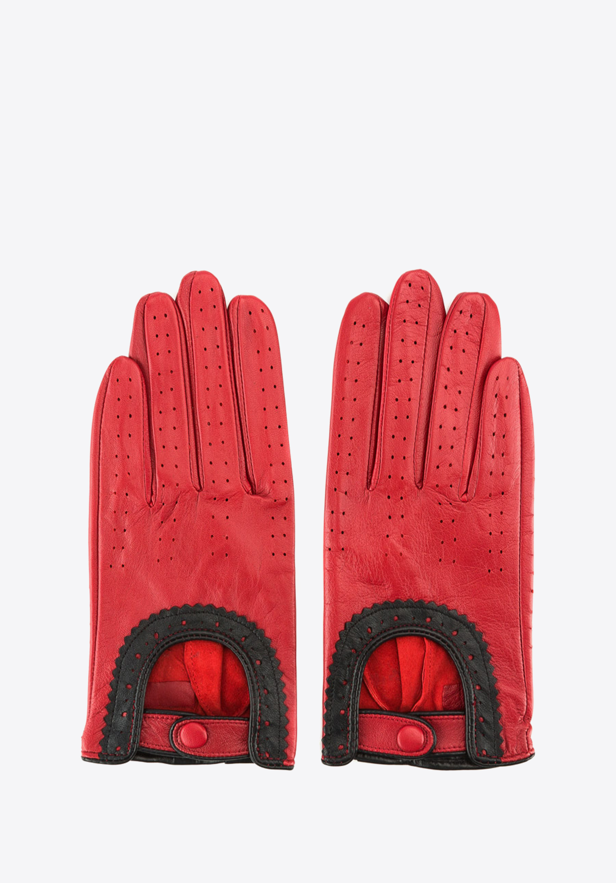 Női vezetőkesztyű eredeti lyukacsos díszítéssel, a legjobb minőségű báránybőrből, gondosan kidolgozott részletekkel. Stílusos és praktikus kesztyű, a felvételt megkönnyítő patenttal, kifejezetten nőies darab, így sokféle női összeállítás dísze lehet.