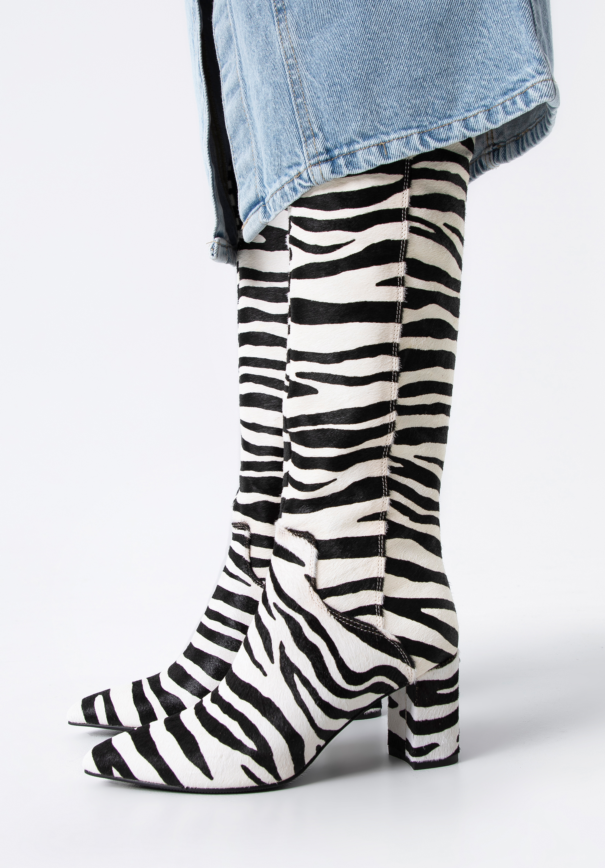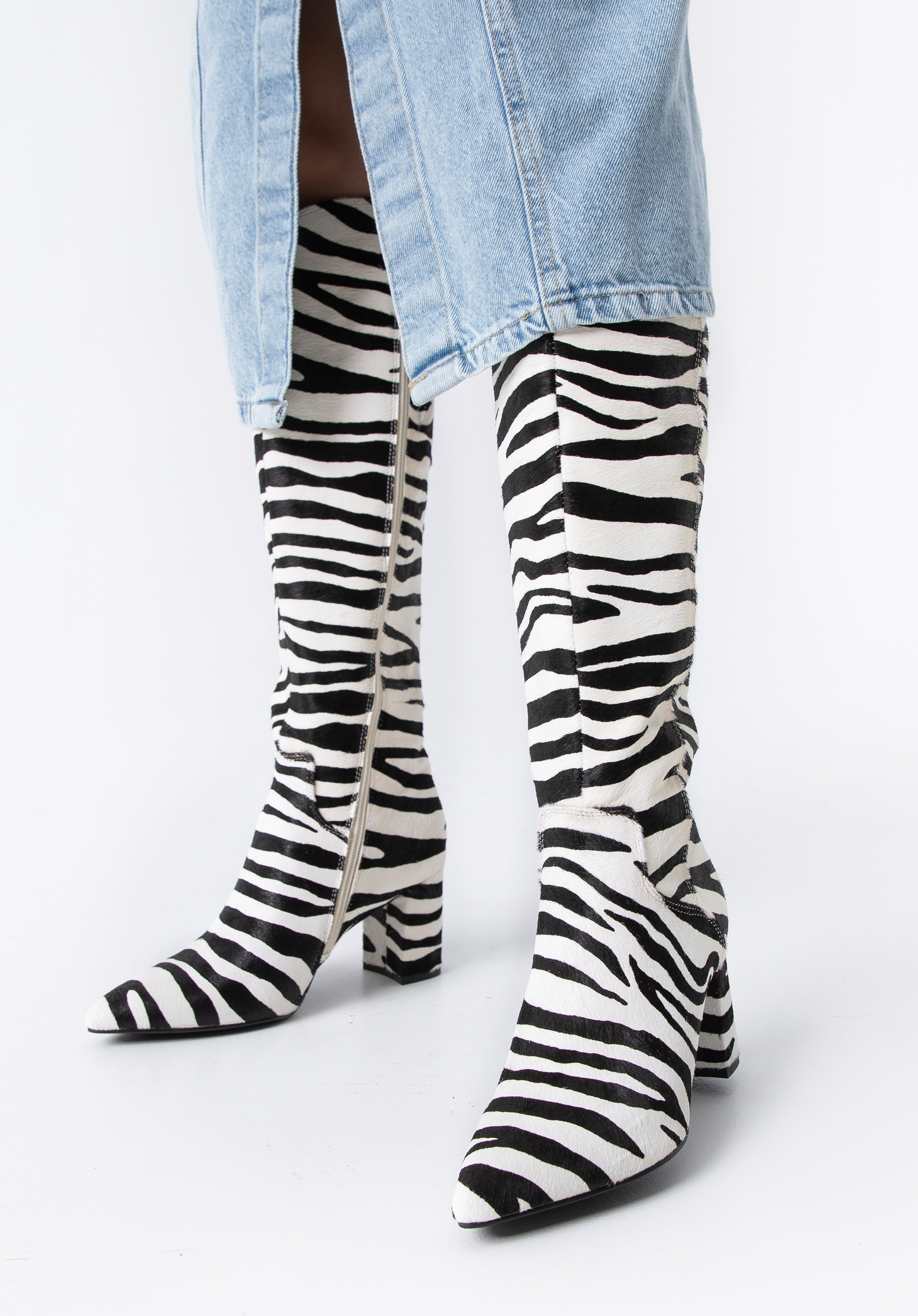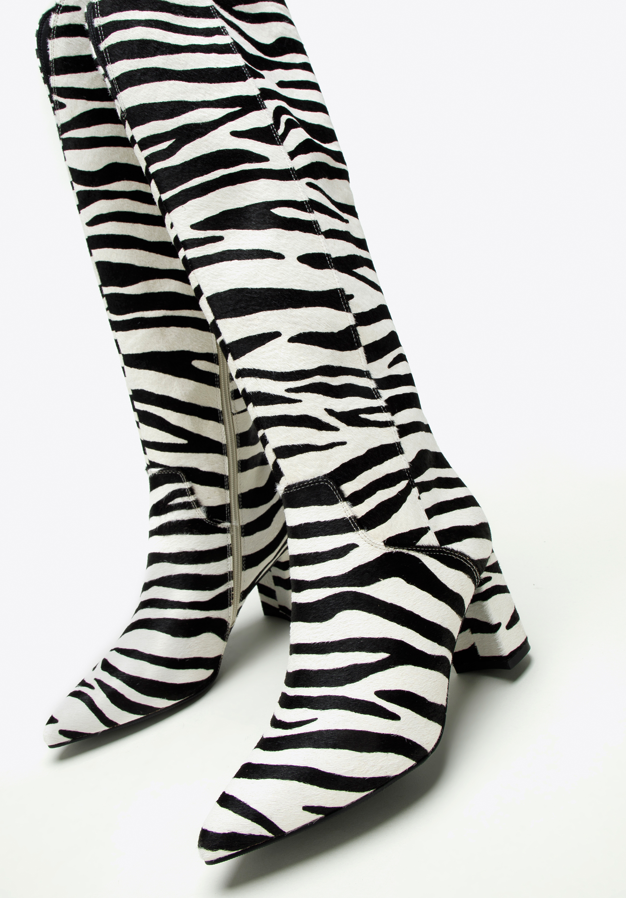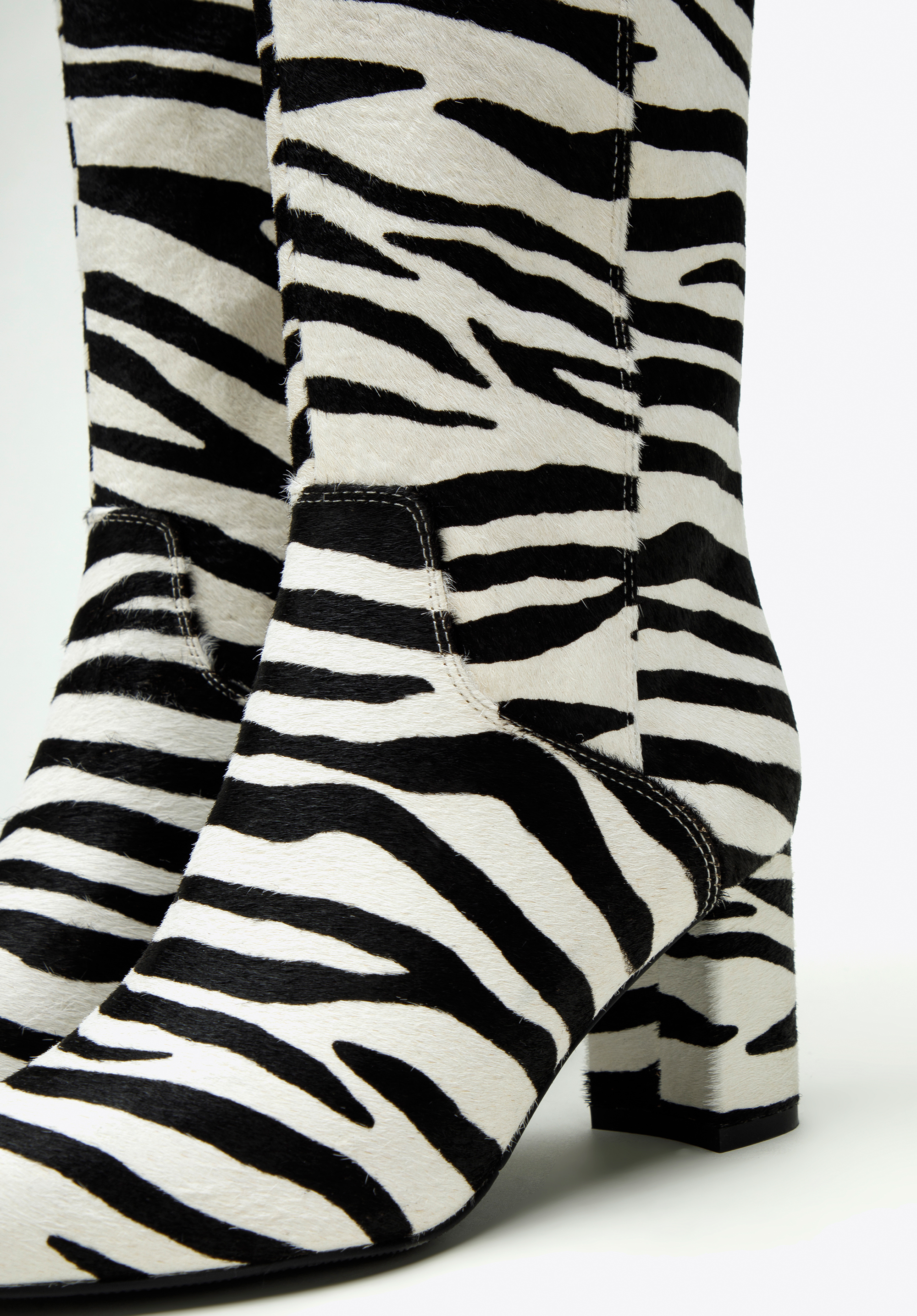 Ebben a cipőben nem maradsz észrevétlen az biztos. Kiváló minőségű bőrből készült, divatos állatmintás szőrrel. A tetején V-alakú vágás található, amely kiemeli a vádlit. A csizmának hegyes orra és kényelmes tömbsarka van, amely néhány centiméterrel növeli a magasságod. Belül cipzár található , így könnyebb lesz fel- és levenni őket. Ez a modell feldobja egy klasszikus kabáttal ellátott szetted és különlegességet ad egy nőies miniruhához is. Az állatmintás női bőrcsizma remek választás a karakteres kiegészítők szerelmeseinek.