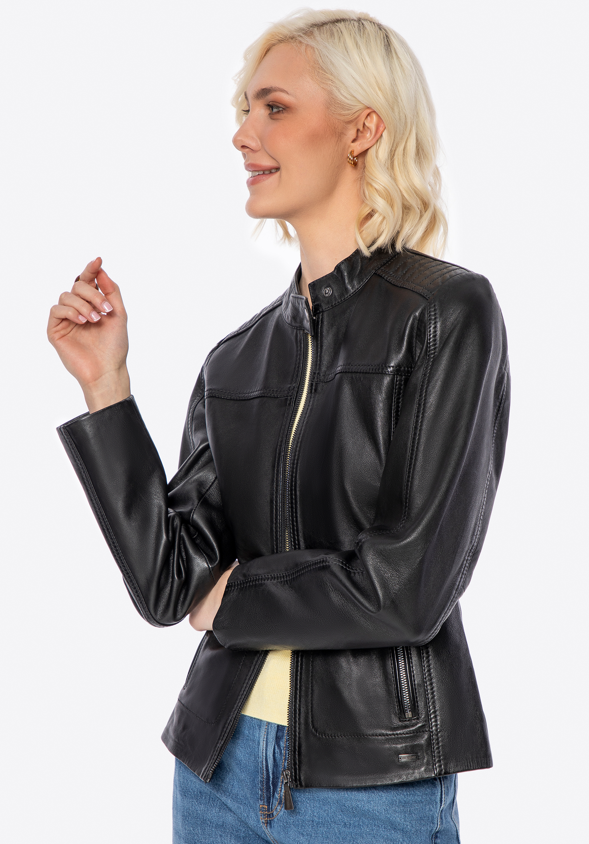Íme egy dzseki, amely a klasszikus eleganciát modern, egyedi jelleggel ötvözi. Természetes báránybőrből készült, tökéletes szabásával és kifinomult részleteivel nyűgöz le. A slim-fit szabás gyönyörűen kiemeli a sziluettet, míg a kabát vállán és hátán található varrás egyedi jelleget kölcsönöz a kabátnak. Ez a kabát önmagáért beszél - luxus, függetlenség és magabiztosság egyben.