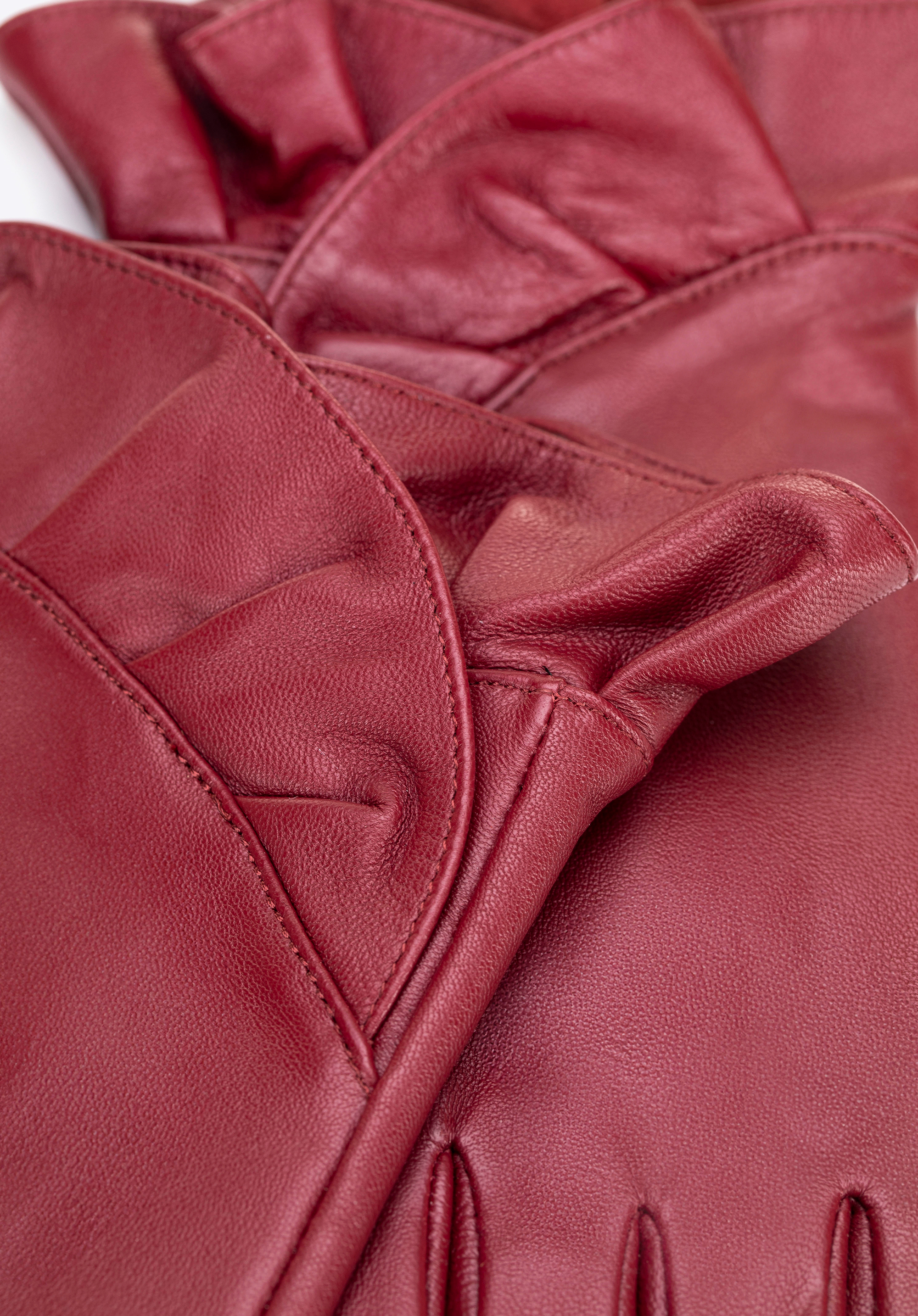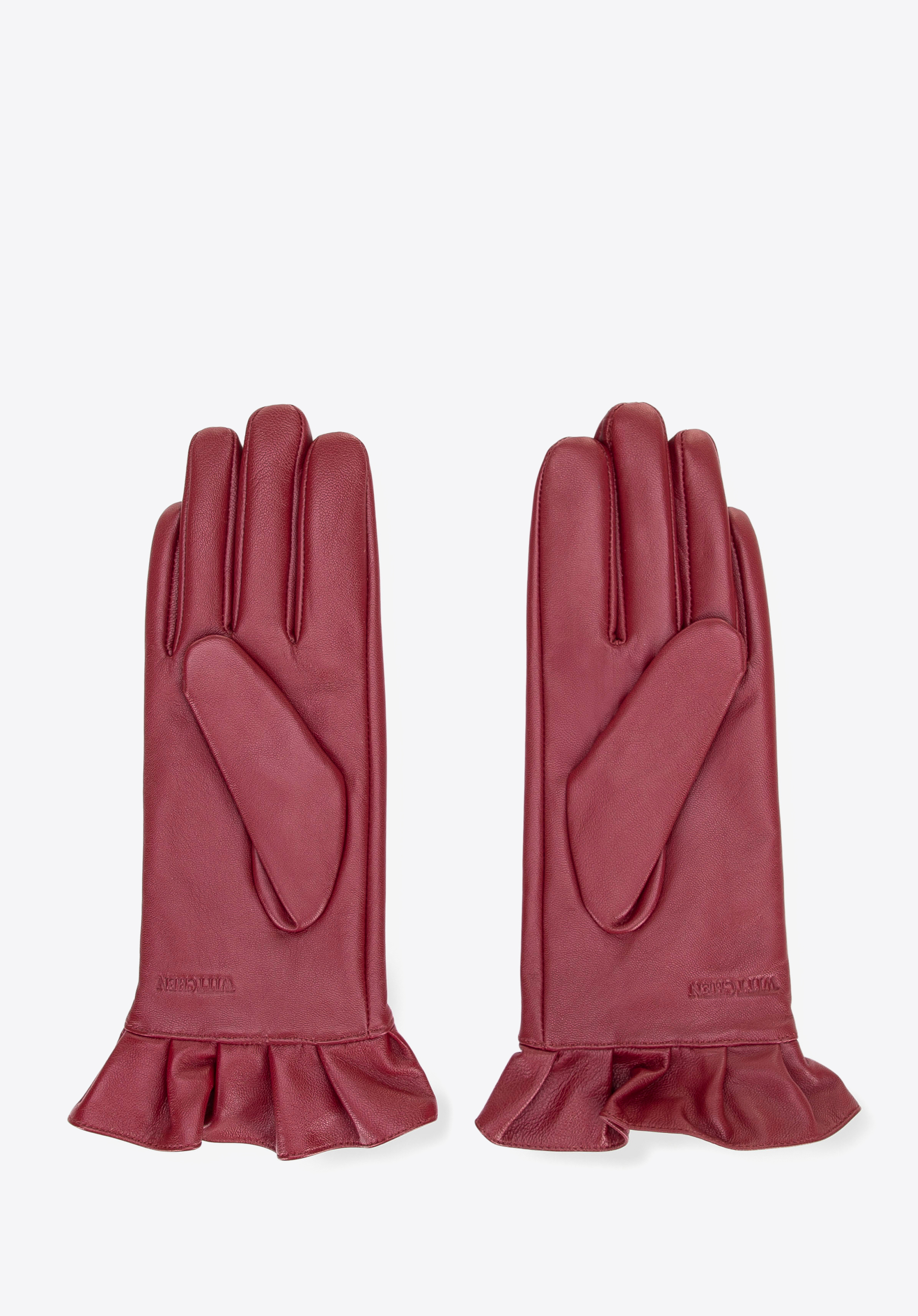 Dobd fel téli ruhatáradat egy olyan kiegészítővel, amely a klasszikus stílust finom, modern érintéssel ötvözi. Ez a női kesztyűpuha, tartós természetes bőrből készült, amelyet eleganciájáról és rugalmasságáról ismernek. A poliészterrel bélelt belső rész gyengéden, melegen öleli körül a kezeidet, így még a leghidegebb napokon is kényelmes viseletet biztosít. A mandzsettán lévő dekoratív fodros rész nőies bájt kölcsönöz, míg a finom dombornyomott márkalogó kiemeli a kesztyű vonzerejét.