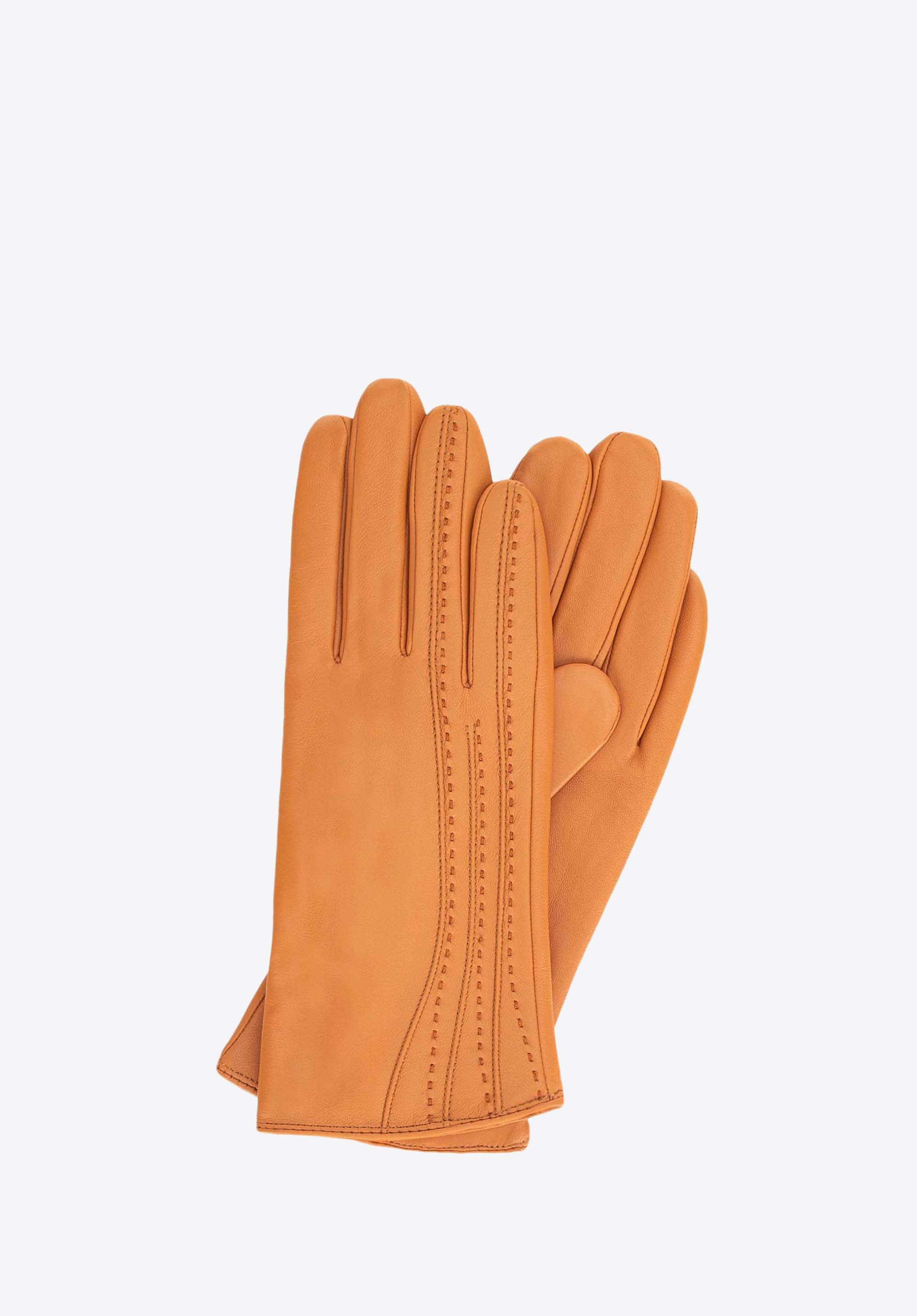 Ez a természetes báránybőrből készült elegáns női kesztyű tökéletes választás a hidegebb napokra. A puha , bélelt belső kényelemről és melegségről gondoskodik a leghidegebb napokon is, míg a finom dombornyomott logó egy kis előkelőt ad. A kesztyűket finom, dekoratív varrások díszítik, amelyek kiemelik eleganciájukat és egyedi kialakításukat.