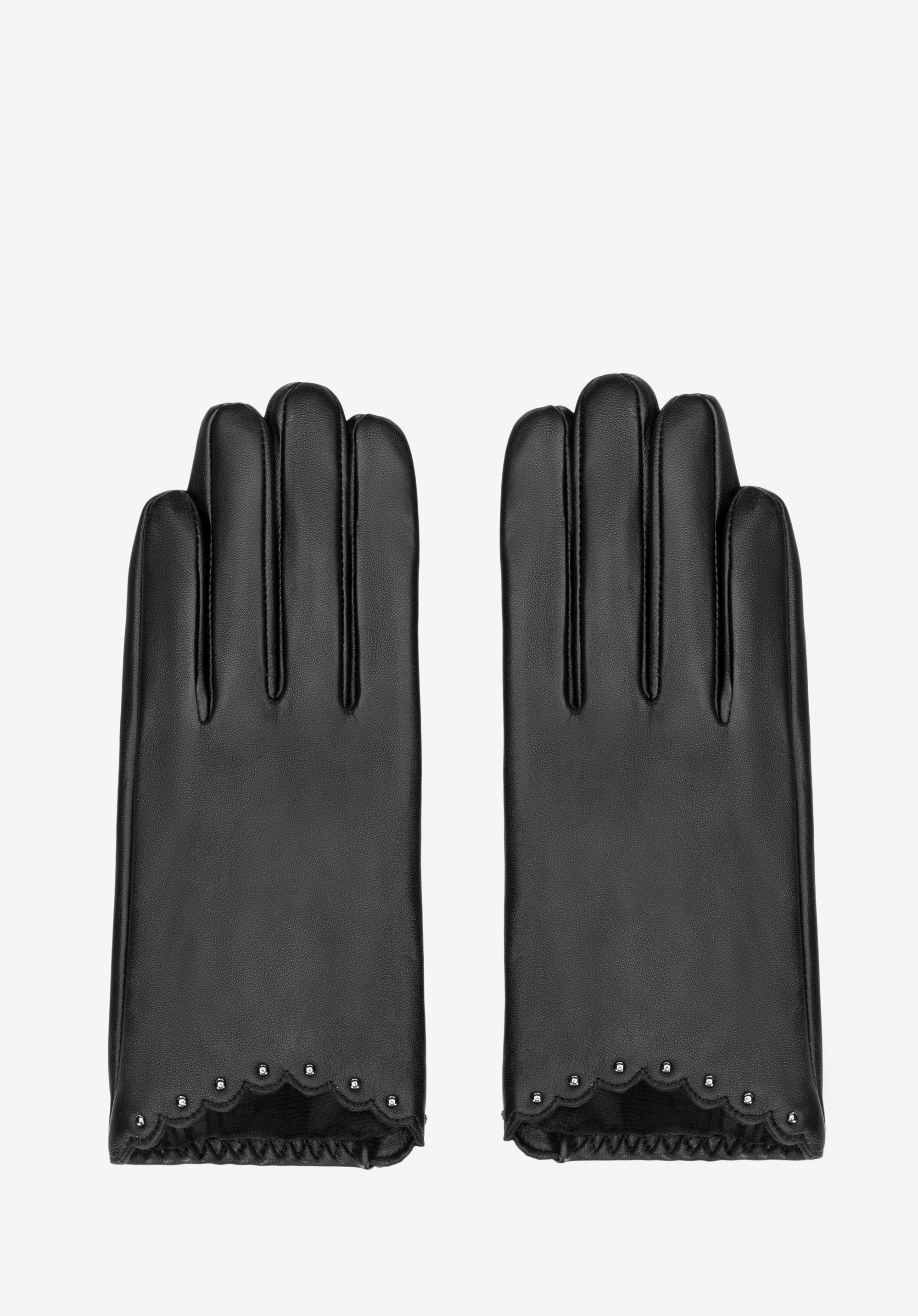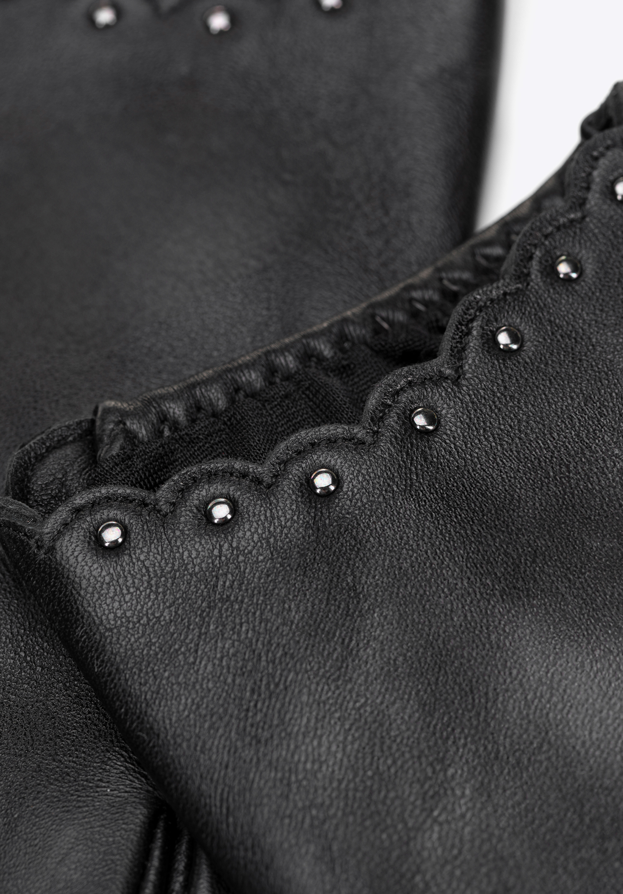 Válassz egy időtlen kiegészítőt, amely a funkcionalitást kifinomult stílussal ötvözi. Ez a természetes bőrből készült női kesztyűkönnyű, puha és kivételesen kellemes tapintású, kényelmes illeszkedést biztosítva a kezedhez. A hullámos kivágások és a széleken lévő díszes szegecsek finom eleganciát kölcsönöznek, ízléses, nőies kiegészítőt alkotva bármilyen öltözékhez.