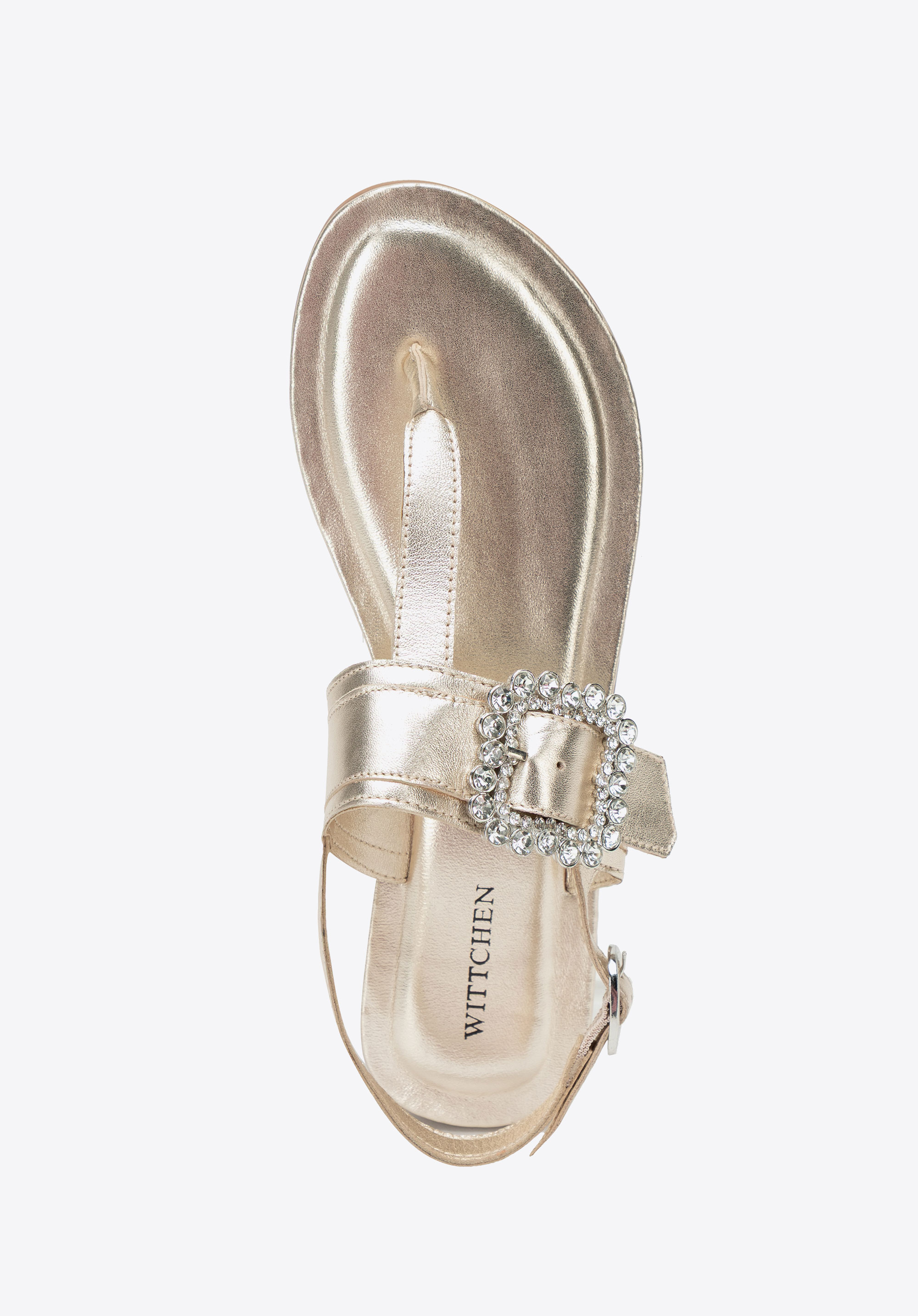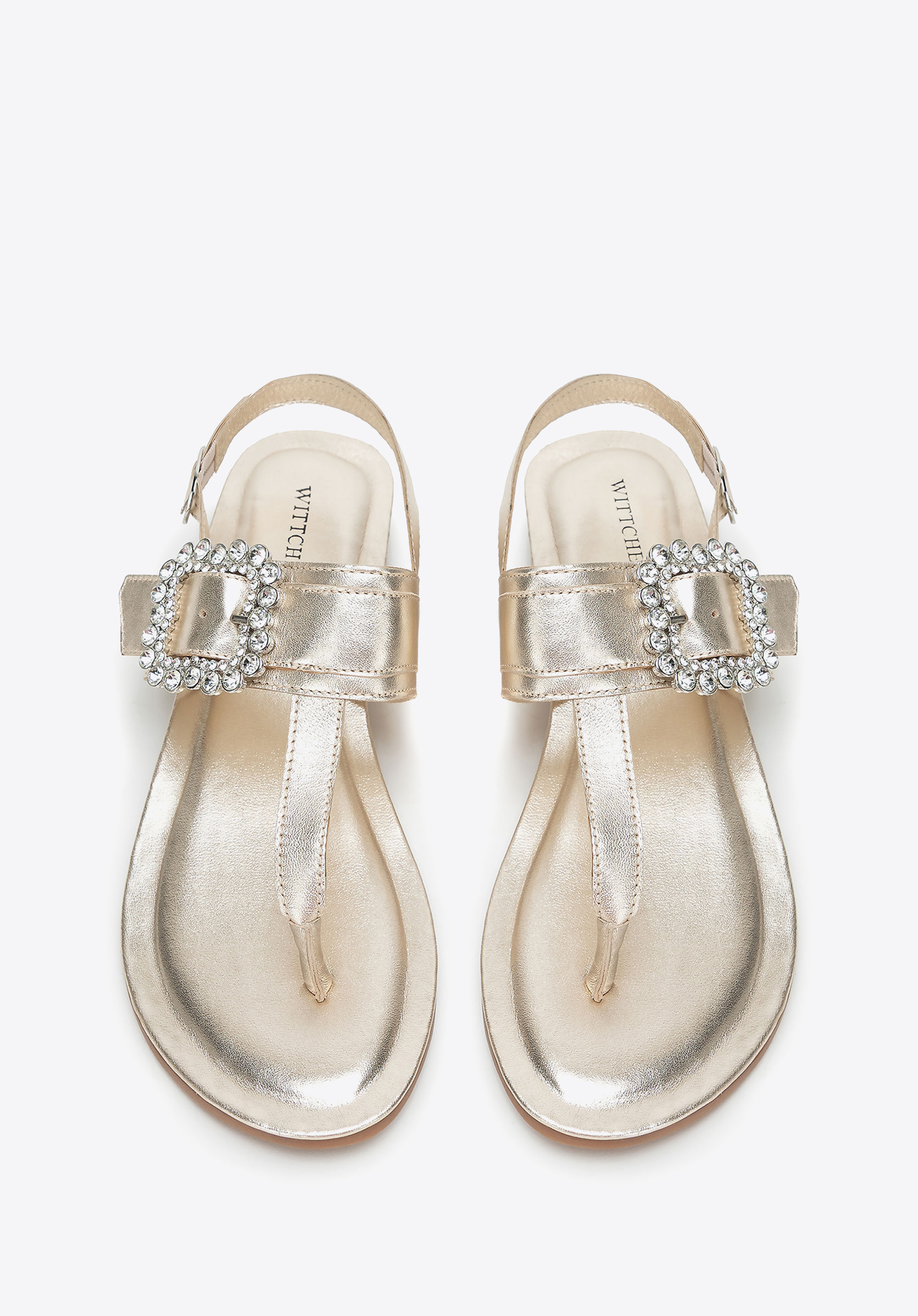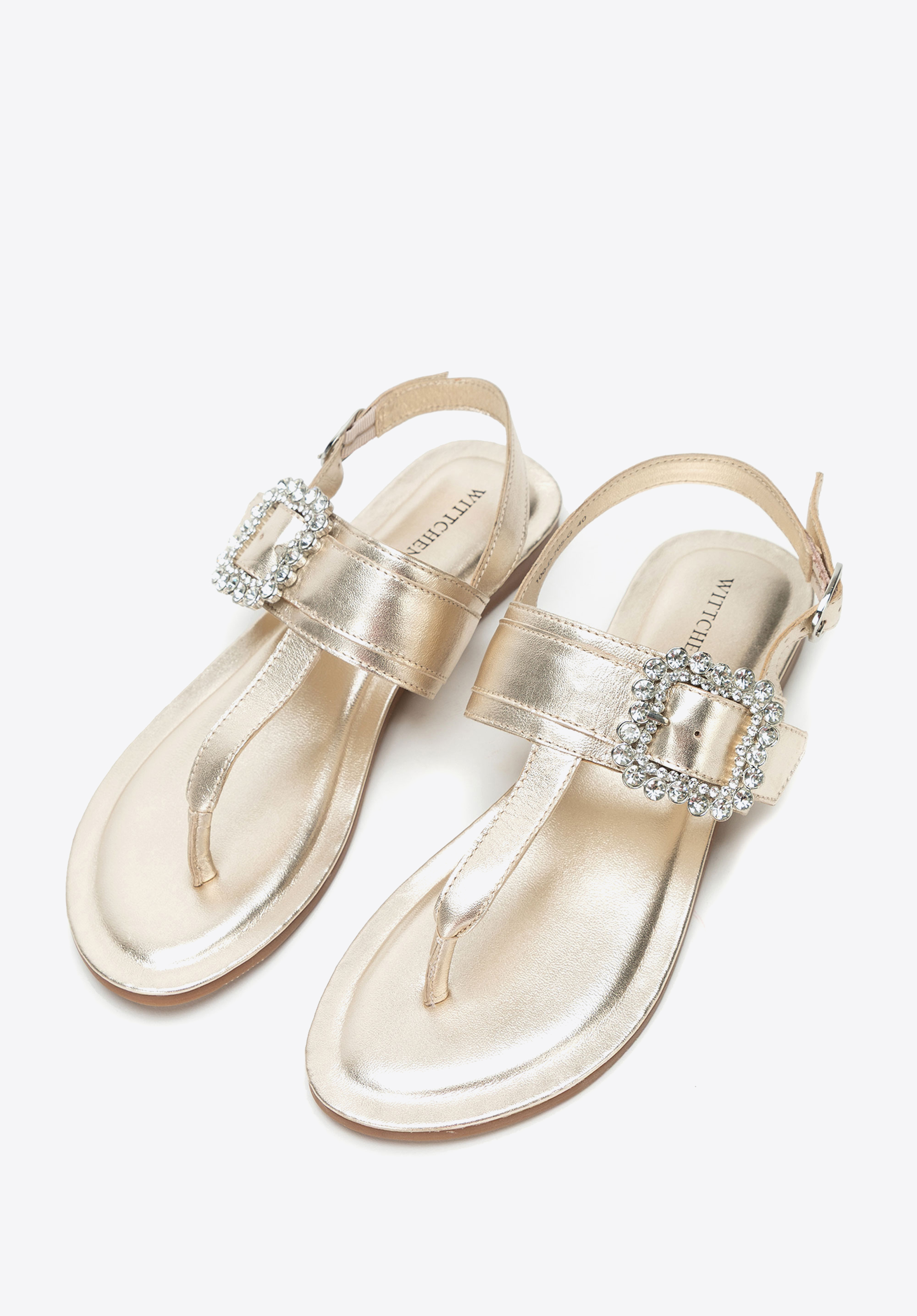 - Dekoratív csat a pánton: Szemet gyönyörködtető részlet, amely nőies, elegáns karaktert kölcsönöz a szandálnak.