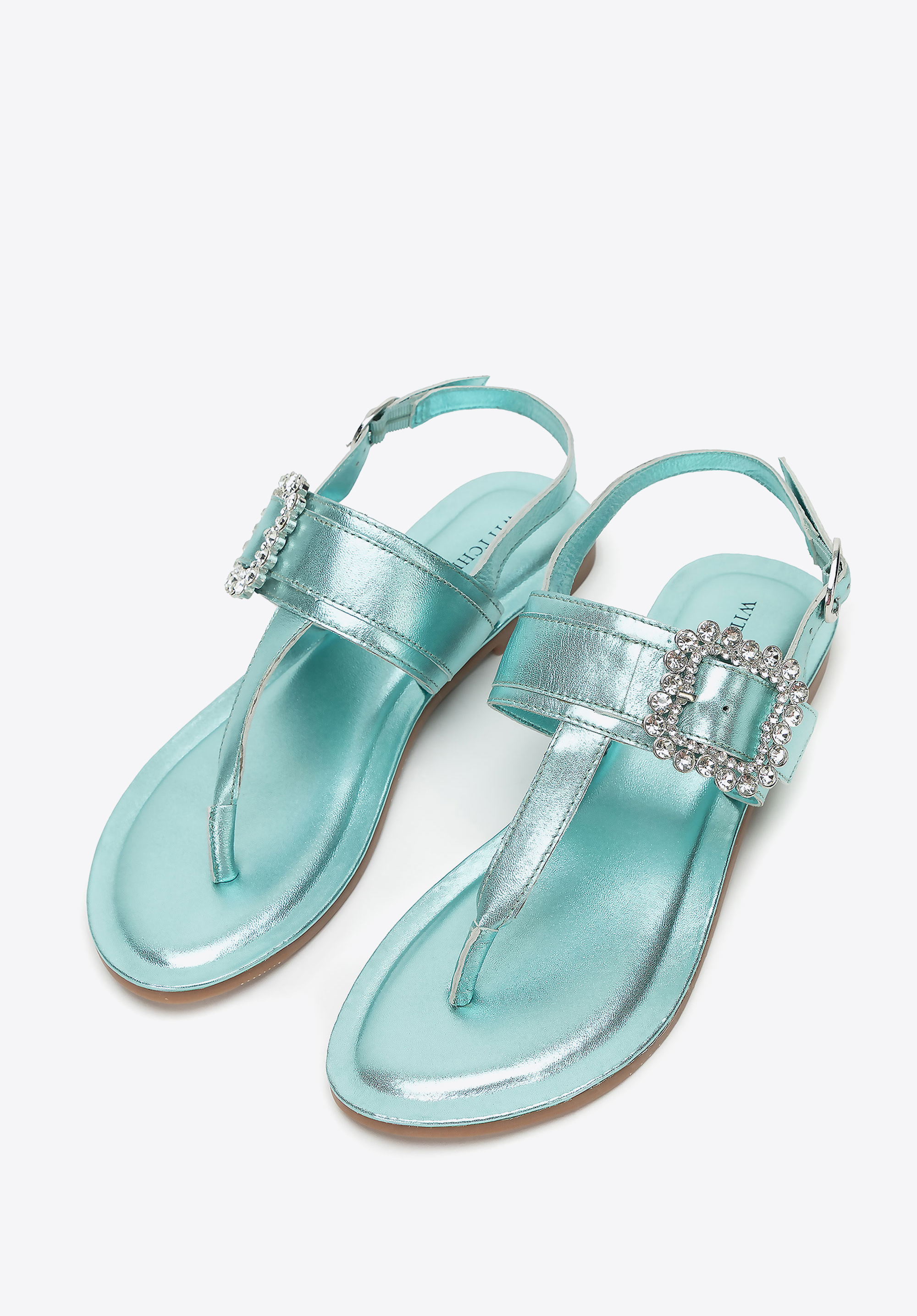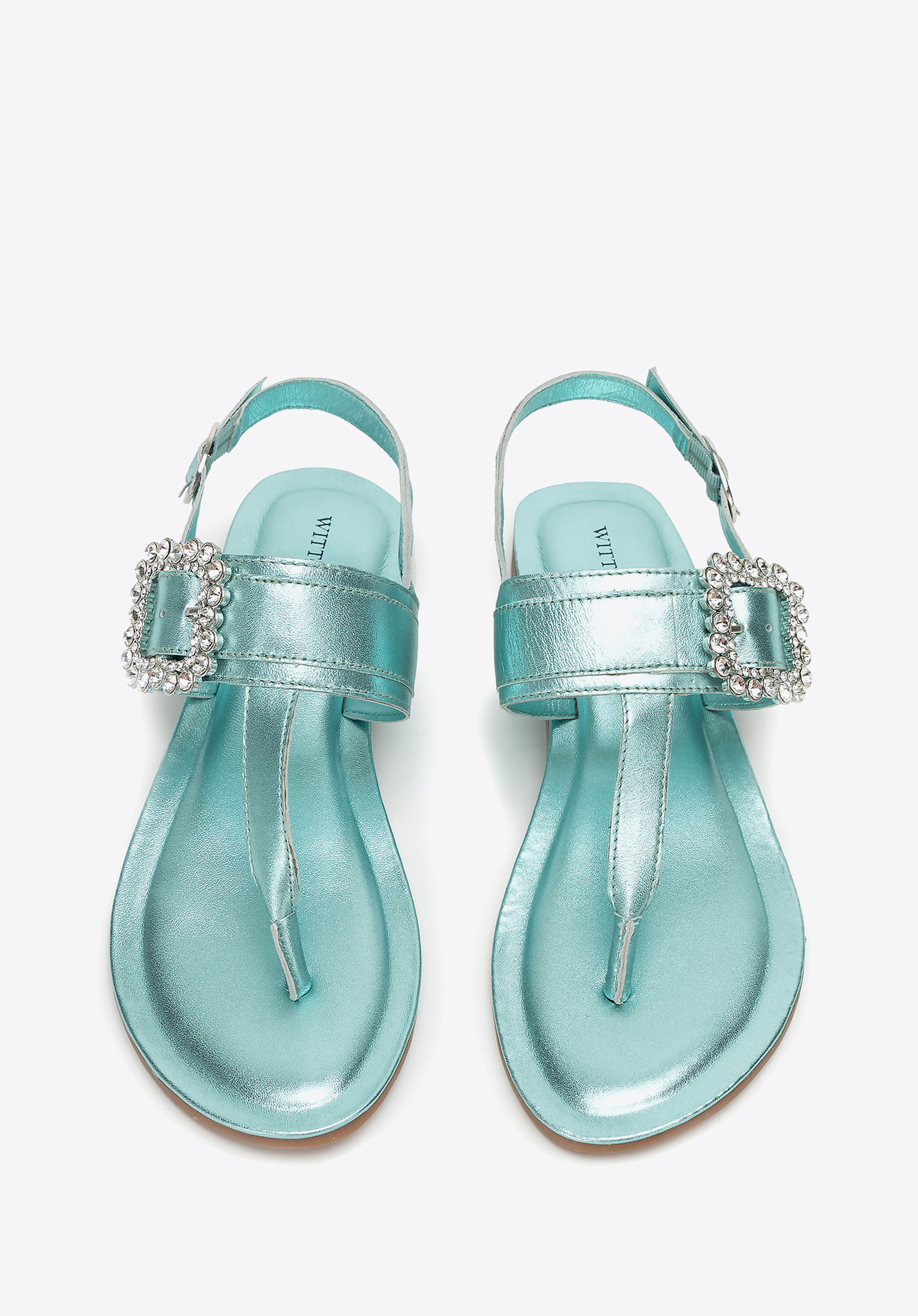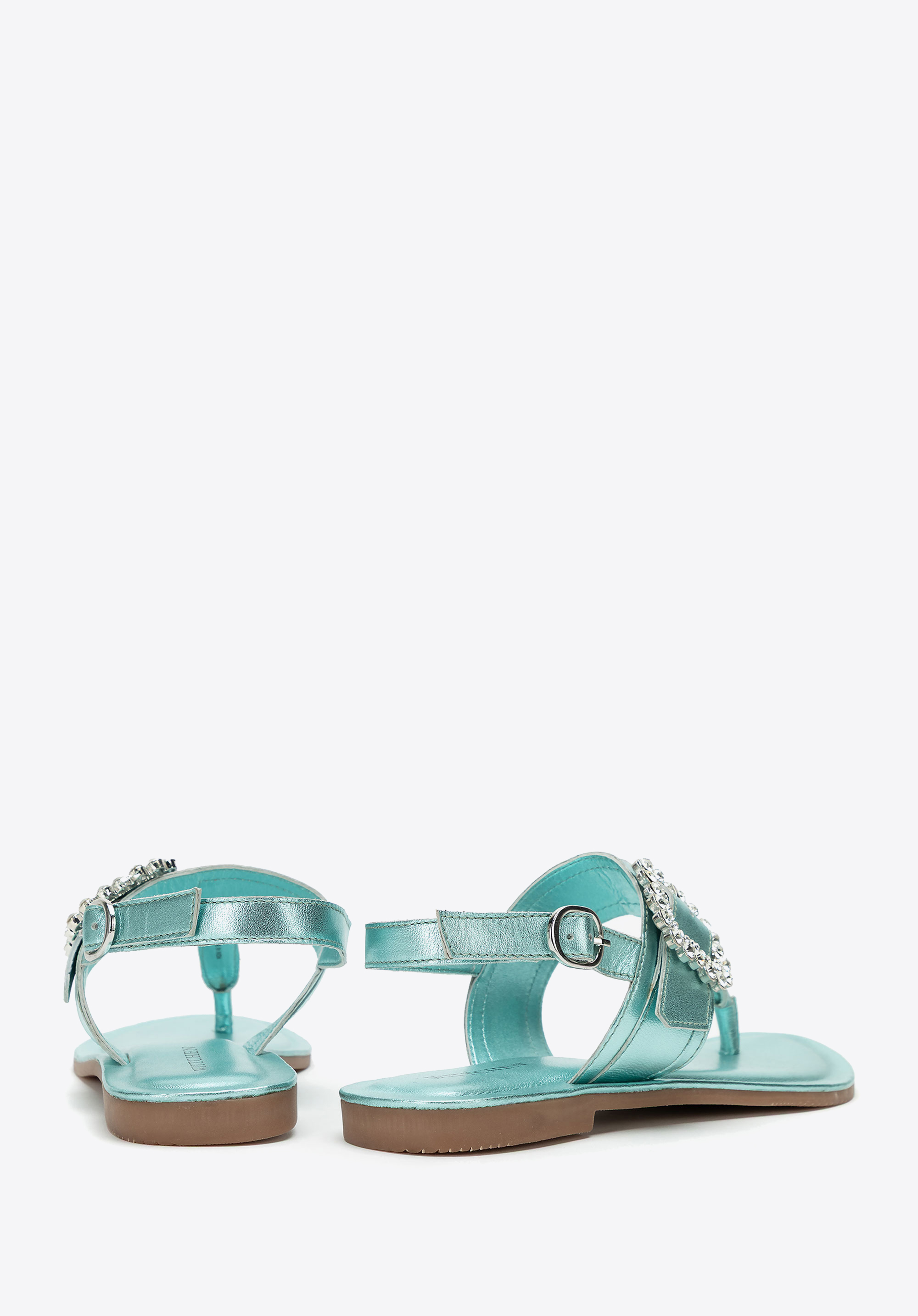 - Dekoratív csat a pánton: Szemet gyönyörködtető részlet, amely nőies, elegáns karaktert kölcsönöz a szandálnak.