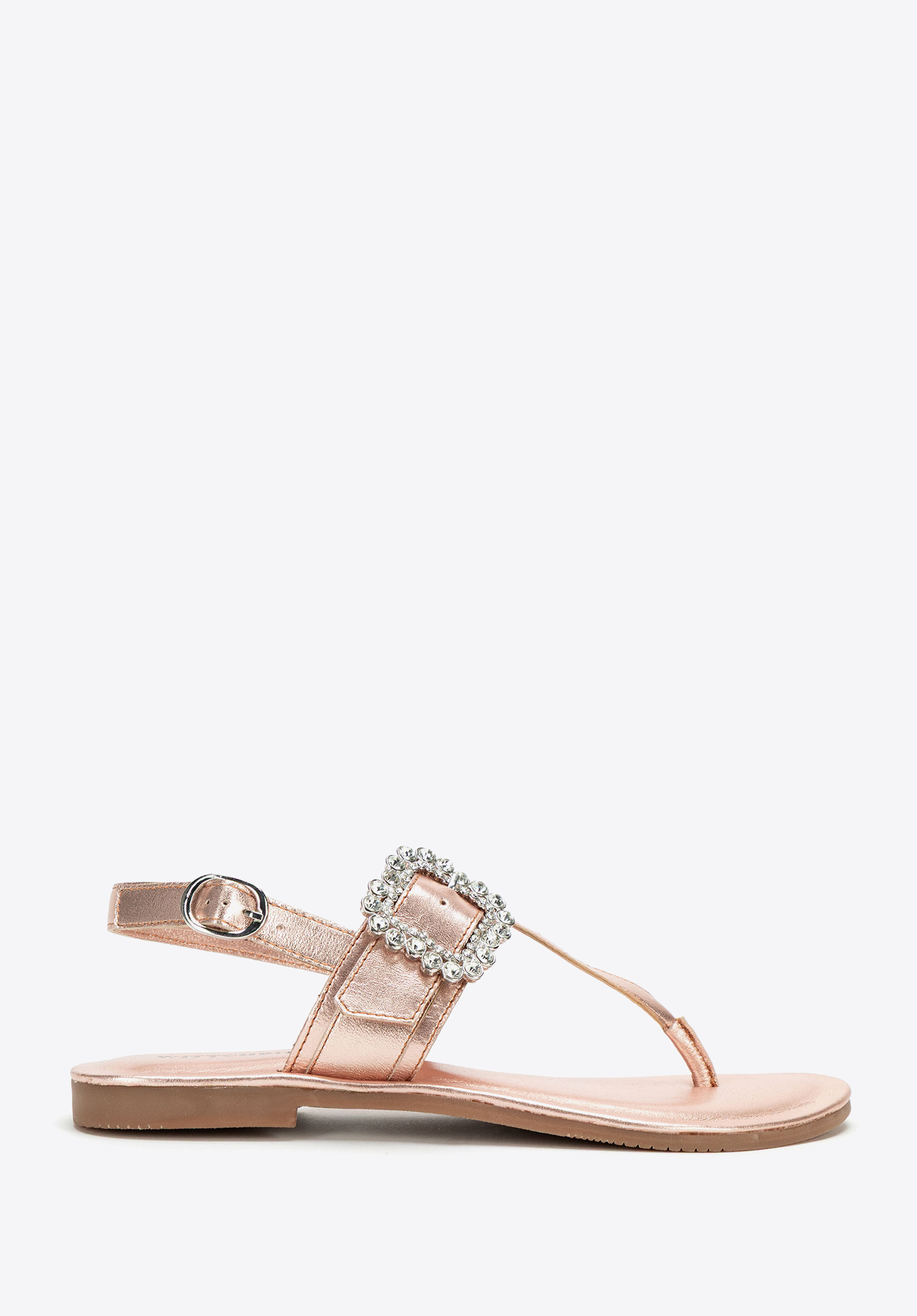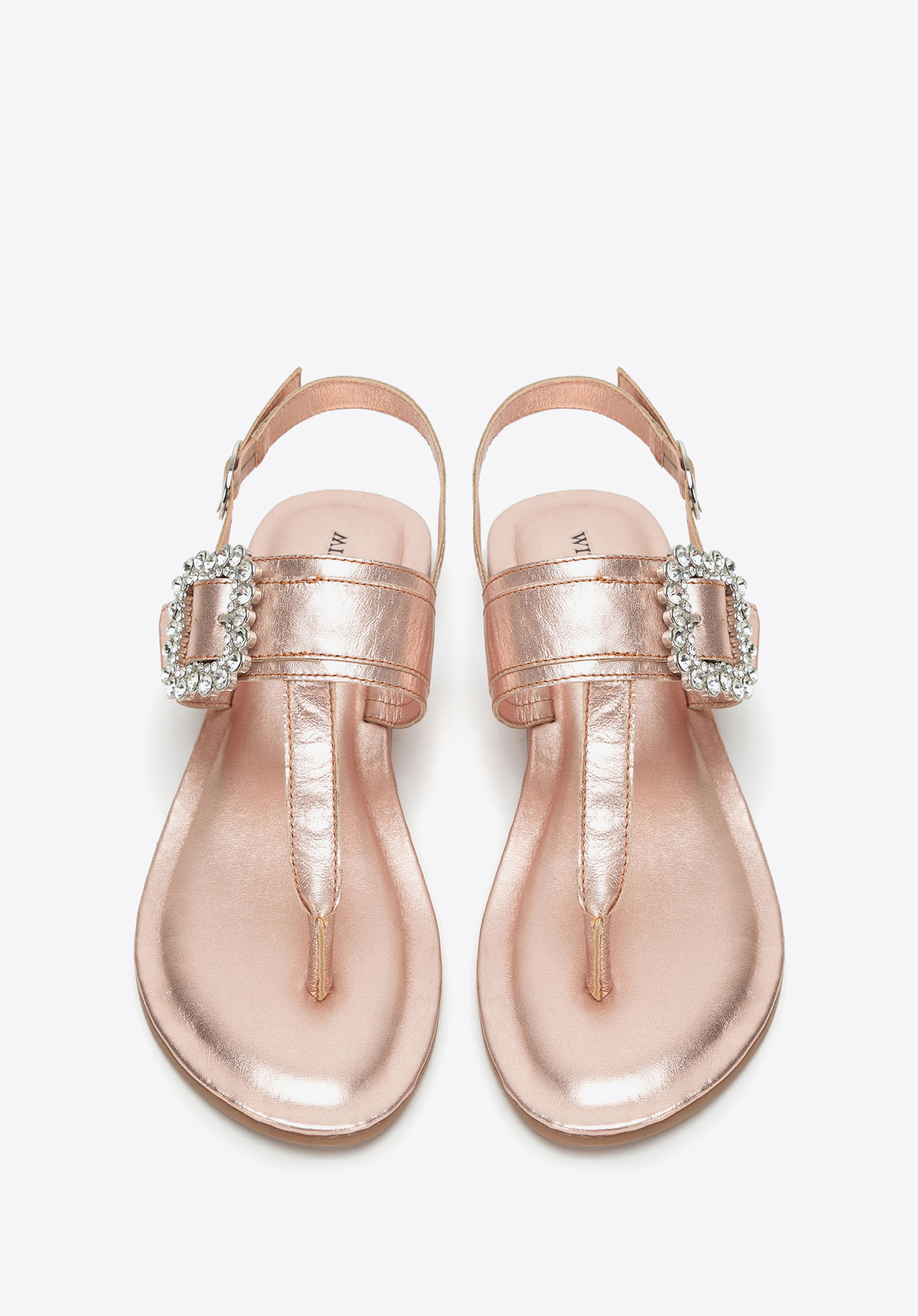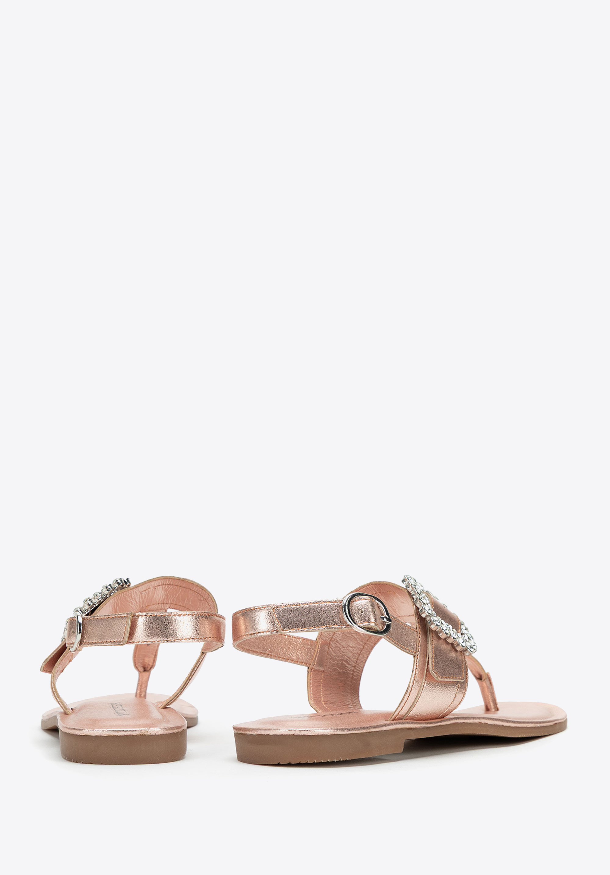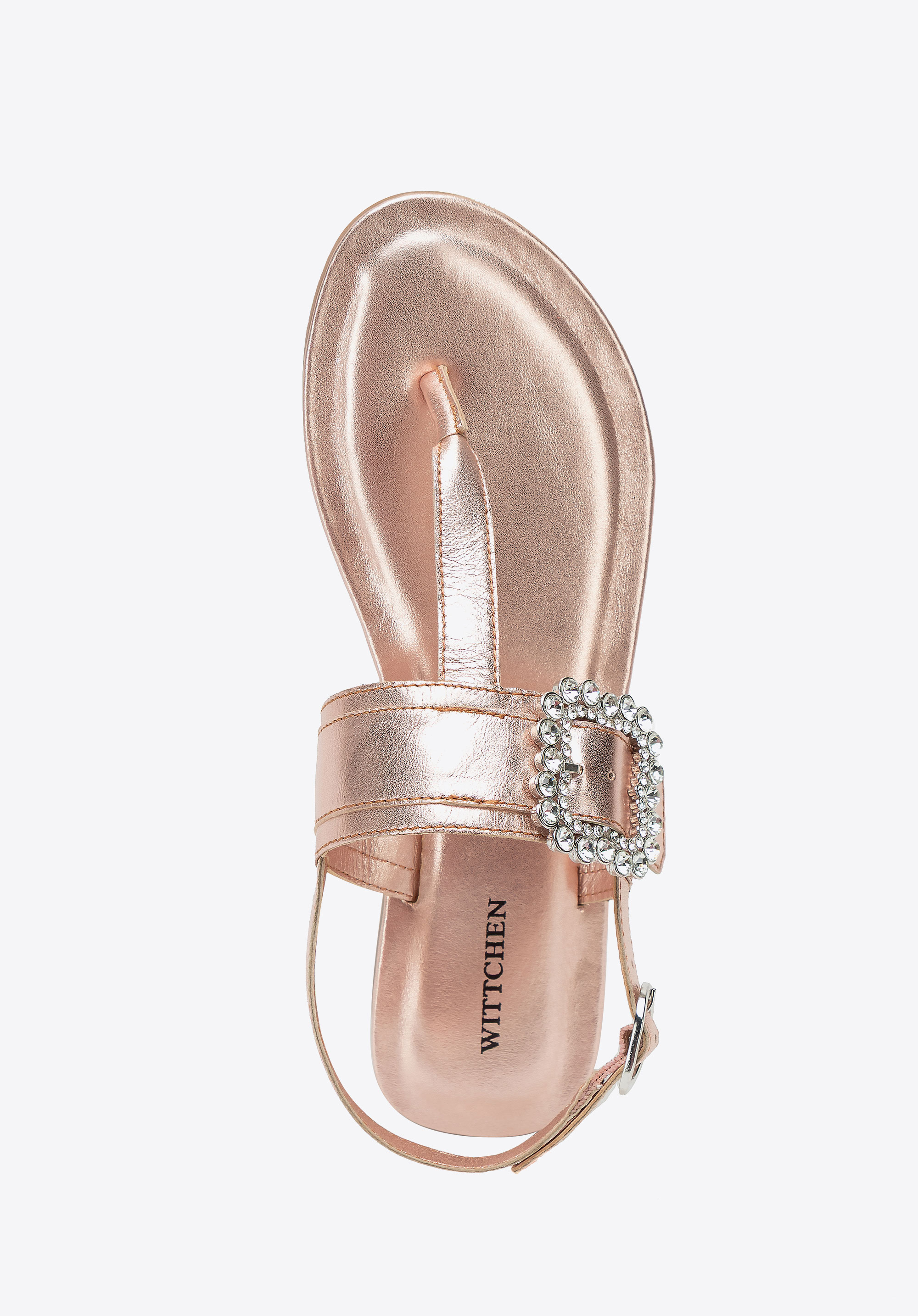 - Dekoratív csat a pánton: Szemet gyönyörködtető részlet, amely nőies, elegáns karaktert kölcsönöz a szandálnak.