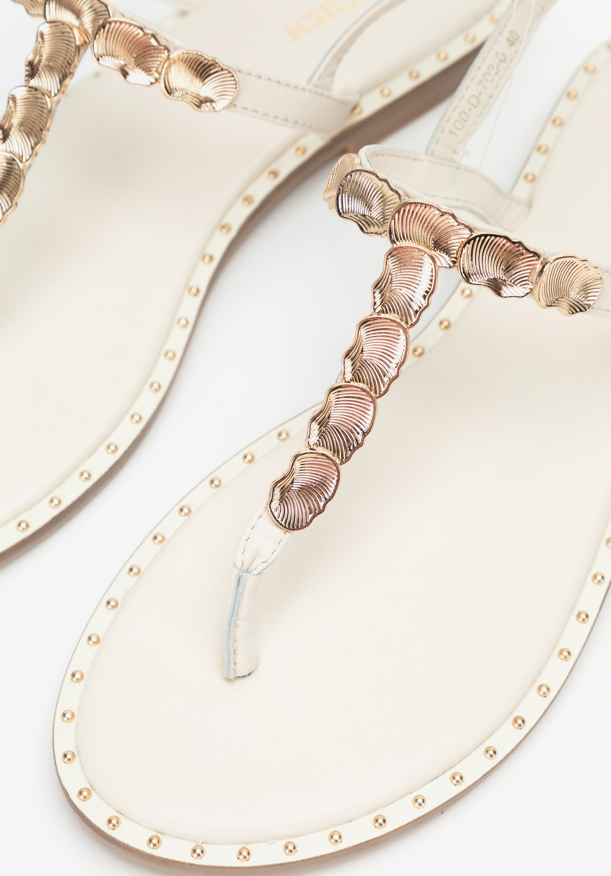 Nyári elegancia csillogással – lapos sarkú bőrszandál