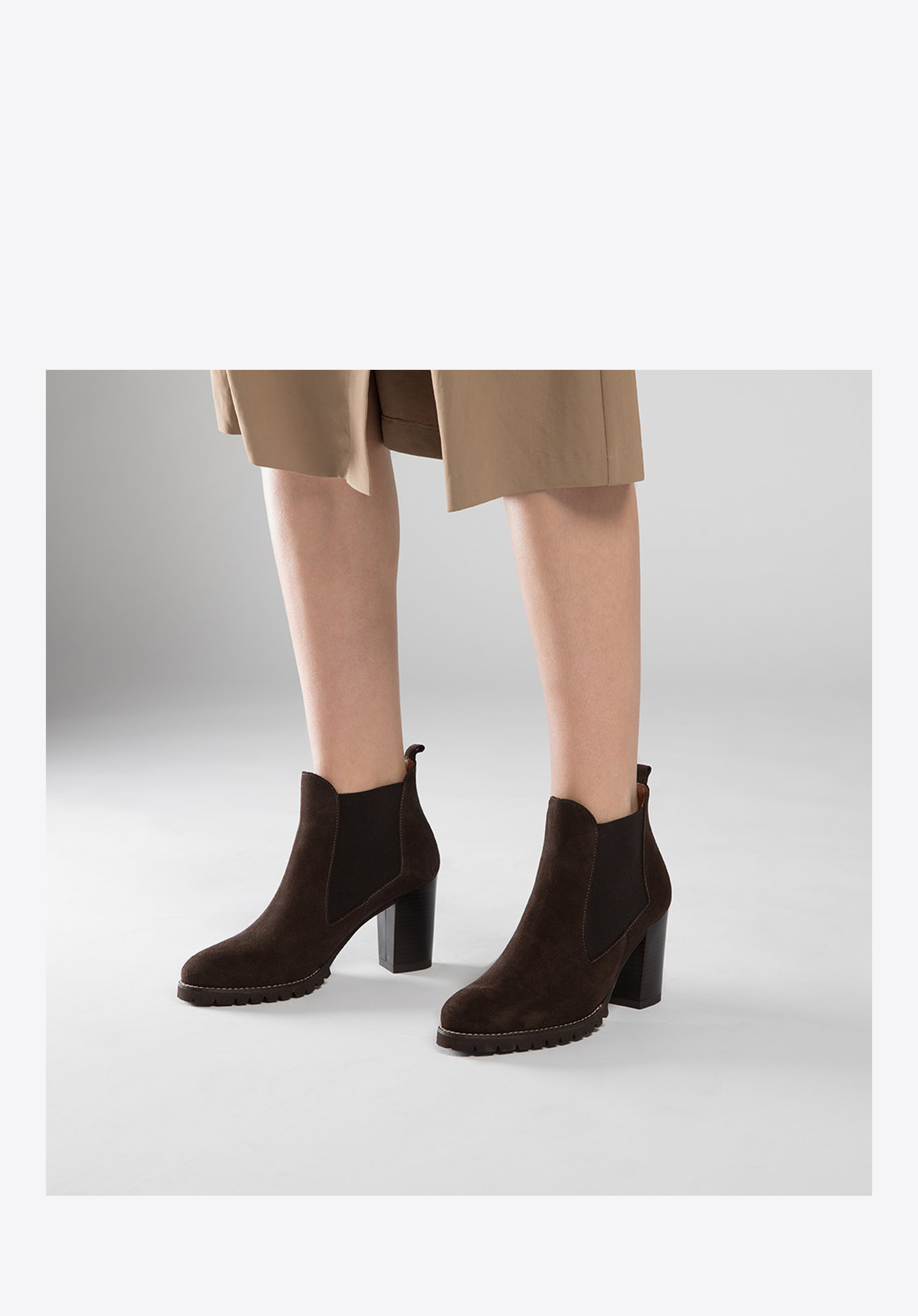 Női bokacsizma, fekete és barna színben kapható. A boka fölé érő modell elasztikus betétekkel van ellátva, amik megkönnyítik a fel- és levételt. A betétek praktikusak és esztétikusak. A cipő hátuljába varrt szíj is praktikusabbá teszi a lábbelit. Elöl kontrasztos öltés és halszálkás talp emelik ki a lábbeli különleges jellegét.