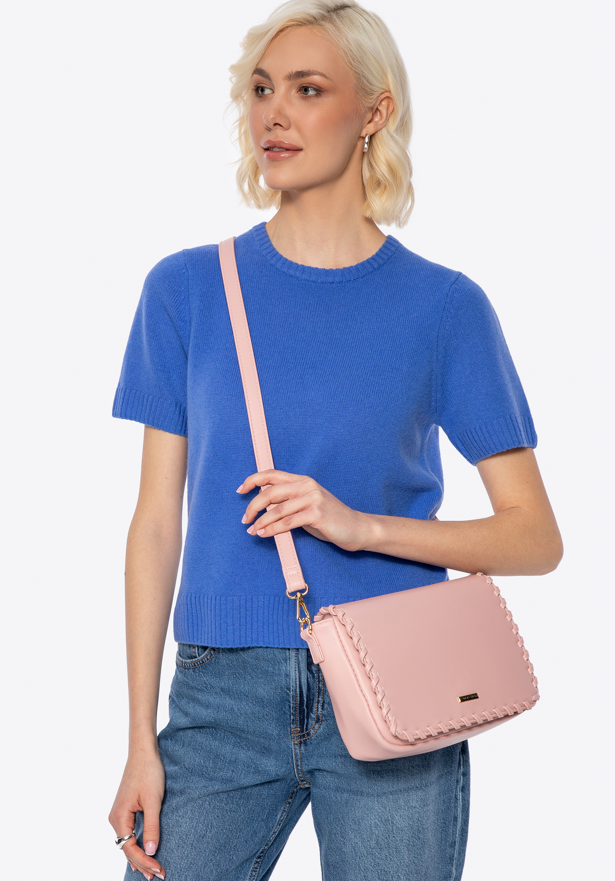 Készülj fel egy divatkalandra ezzel az elegáns crossbody táskával, amely mindennapi kedvenced lesz. Kifinomult egyszerűsége modern részletekkel kombinálva magabiztossá és egyedivé varázsolja majd megjelenésed. A szárnyas rögzítés gyors hozzáférést biztosít a belső térhez, míg az állítható pánt kényelmes illeszkedést tesz lehetővé – viseld a válladon vagy keresztben az egész napos könnyedség érdekében.