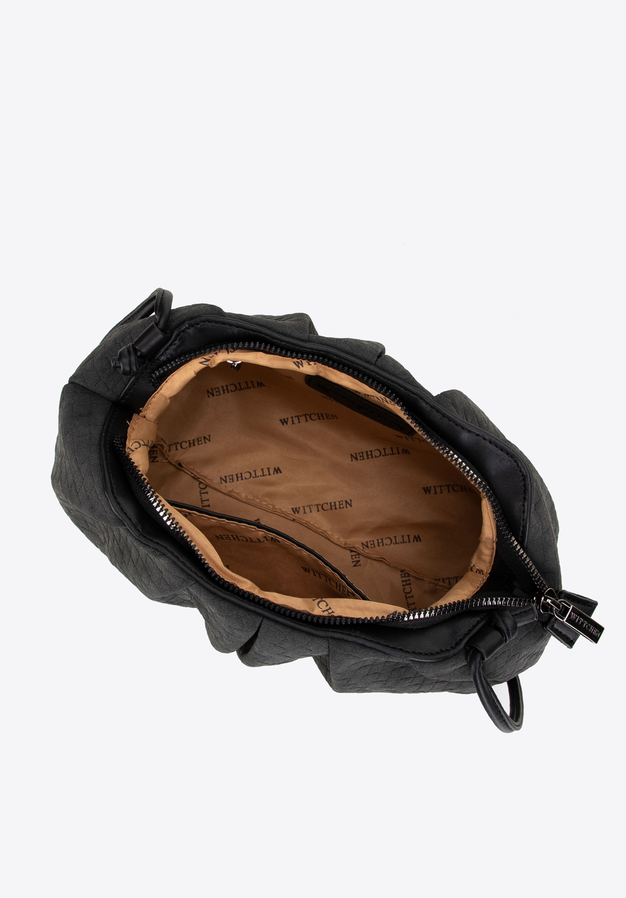 Fedezd fel a páratlan eleganciát és funkcionalitást műbőrből készült női kézitáskánkkal. Egyrekeszes belseje belső zsebekkel (egy nyitott és egy cipzárral zárható) kompromisszumok nélkül biztosítja a páratlan rendszerezést. A geometrikus mintázat eredeti, dizájner jelleget kölcsönöz neki, míg az erős talp védi a tartalmat és stabilitást ad. Az állítható pánt tökéletesen alkalmazkodik az igényeidhez, a finom WITTCHEN-logó a táska bélésén és elején pedig kiemeli a termék kiváló minőségét.