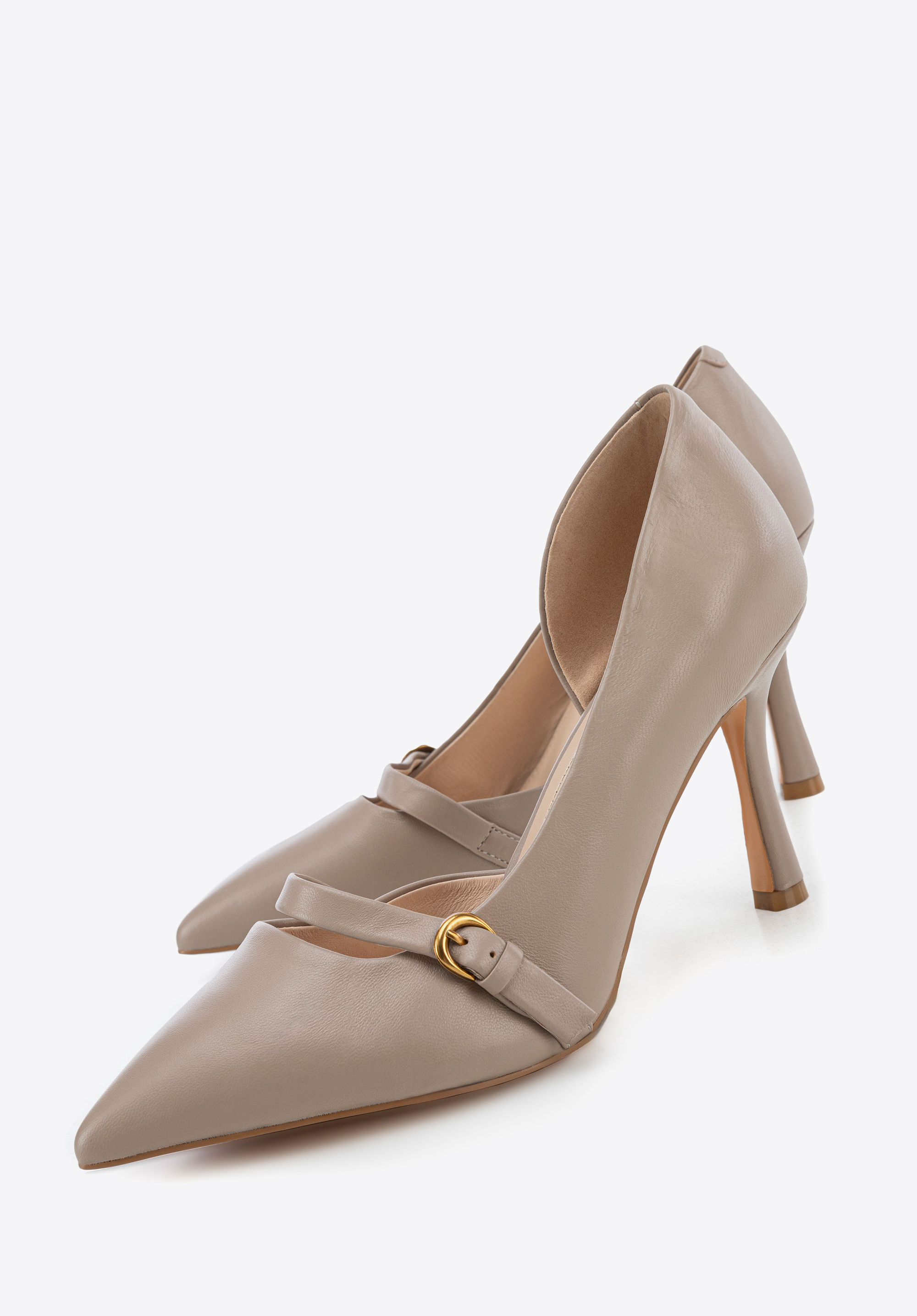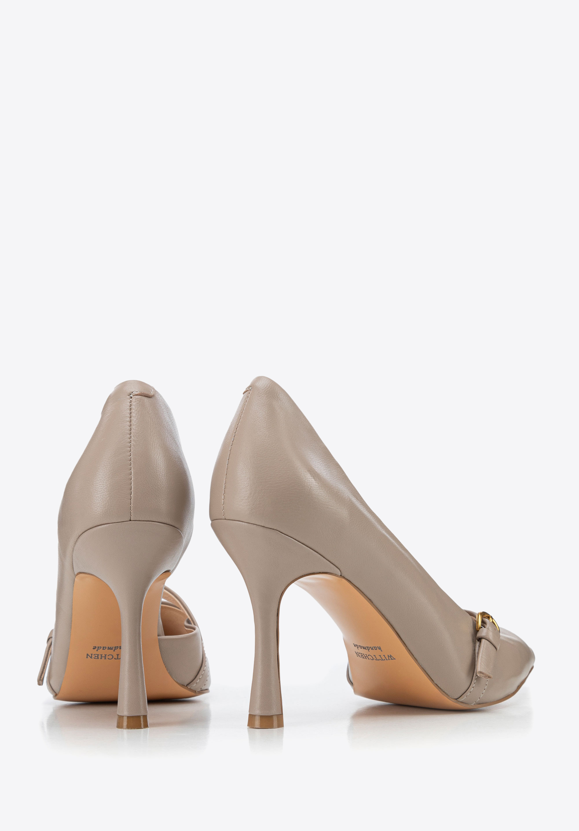Mutasd be elegáns és egyedi stílusodat ezzel a magassarkú cipővel, amely sosem megy ki a divatból. Kiváló minőségű természetes bőrből készült, és a klasszikus dizájnt ötvözi a modern részletekkel, felkelti a figyelmet és egész napos kényelmet biztosít. A gondosan megtervezett hegyes orr és oldalsó kivágás könnyedséget és finom érzékiséget ad a megjelenéshez.