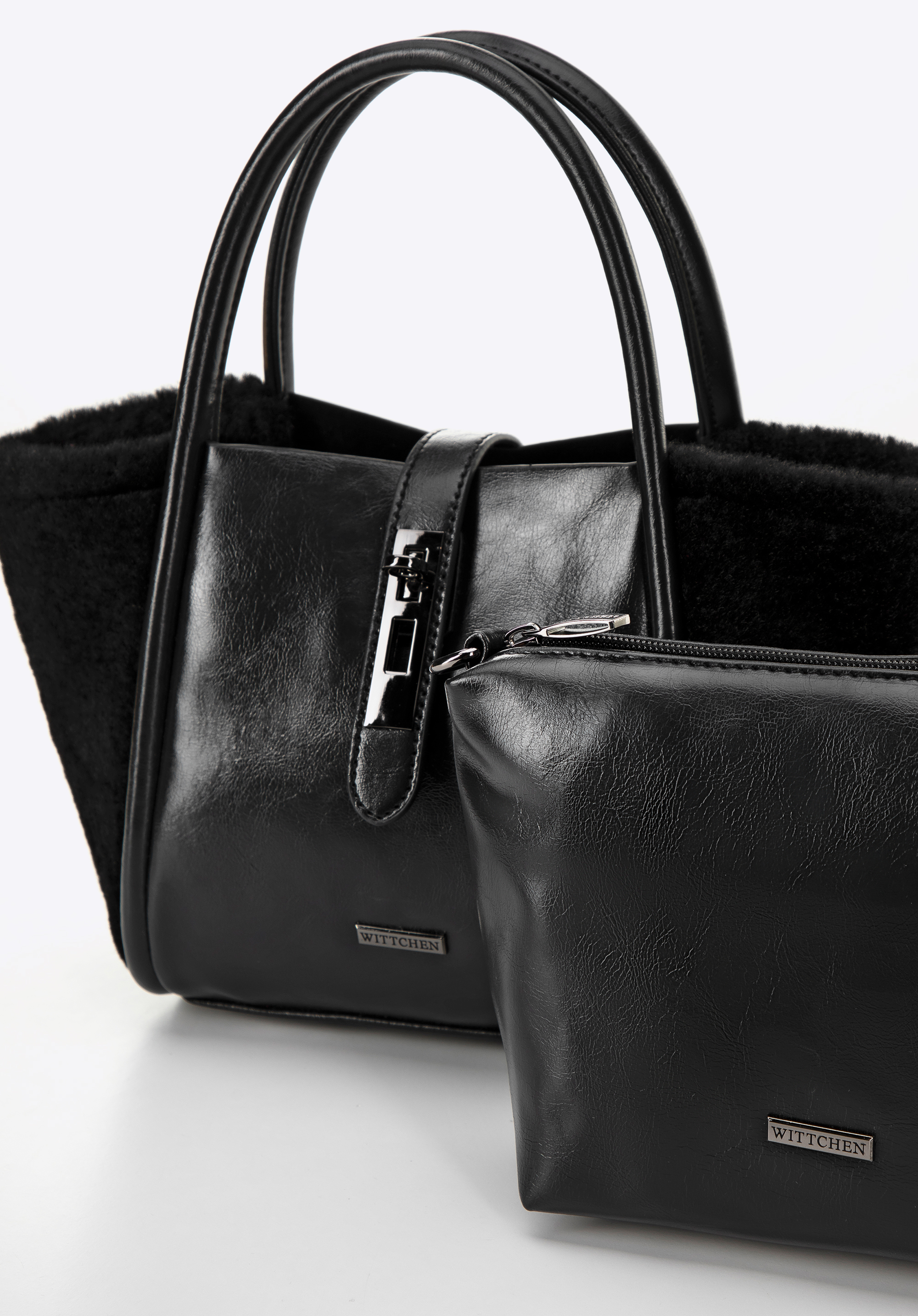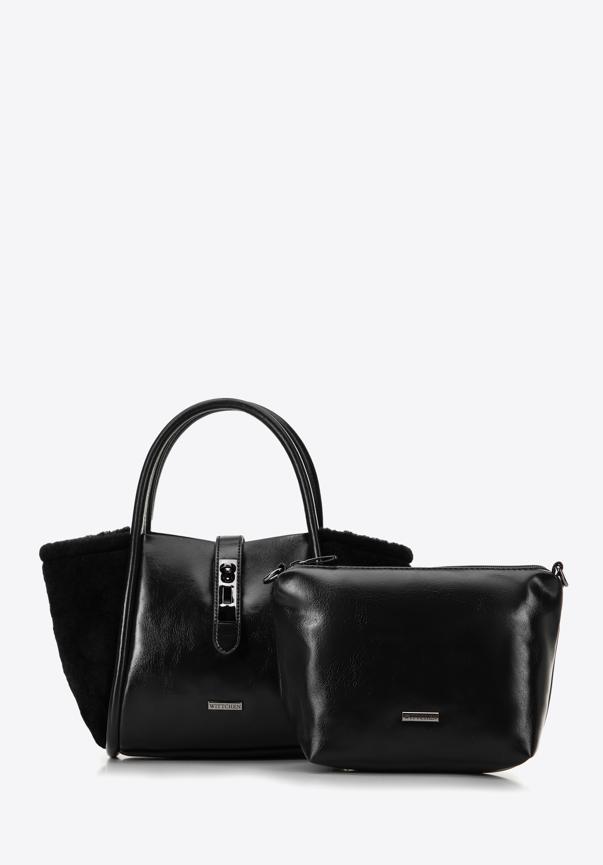 Fedezd fel az elegancia és a funkcionalitás tökéletes keverékét egy kézitáskában! Női kézitáskánk, csillogó műbőrével és oldalán puha műszőrmével tűnik ki, luxus és egyedi dizájnt teremtve.