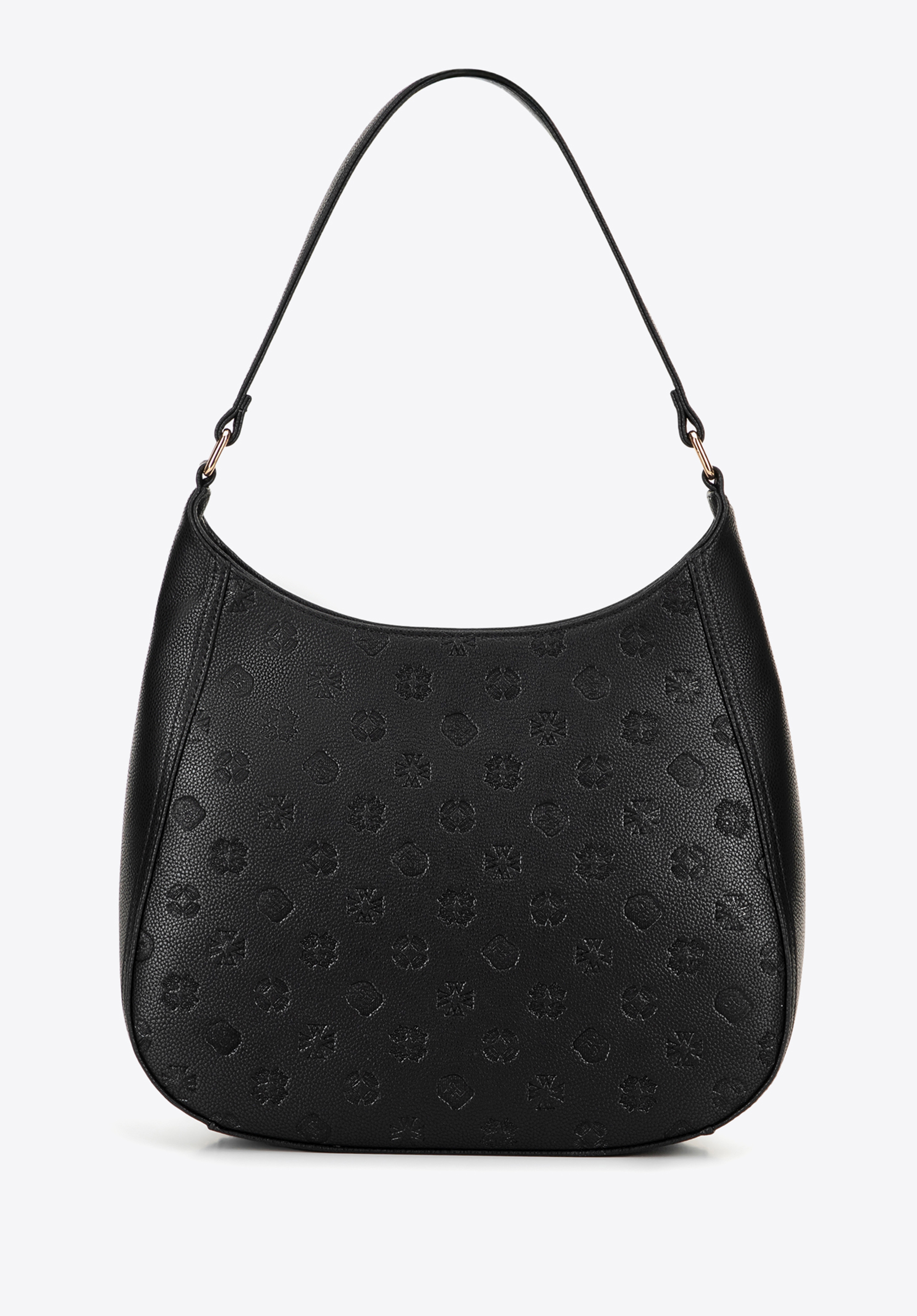 Ez a dombornyomott márkajelzéssel ellátott női válltáska tökéletes választás mindazok számára, akik értékelik az átgondolt részleteket és a mindennapi kényelmet. Műbőrből készült, kifinomult kidolgozással és időtlen dizájnnal büszkélkedhet. A cipzáras záródás biztonságban tartja a holmijaidat, míg a szépen elrendezett belső rész – három zsebbel, köztük egy cipzáras – segít abban, hogy átgondoltan tudd szervezni a napodat. A megerősített alsó rész stabilitást és tartósságot kölcsönöz a táskának, a kényelmes fogantyú pedig örömtelivé teszi a hordozását.