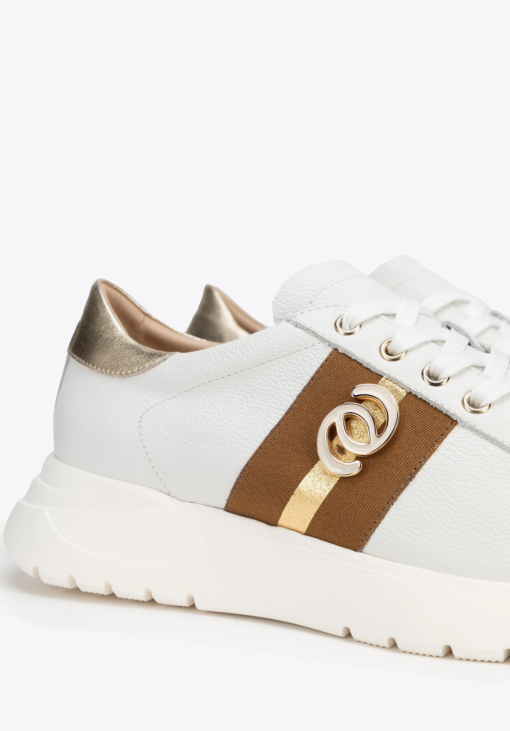 Platform talpú bőr tornacipő aranyszínű dekoratív elemekkel