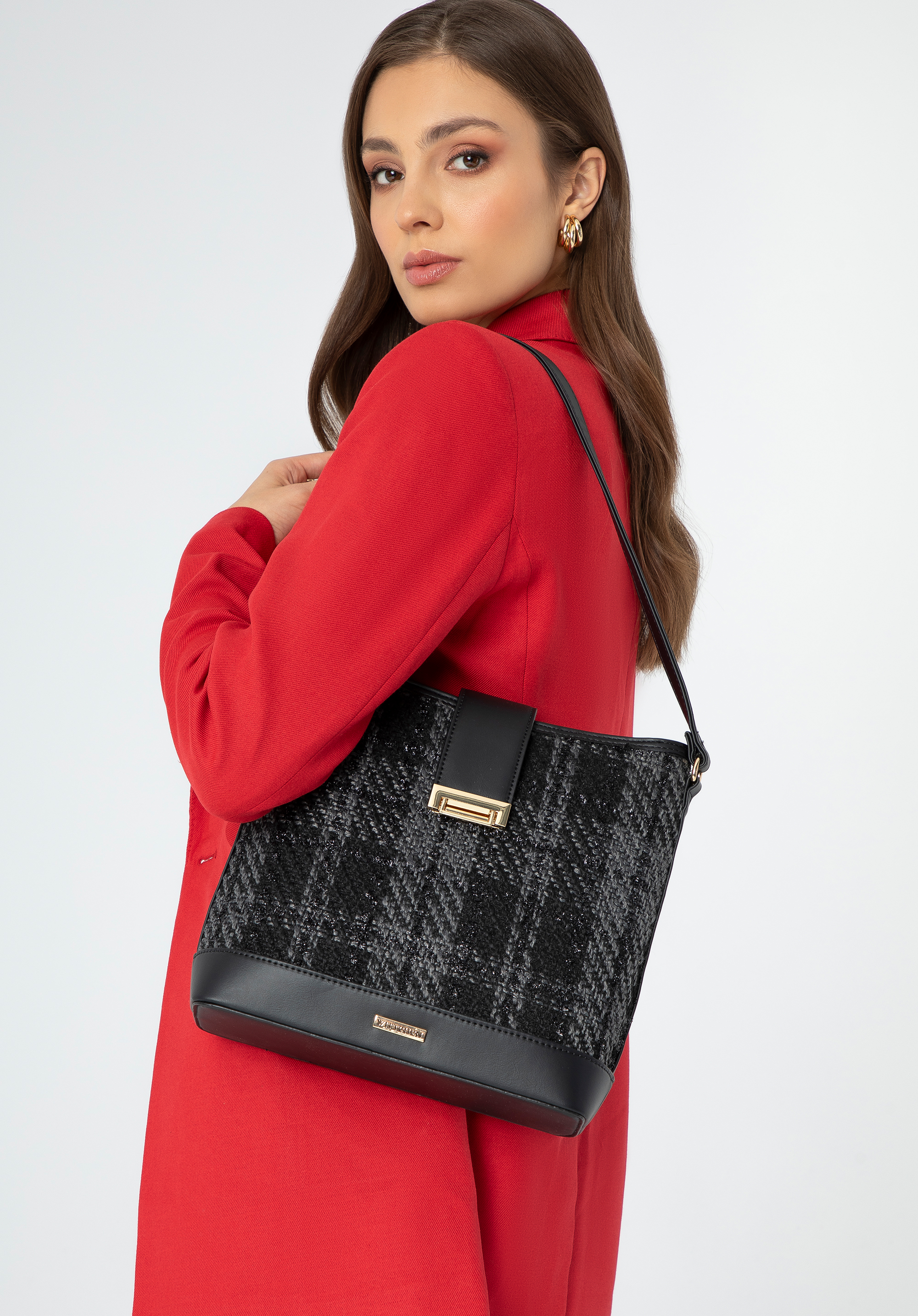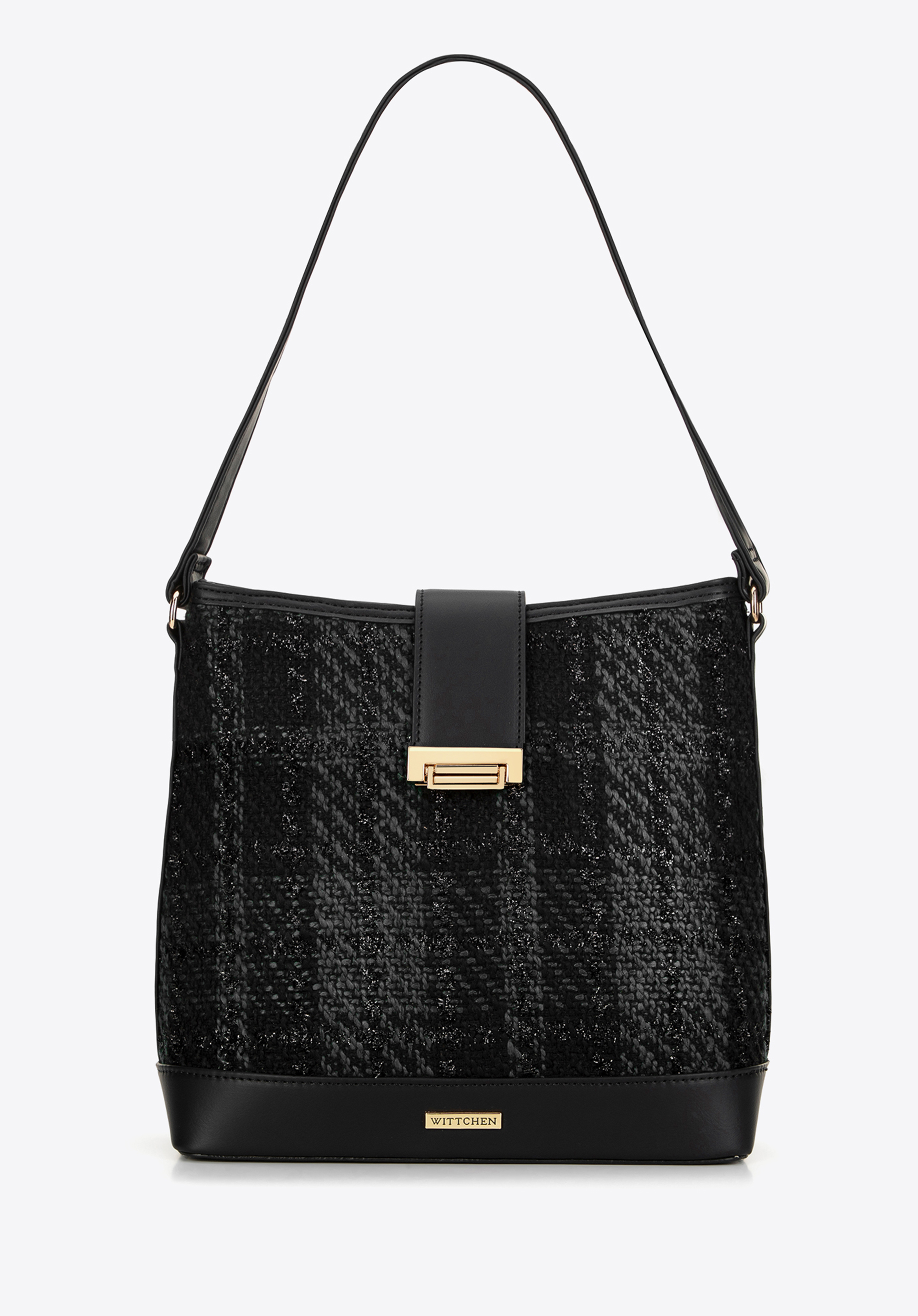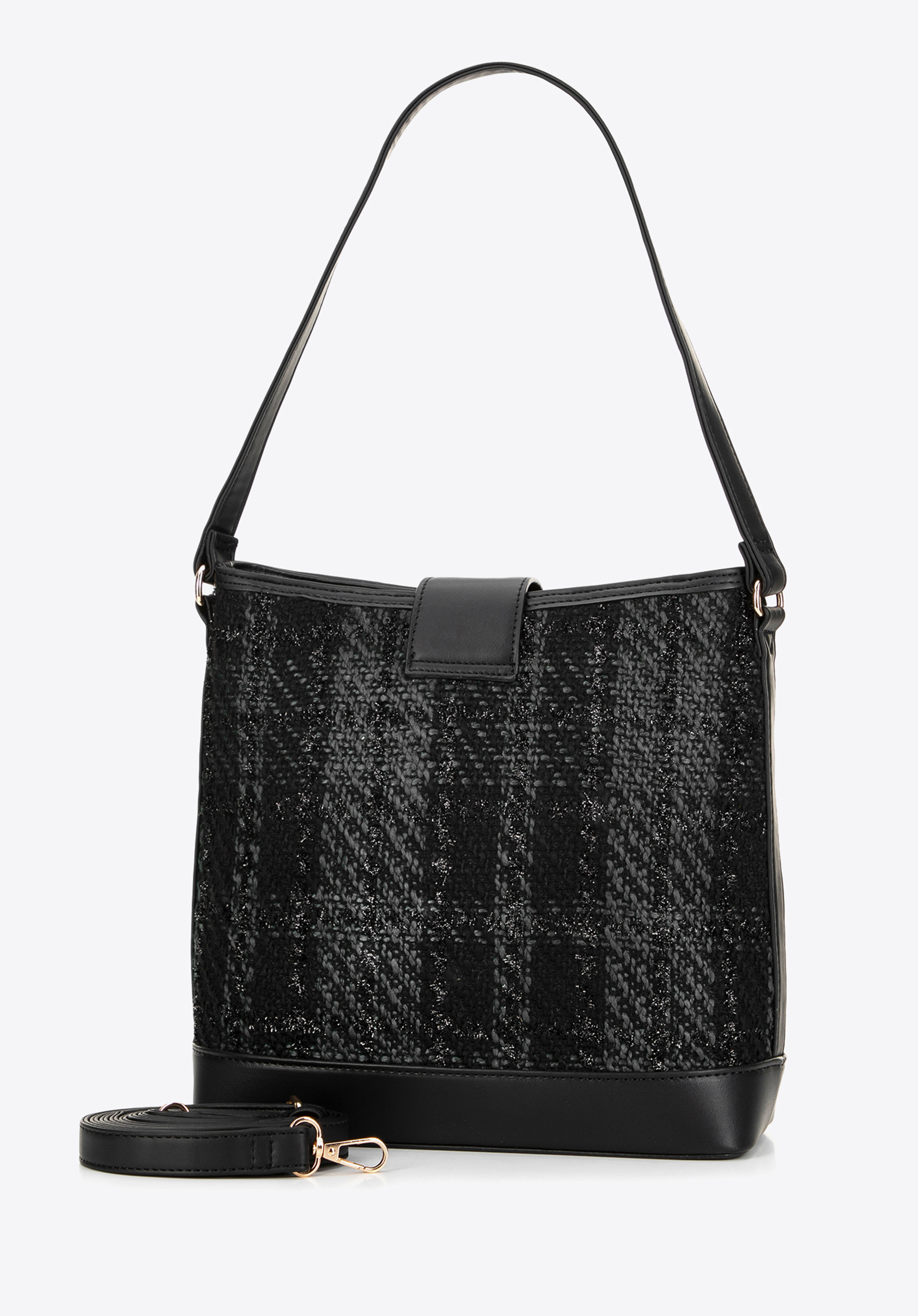 Ez az egyrekeszes hobo táska érdekes dizájnnal büszkélkedhet, ötvözi a klasszikus szövetet és a bohém formát. A csattal ellátott dekoratív pánt egyedi karaktert és eleganciát kölcsönöz. A műbőrből készült fogantyú biztosítja a tartósságot és a stílust, a levehető és állítható pánt pedig személyre szabott hosszúságot tesz lehetővé. A belsejében praktikus zsebek találhatók (egy cipzáros és két nyitott), amelyek tökéletesek a telefonnak és az apróbb tárgyaknak. A megerősített talp garantálja a stabilitást és segít megőrizni a kézitáska formáját, míg az előlapon és a bélésen található diszkrét gyártói logó a kiváló minőségű kivitelezést hangsúlyozza.