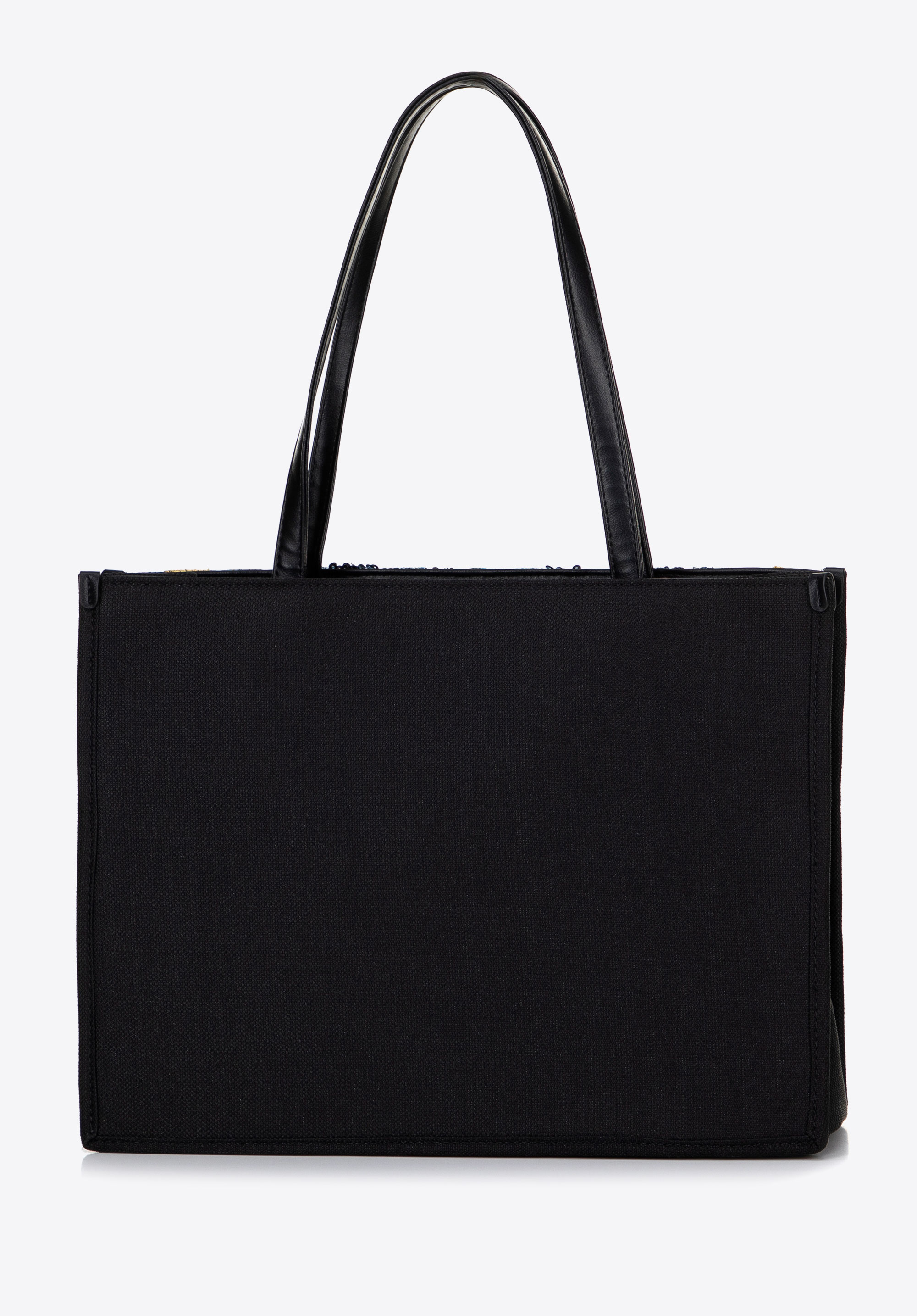 Bemutatjuk a shoppertáskát, amely modern dizájnjával és funkcionalitásával tűnik ki. A csillogó flitteres motívumnak köszönhetően a táska olyan ékszerré válik, amely csillogást kölcsönöz minden ruhadarabnak. A merev szabás elegáns megjelenést biztosít, a tágas kialakítás pedig A4-es méretnek is helyet ad, így tökéletes választás munkába, vásárlásra vagy megbeszélésekre. Két kényelmes fogantyúja lehetővé teszi, hogy a táskát kézben vagy vállon hordozhasd.