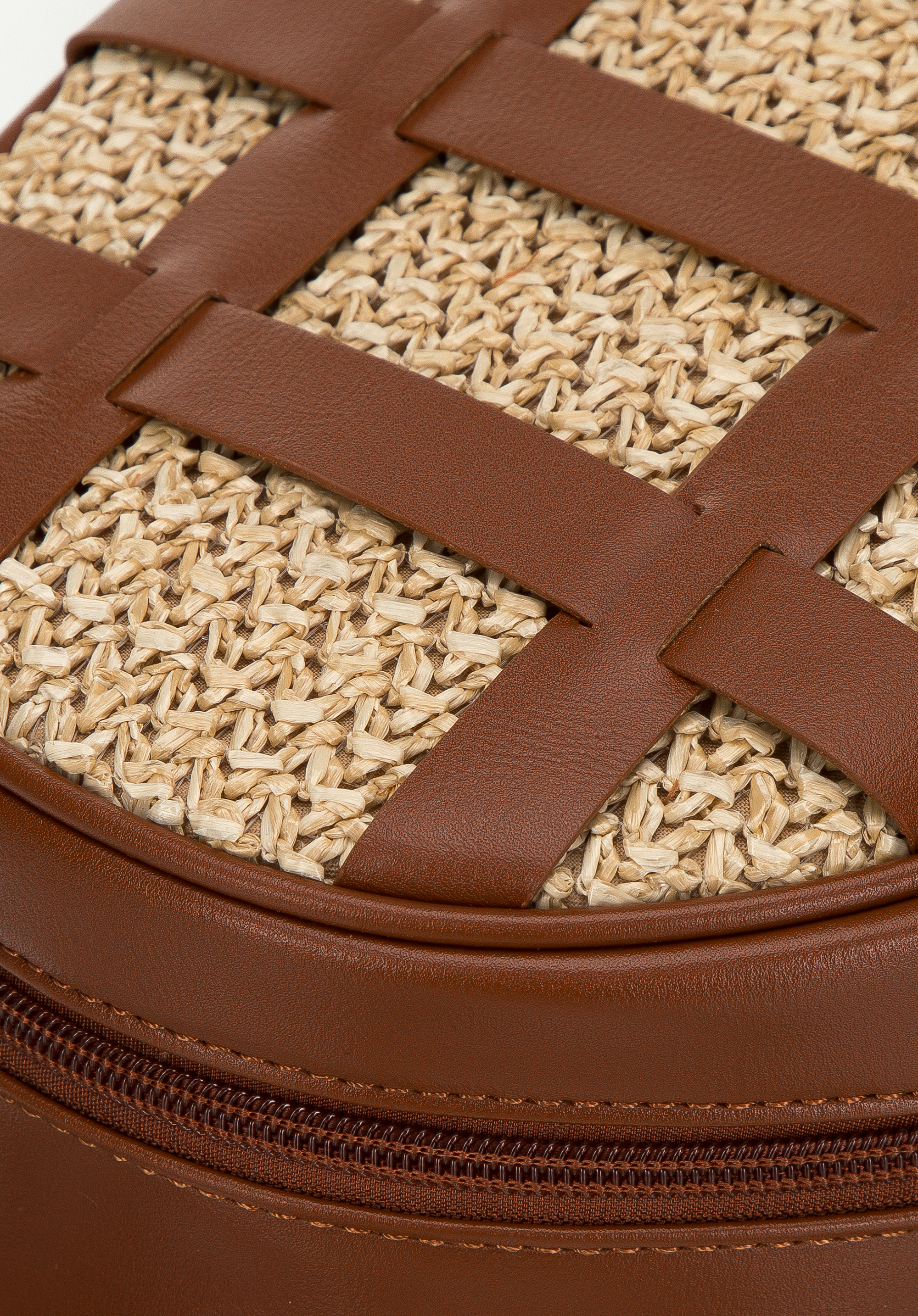 Ez a takaros hátizsák változatossá varázsolja nyári stílusod. Kellemes tapintású műbőrből készült. A szalma szerűen fonott mintából készült előlapot tetszetős rácsos minta egészíti ki. Belsejében elfér egy pénztárca, telefon, néhány kozmetikum és egy tartalék sál - ideális a hétvégi városnézéshez, baráti kávéhoz vagy egy sétához. Párosítsd egy lenge nyári ruhával és kalappal, vagy adj karaktert egy klasszikus farmernek és ingnek. A női műbőr hátizsák fonott betéttel remek választás a divatos kiegészítők kedvelőinek.