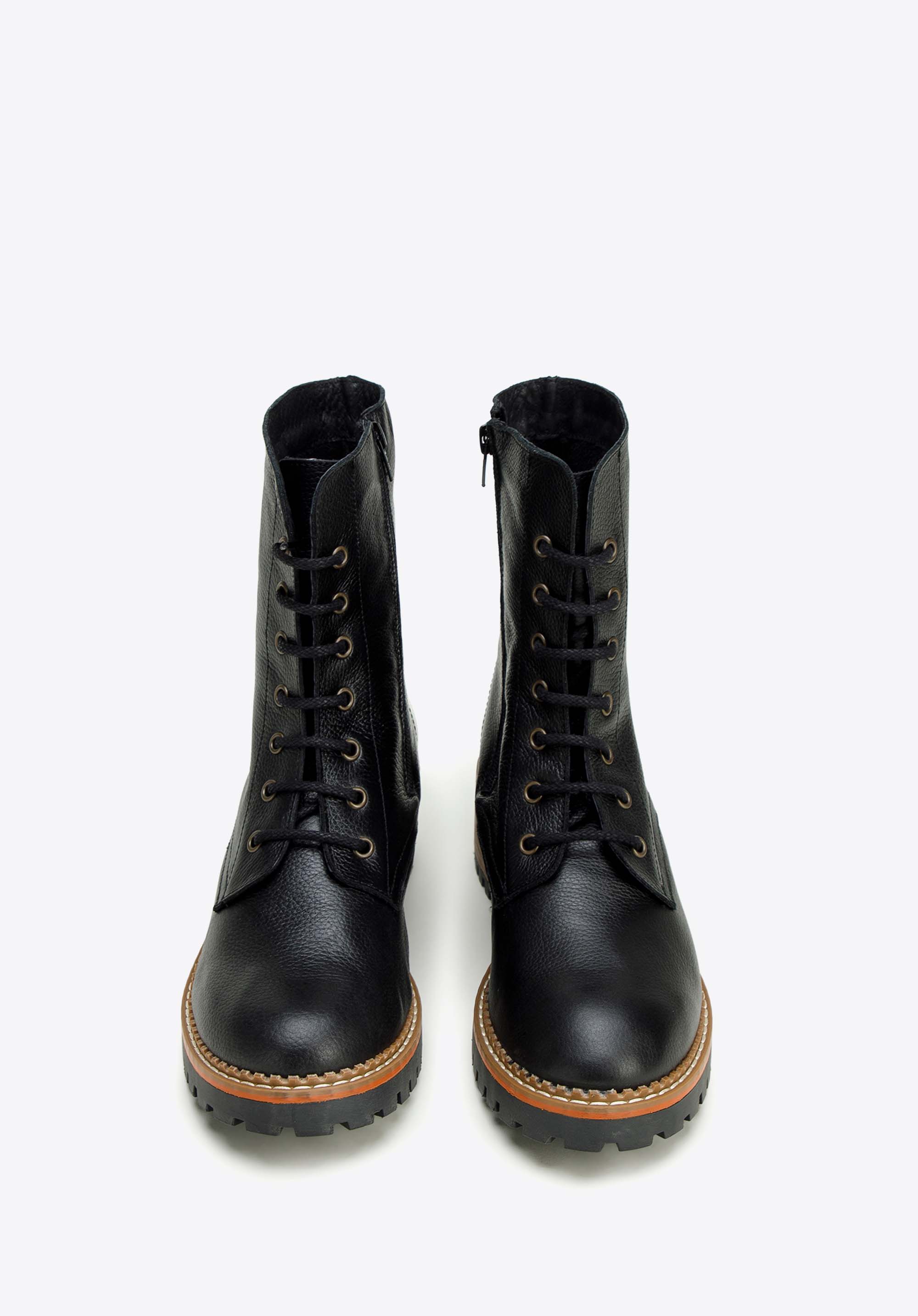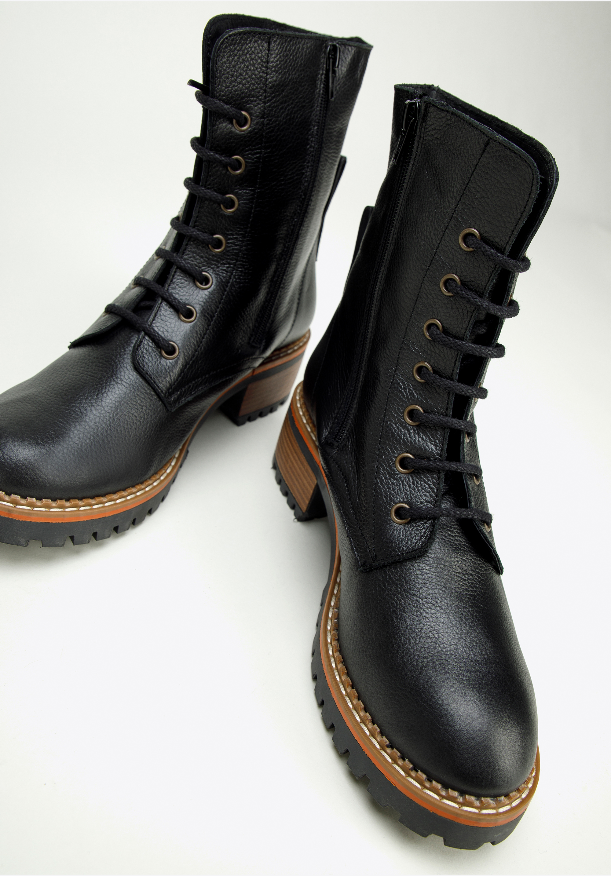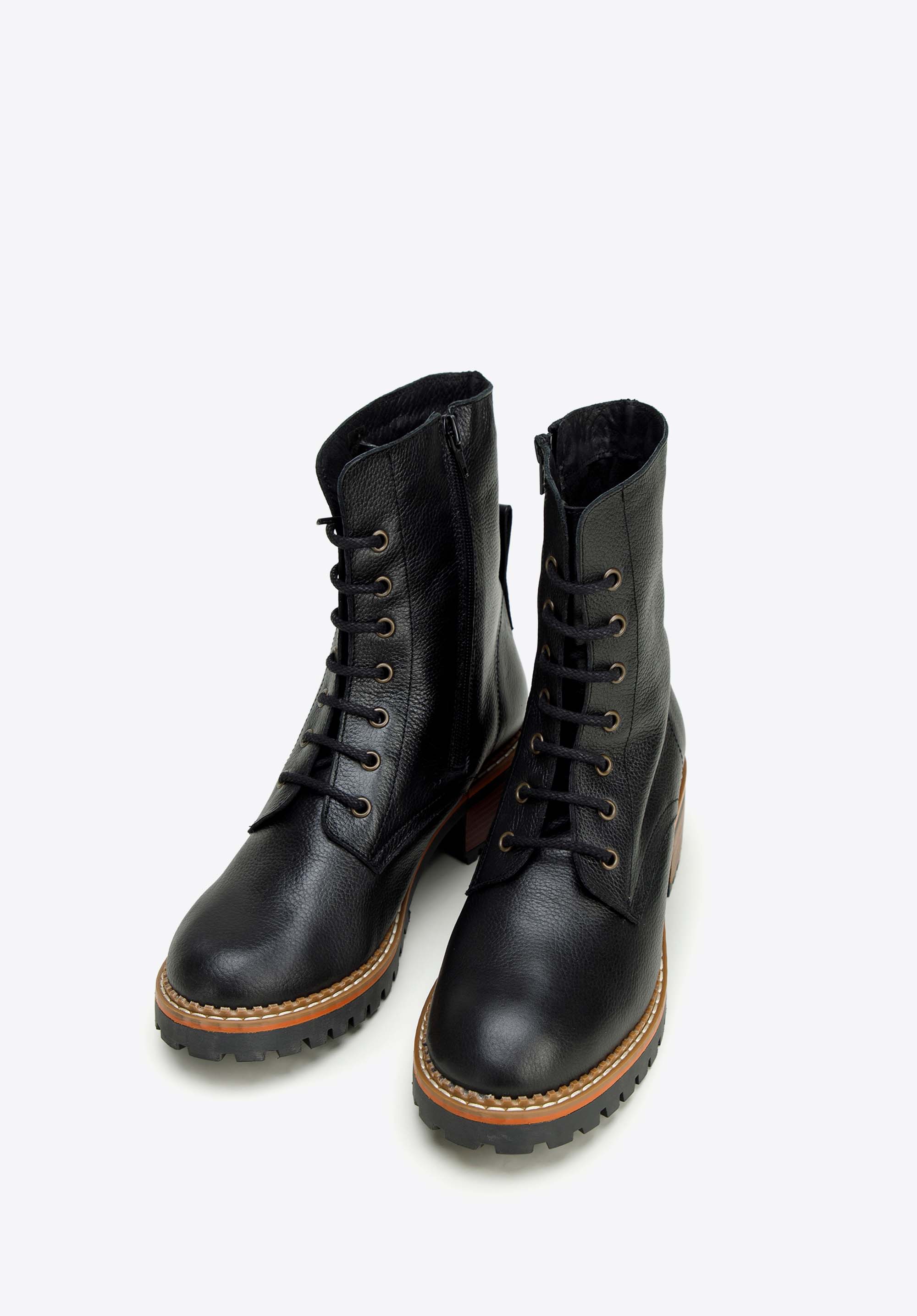 Tapasztald meg az eleganciát és a kényelmet a női bokacsizmával. A kiváló minőségű természetes bőrből készült csizma a stílus és a tartósság tökéletes kombinációja. Széles, kényelmes sarokkal rendelkezik, amely néhány centiméterrel magasabb és stabilitást biztosít. A talp kiváló tapadást biztosít, míg a kontrasztos varrások divatos megjelenést kölcsönöznek. Az oldalsó cipzár és a fűzős felső kombinációjának köszönhetően könnyen felvehetők, és bármilyen alkalomra tökéletesek.