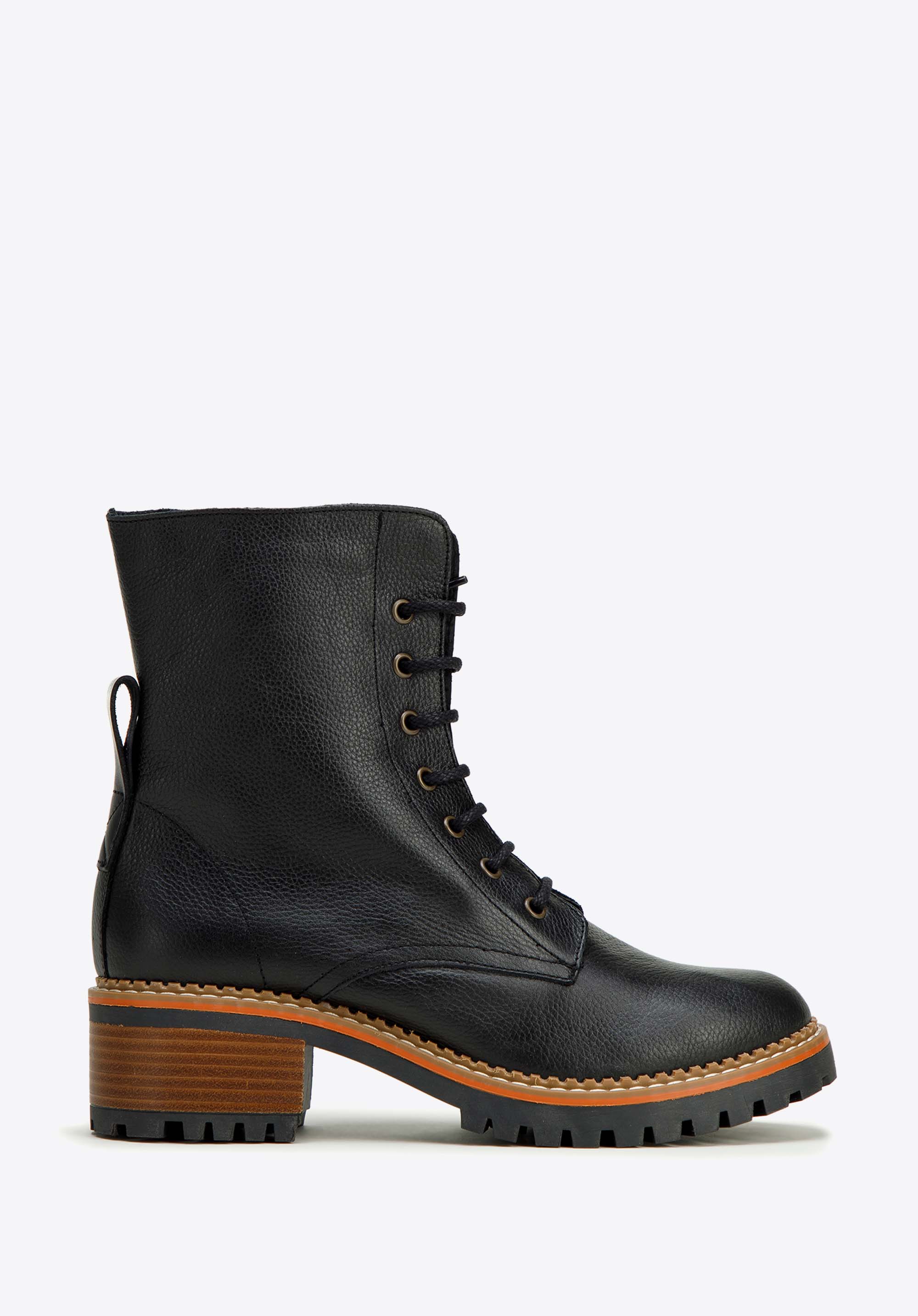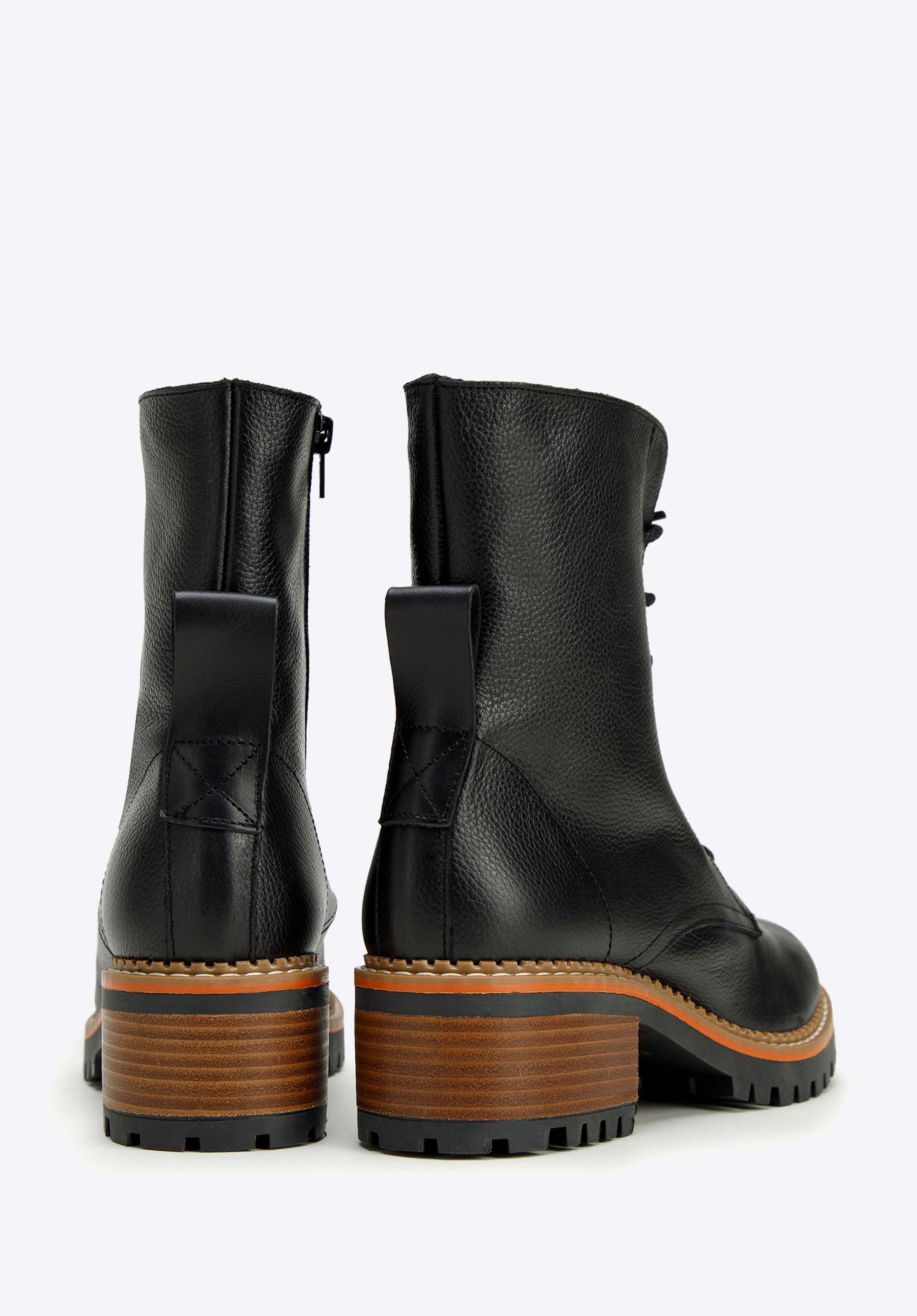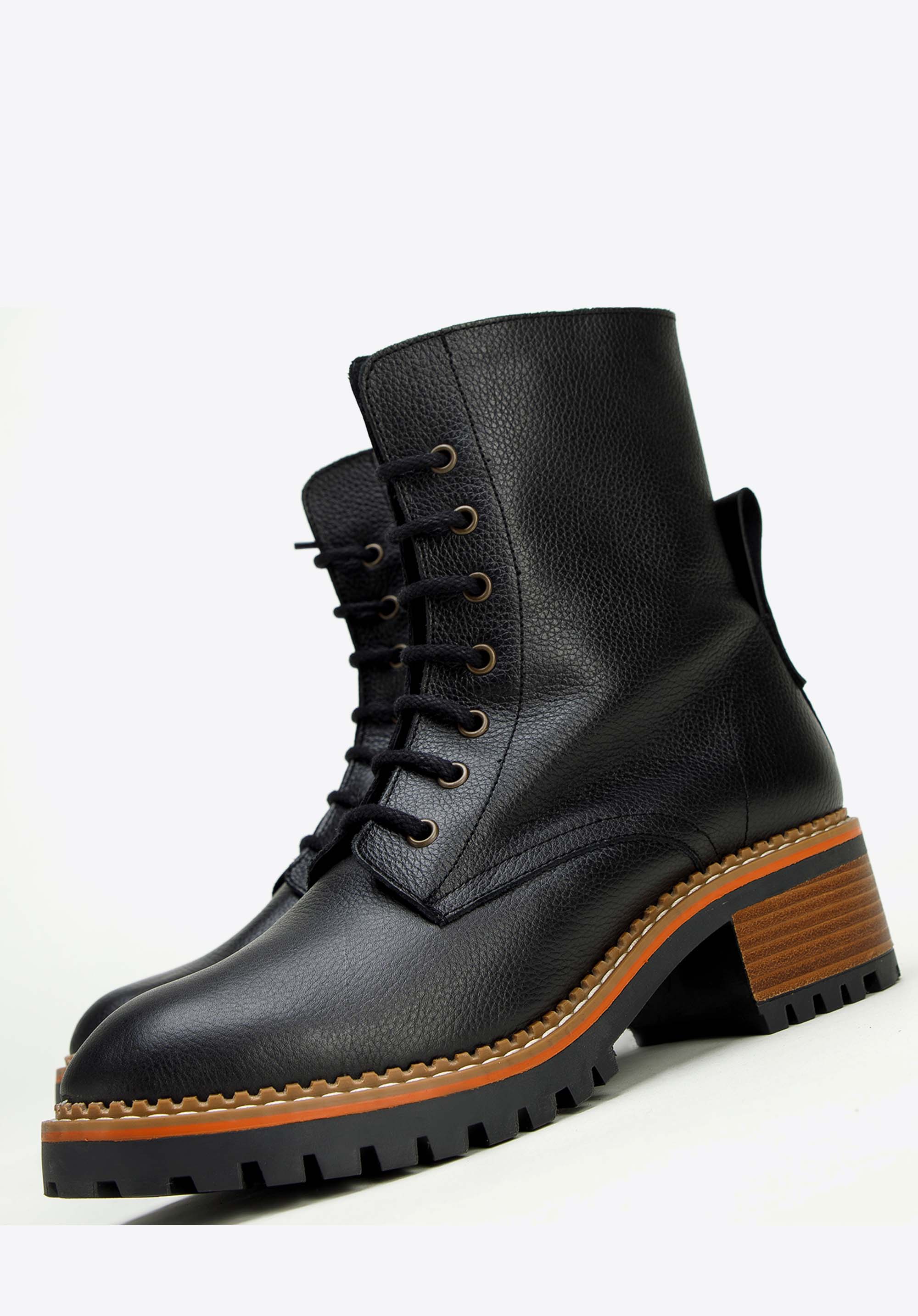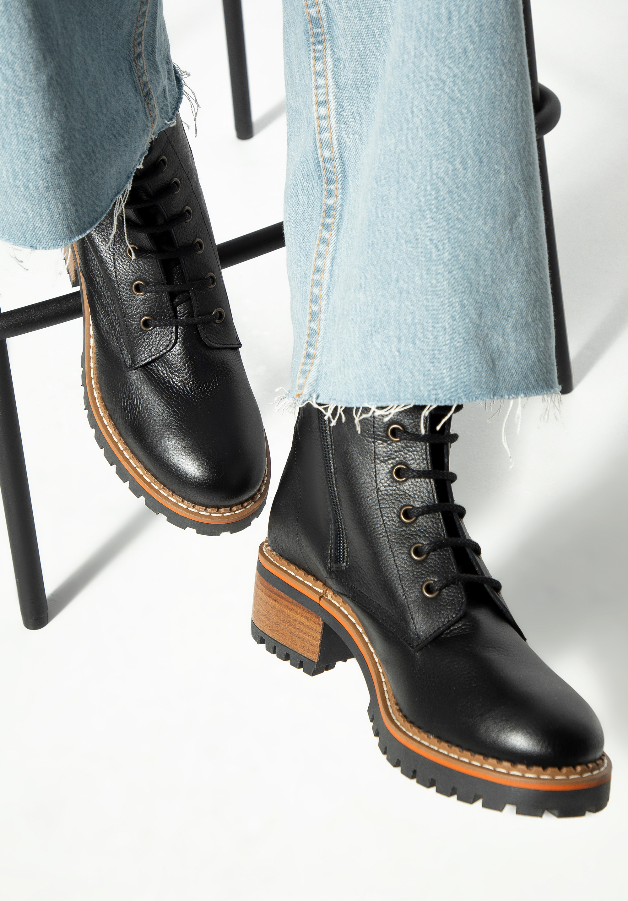 Tapasztald meg az eleganciát és a kényelmet a női bokacsizmával. A kiváló minőségű természetes bőrből készült csizma a stílus és a tartósság tökéletes kombinációja. Széles, kényelmes sarokkal rendelkezik, amely néhány centiméterrel magasabb és stabilitást biztosít. A talp kiváló tapadást biztosít, míg a kontrasztos varrások divatos megjelenést kölcsönöznek. Az oldalsó cipzár és a fűzős felső kombinációjának köszönhetően könnyen felvehetők, és bármilyen alkalomra tökéletesek.
