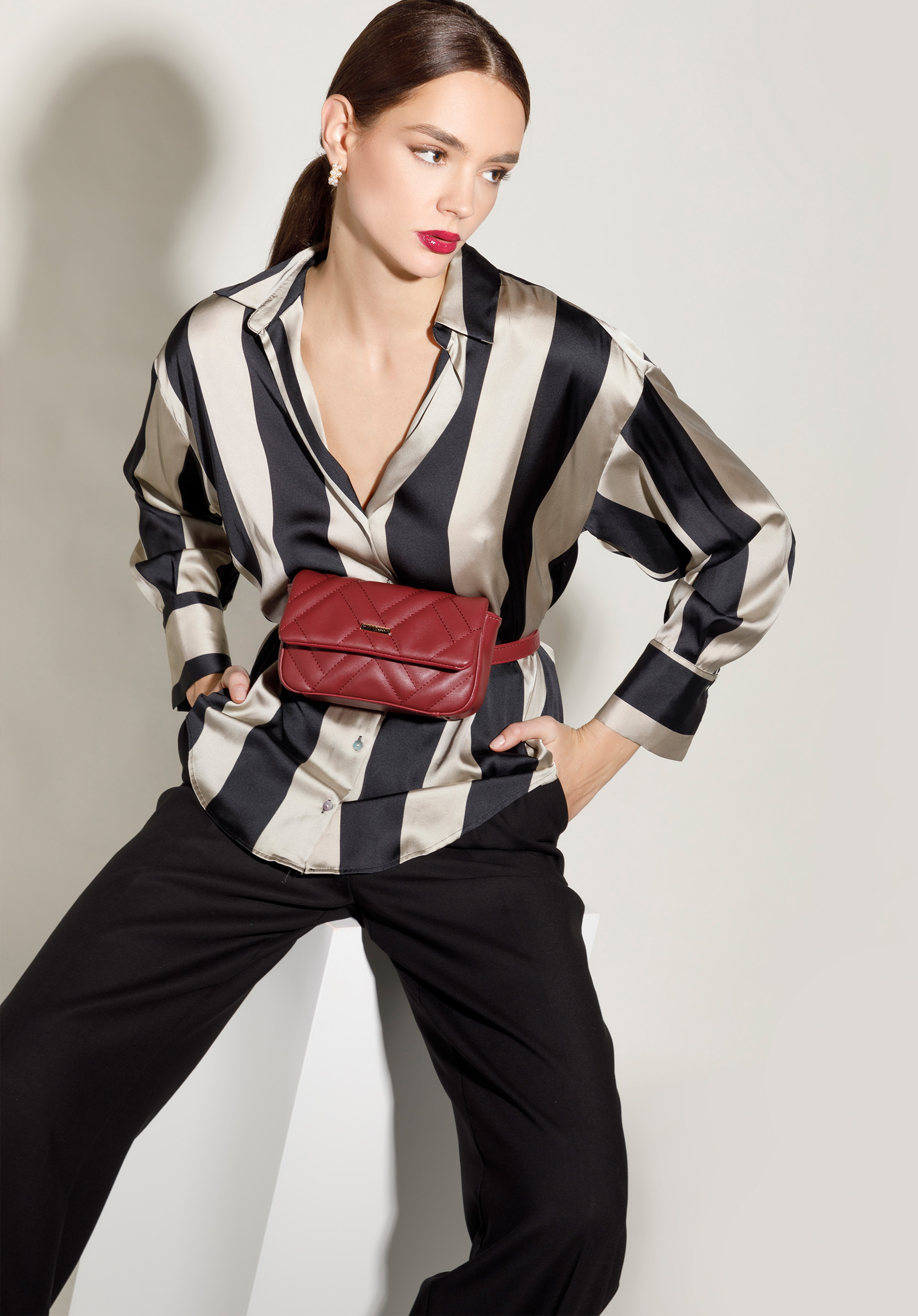 dobozos formát, az arany WITTCHEN logó pedig egy csipetnyi csillogást kölcsönöz.Belsejében elfér egy kártyatartó, a telefonod és a kedvenc rúzsod; éppen jól jön majd egy séta vagy egy kávézás alkalmával a barátnőddel.Ez a modell tökéletesen kiemeli az oversize inget, viselheted sportos stílusban is; sokoldalú, mégis figyelemfelkeltő.