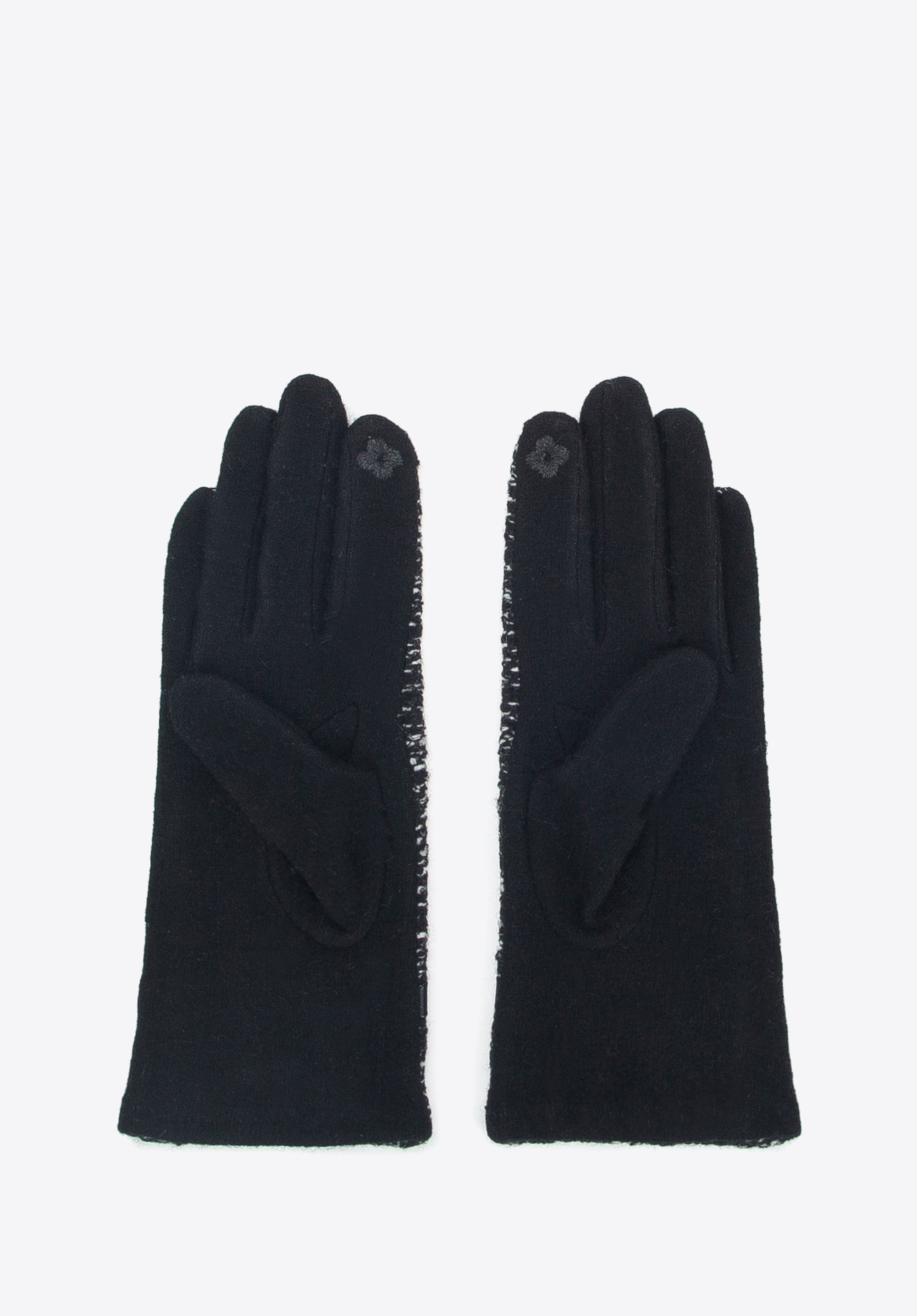Ez a női kesztyű stílusosan egészít ki minden stilizációt. 70% gyapjúból készült, felső része vastagabb, így melegen tartják a kezet. A bouclé szövetre emlékeztető minta és az ökobőr öv dekoratív csatja egyedi karaktert adnak neki. Viseld pehelykabáttal vagy bőrkabáttal – minden helyzetben stílusosan fogsz kinézni. A kesztyűn a mutatóujj begyén speciális hímzés található, melynek köszönhetően a kesztyű levétele nélkül is használhatod a telefont. Ez a női bouclé szövetű kesztyű egy egyedi kiegészítő és remek ajándékötlet minden nő számára.