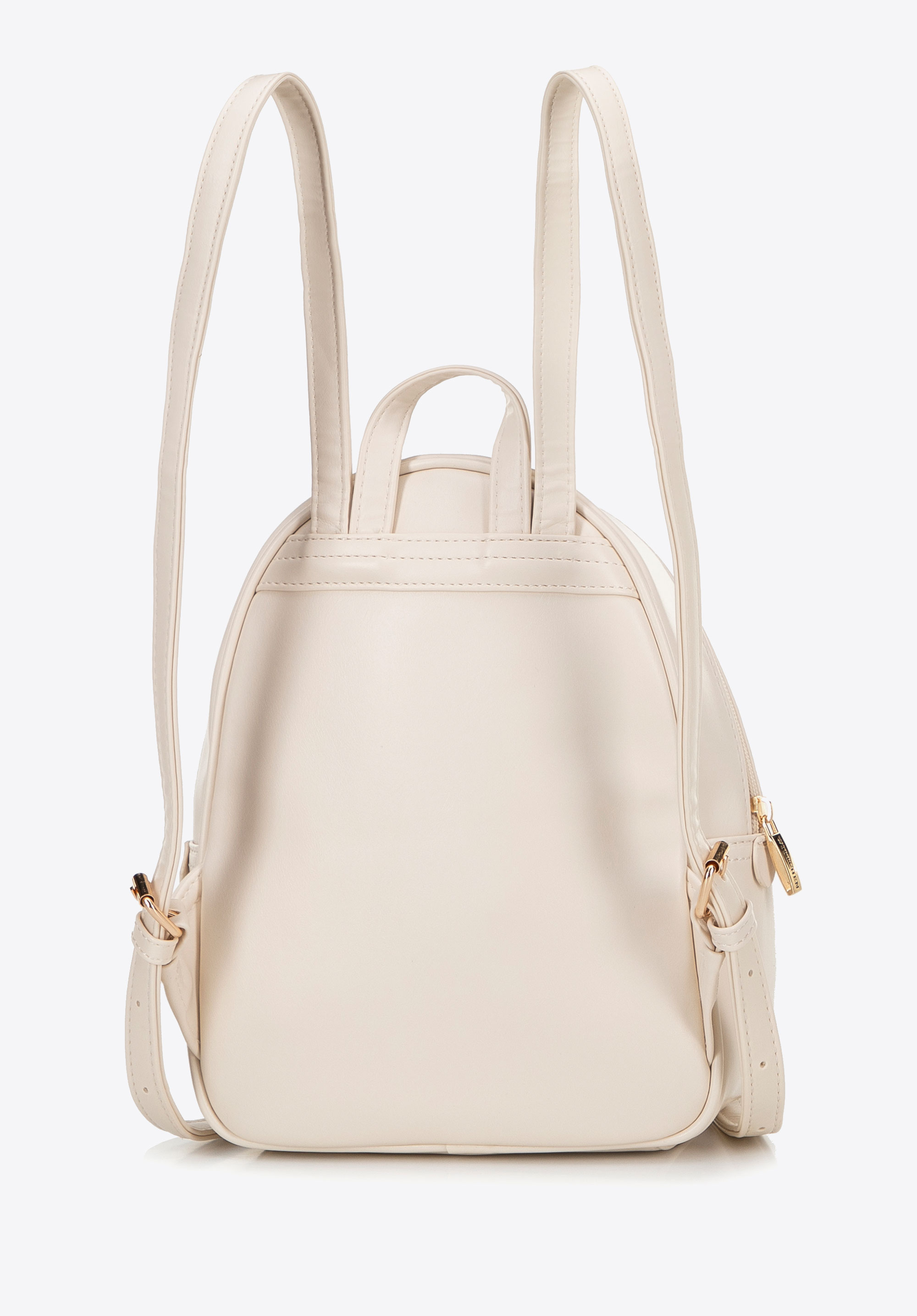 Könnyű, kompakt és csupa báj – ez a lekerekített alakú hátizsák minden modern nő számára kötelező. Vékony, állítható pántjainak és praktikus fogantyújának köszönhetően tetszés szerint hordozható. Cipzárral rögzítve, világos béléssel és belső zsebekkel (beleértve a cipzárast is), minden elfér benne, amire a mindennapi használathoz szükséged lehet.