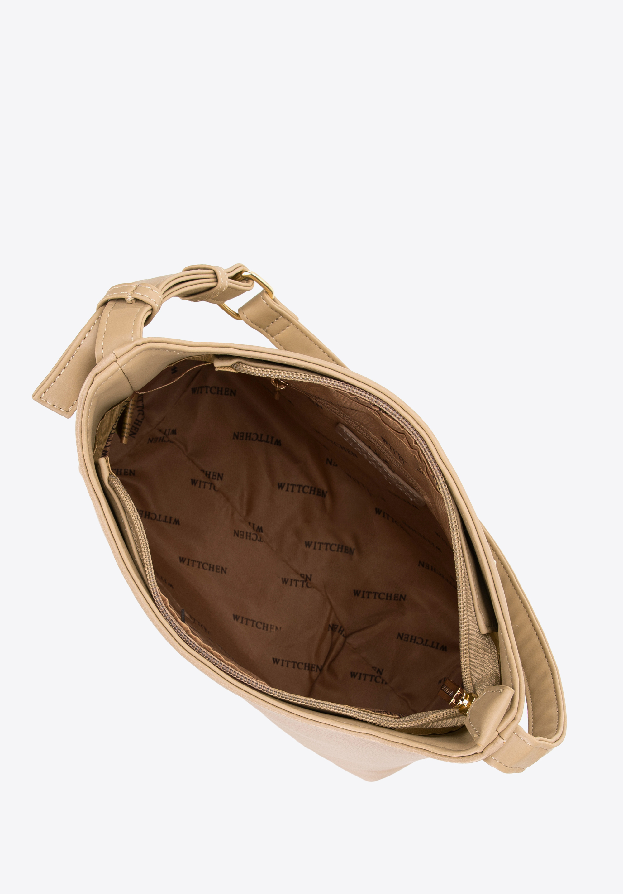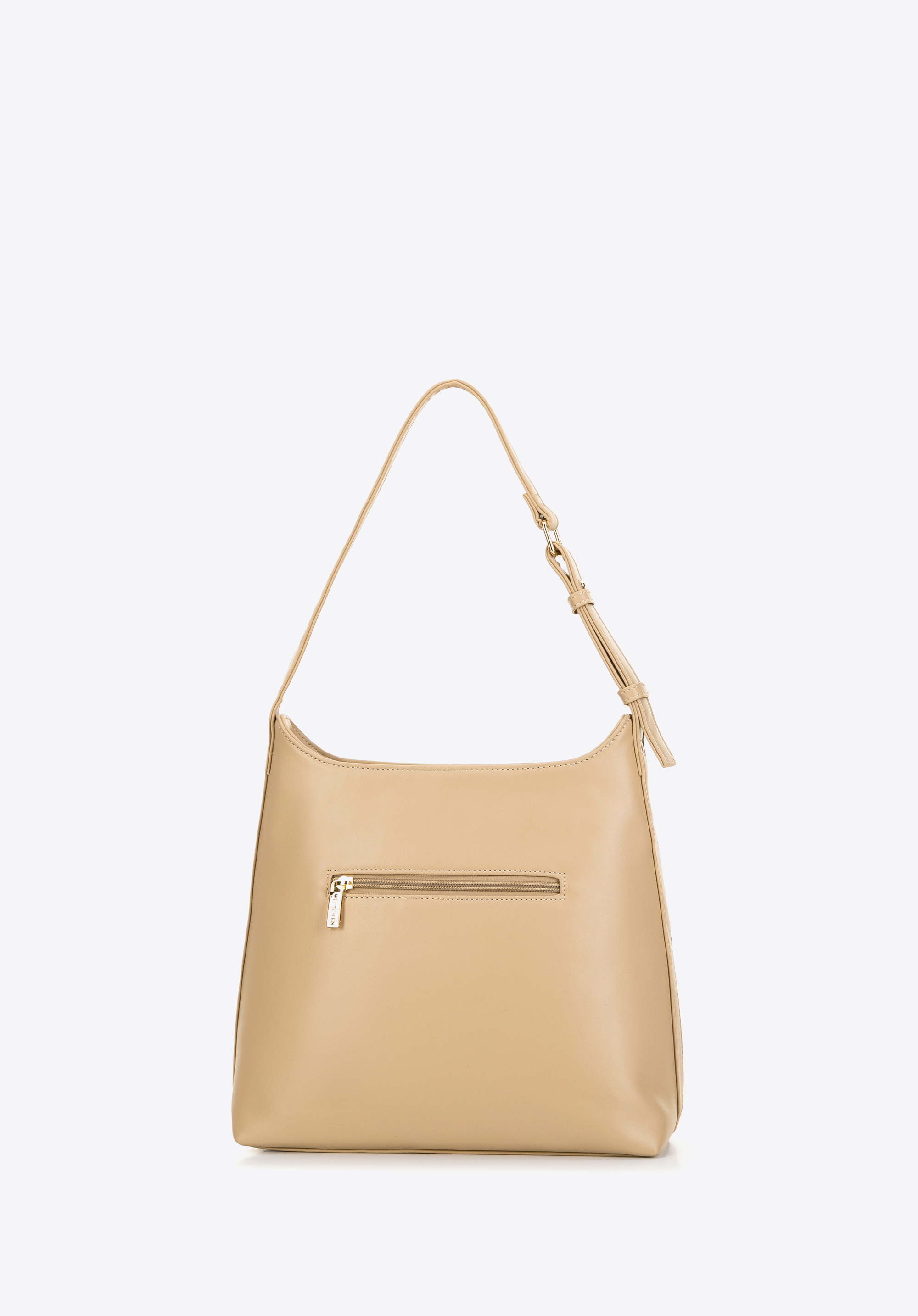A műbőrből készült női hobo táska a stílus és a funkcionalitás tökéletes keveréke. Egyrekeszes belseje tágasságot és könnyű rendszerezést biztosít, míg a kényelmes fogantyú lehetővé teszi a vállon és a kézben való hordozást. A kézitáska belsejében praktikus cipzáras zseb található, valamint egy nyitott zseb található a mobiltelefon vagy a kulcsok gyors eléréséhez. A masszív talp segít megőrizni alakját a tartalomtól függetlenül. A hátsó cipzáras zseb tökéletes a kéznél tartani kívánt tárgyak számára. Ezenkívül az elegánsan dombornyomott logó egy csipetnyi stílust ad, így a ruhatára nélkülözhetetlen elemévé válik.