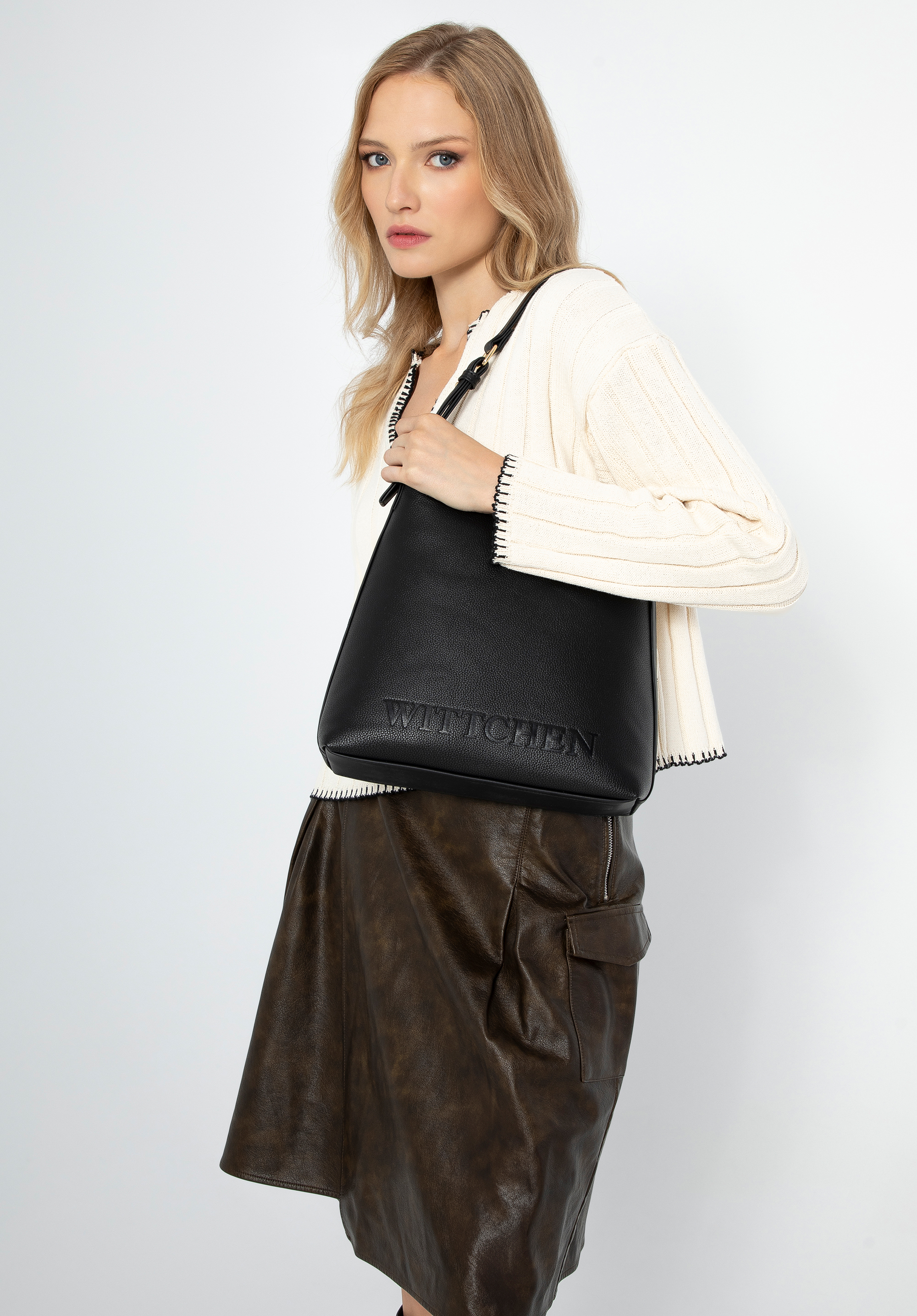 - Részletek: A dombornyomott logó stílust és eleganciát ad a kézitáskának.