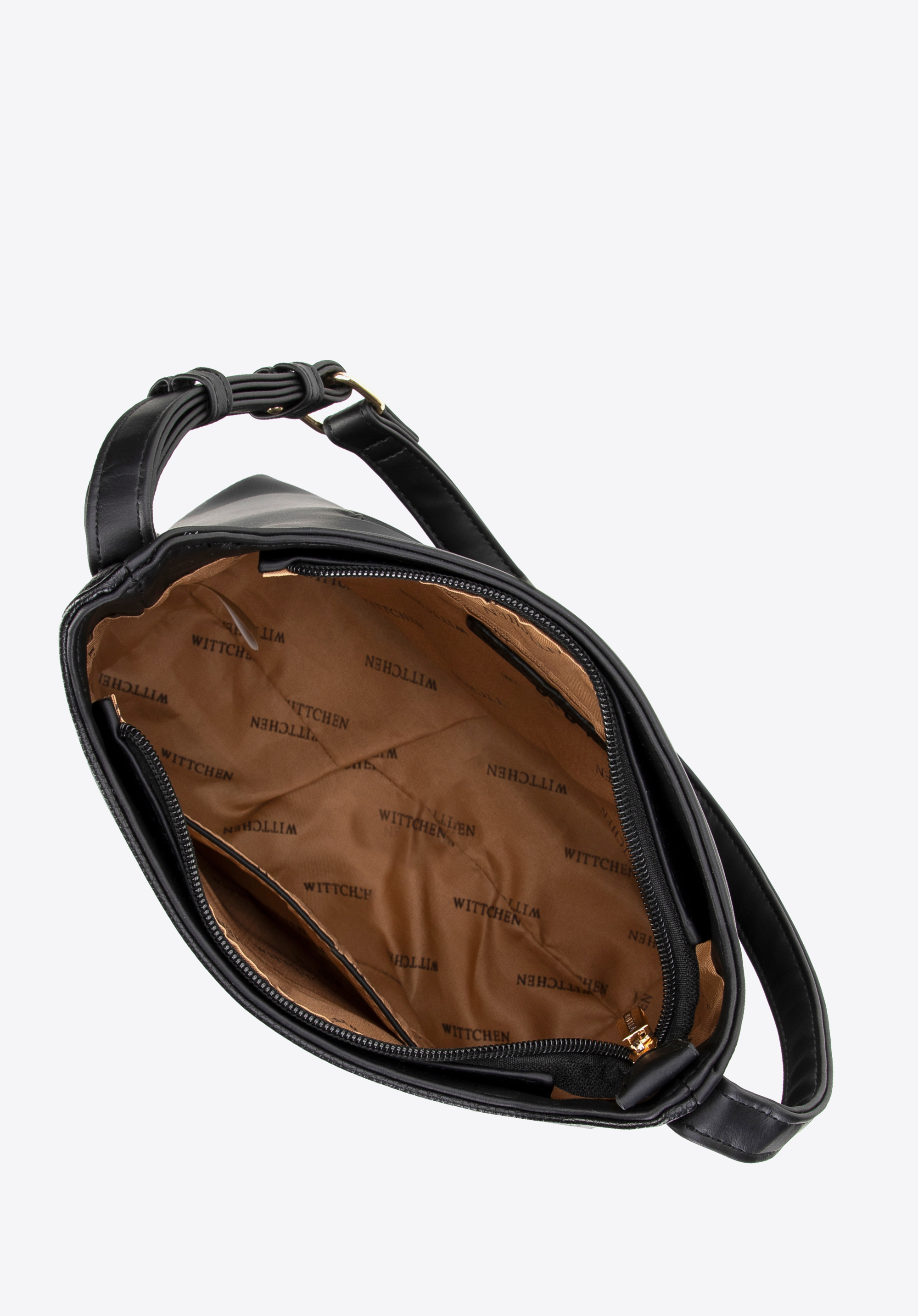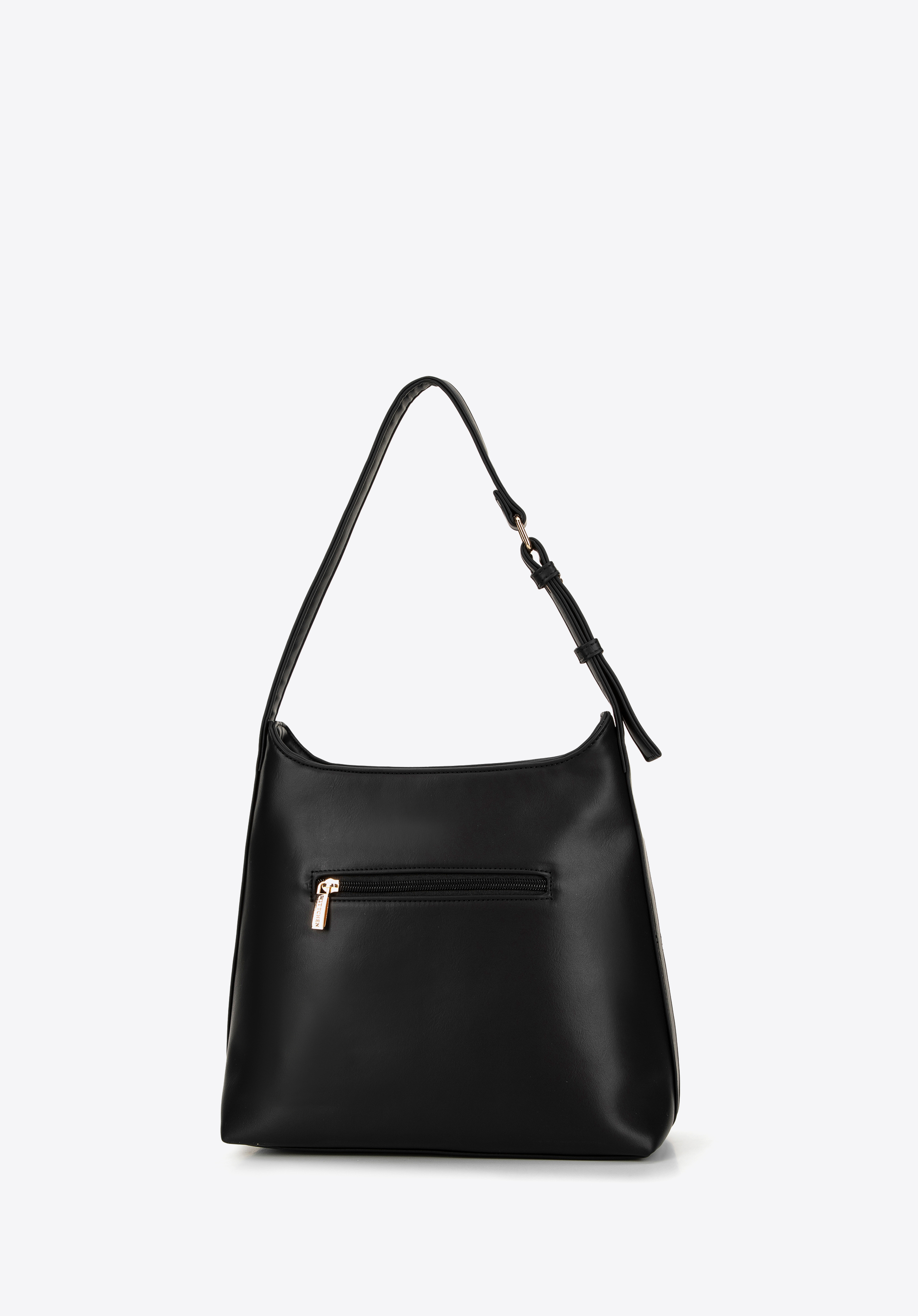 A műbőrből készült női hobo táska a stílus és a funkcionalitás tökéletes keveréke. Egyrekeszes belseje tágasságot és könnyű rendszerezést biztosít, míg a kényelmes fogantyú lehetővé teszi a vállon és a kézben való hordozást. A kézitáska belsejében praktikus cipzáras zseb található, valamint egy nyitott zseb található a mobiltelefon vagy a kulcsok gyors eléréséhez. A masszív talp segít megőrizni alakját a tartalomtól függetlenül. A hátsó cipzáras zseb tökéletes a kéznél tartani kívánt tárgyak számára. Ezenkívül az elegánsan dombornyomott logó egy csipetnyi stílust ad, így a ruhatára nélkülözhetetlen elemévé válik.