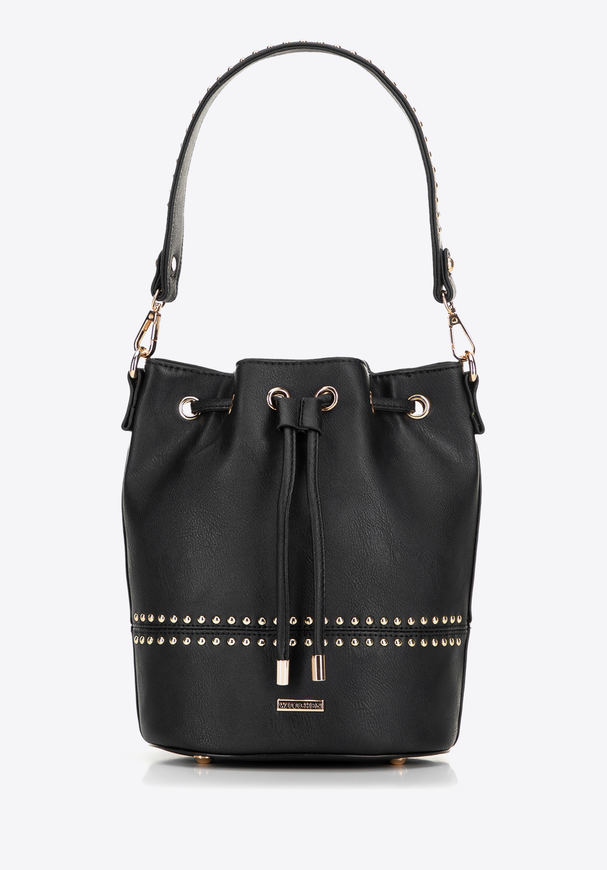 Kombináld a bohó stílust a funkcionalitással ezzel az egyedi hobo táskával. Merész dizájnját a fogantyút és az elejét díszítő fényes szegecsek hangsúlyozzák, amelyek jellegzetes, trendi megjelenést kölcsönöznek neki. Zsinórral rögzítve és praktikus belső zsebekkel rendelkezik, így tökéletes mindennapi kirándulásokhoz és esti összejövetelekhez. A levehető, állítható pánt segítségével személyre szabhatod az illeszkedést, míg az alapon lévő négy fenékszeg segít megvédeni a szennyeződéstől.