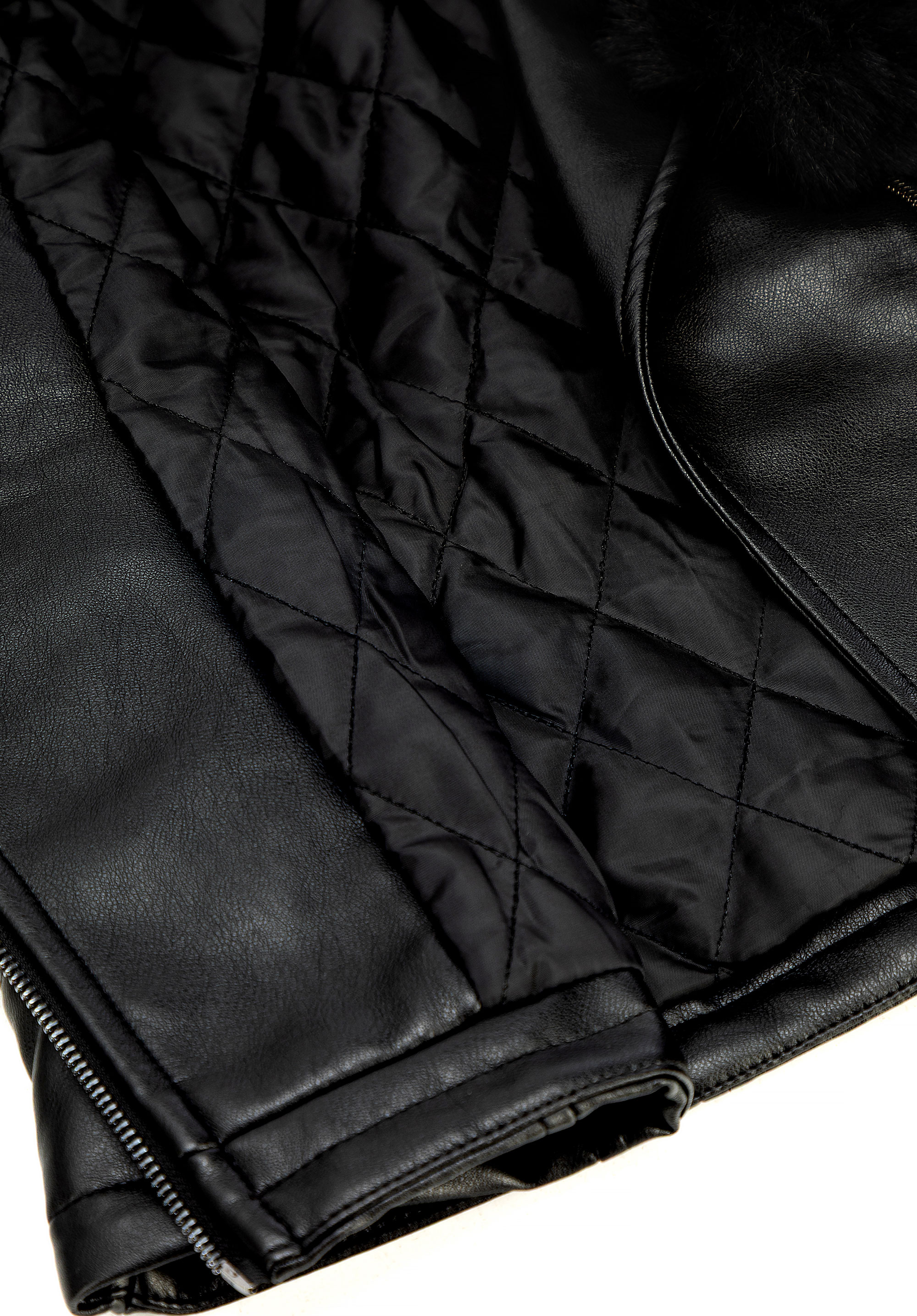 - Összetétel: Külső anyag: 100% műbőr; bélés: 100% poliészter; gallér és mandzsetták: 100% műszőrme – poliészter.