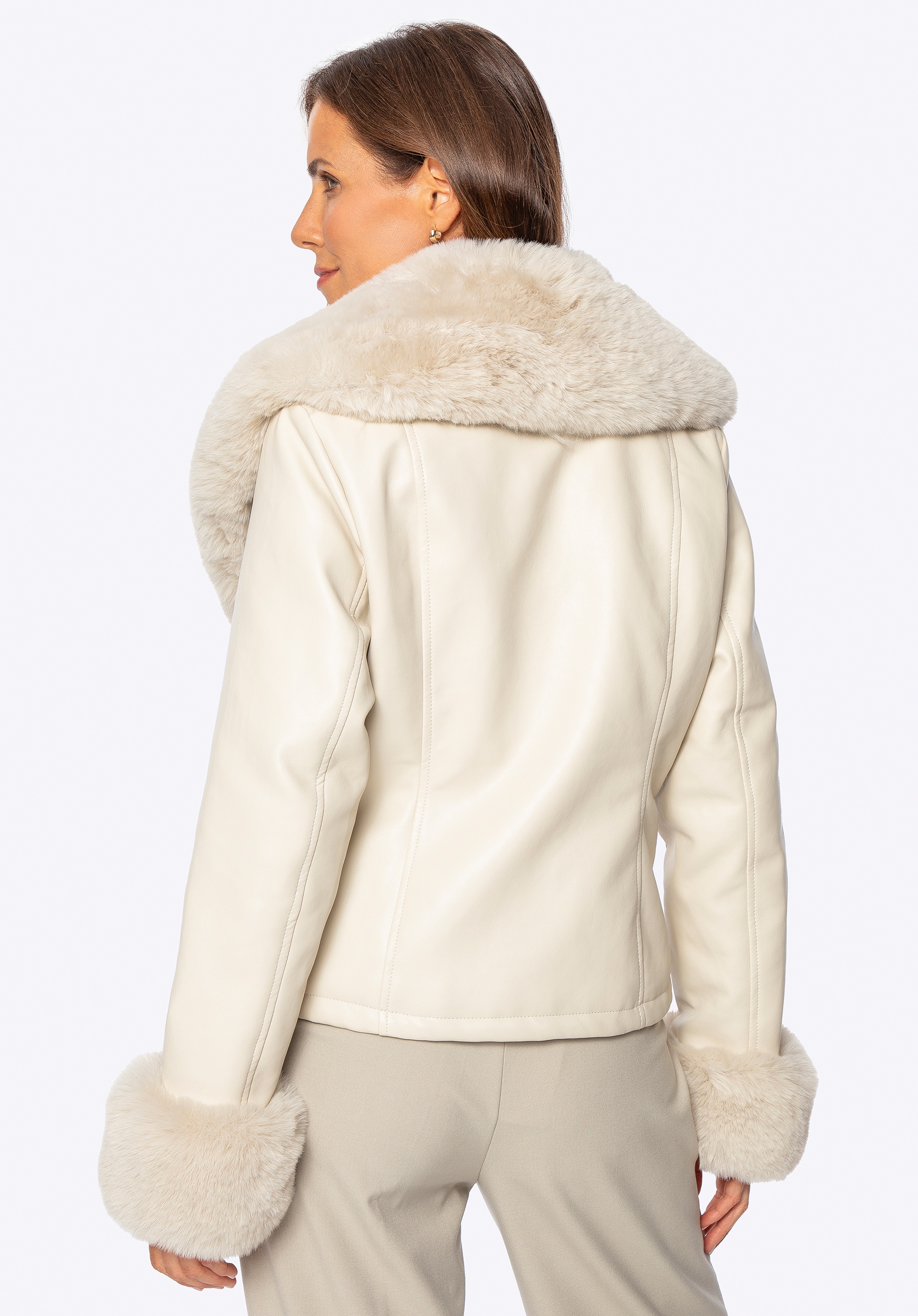 Városi elegancia – műbőr kabát szőrmével díszítve