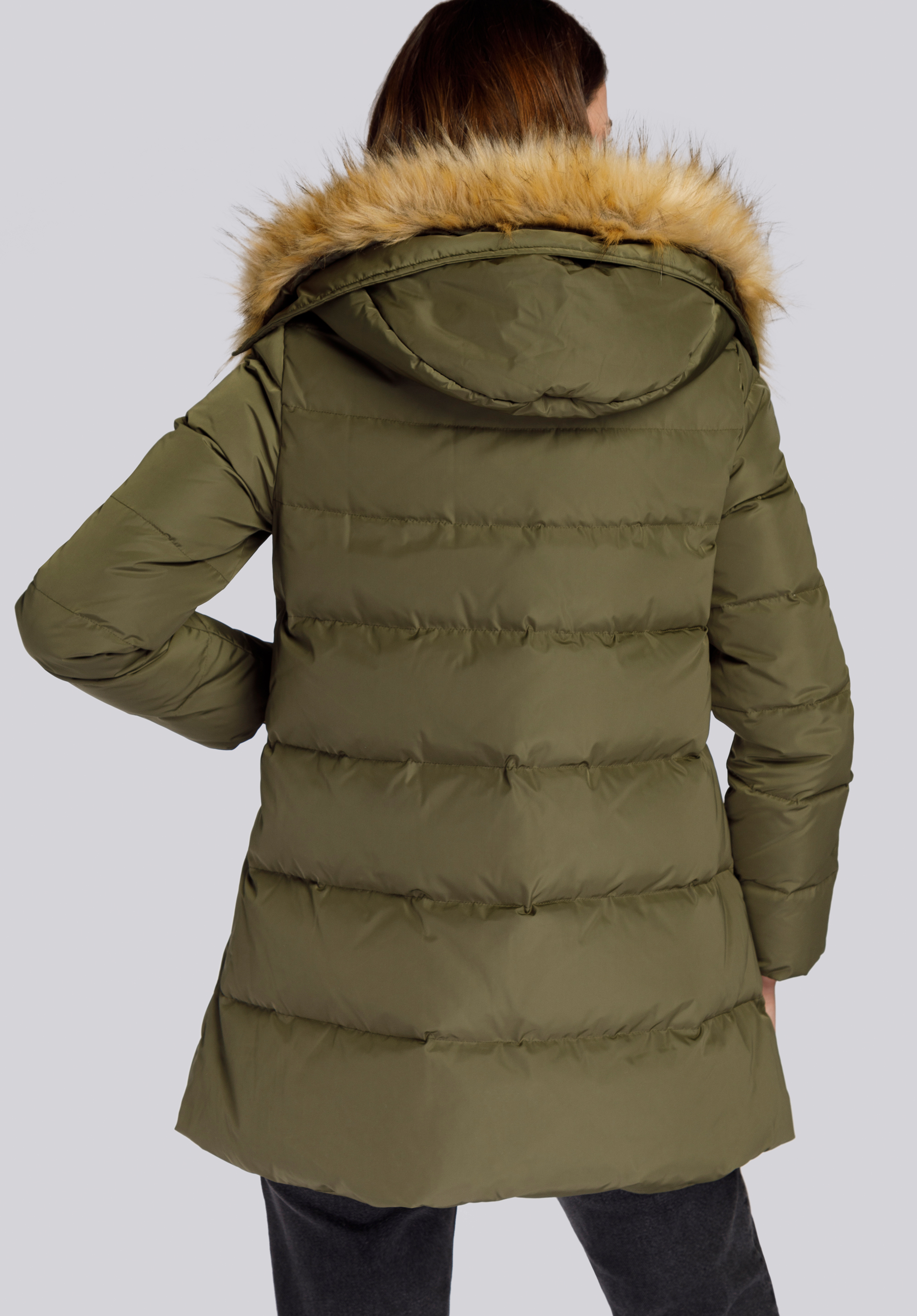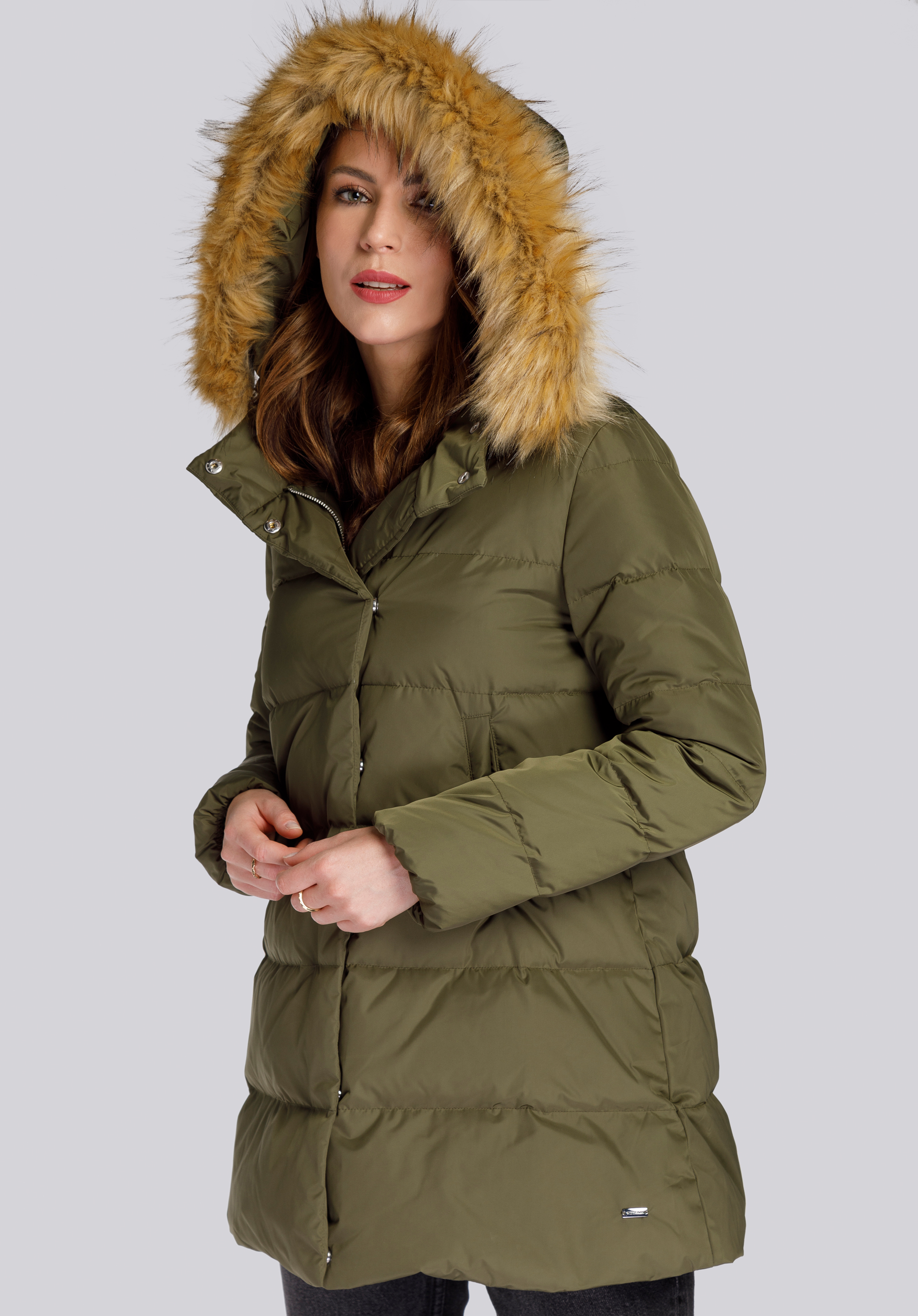 Klasszikus pehelykabát modern kiadásban. Trapéz alakú szabással rendelkezik. Belseje 70% kacsa pehellyel és egy 30% tollal van bélelve, így biztos lehetsz benne, hogy ez nagyszerű választás a fagyos napok ellen. Ha szeretsz sapka nélkül járni, akkor értékelni fogod a kapucnit, mesterséges szőrmedísszel. Kezeidet a zsebekbe rejtheted a hideg elől, ha elfelejtettél kesztyűt magaddal vinni. Ez a női pehelykabát egy klasszikus modell, amely sok éven át szolgál majd.