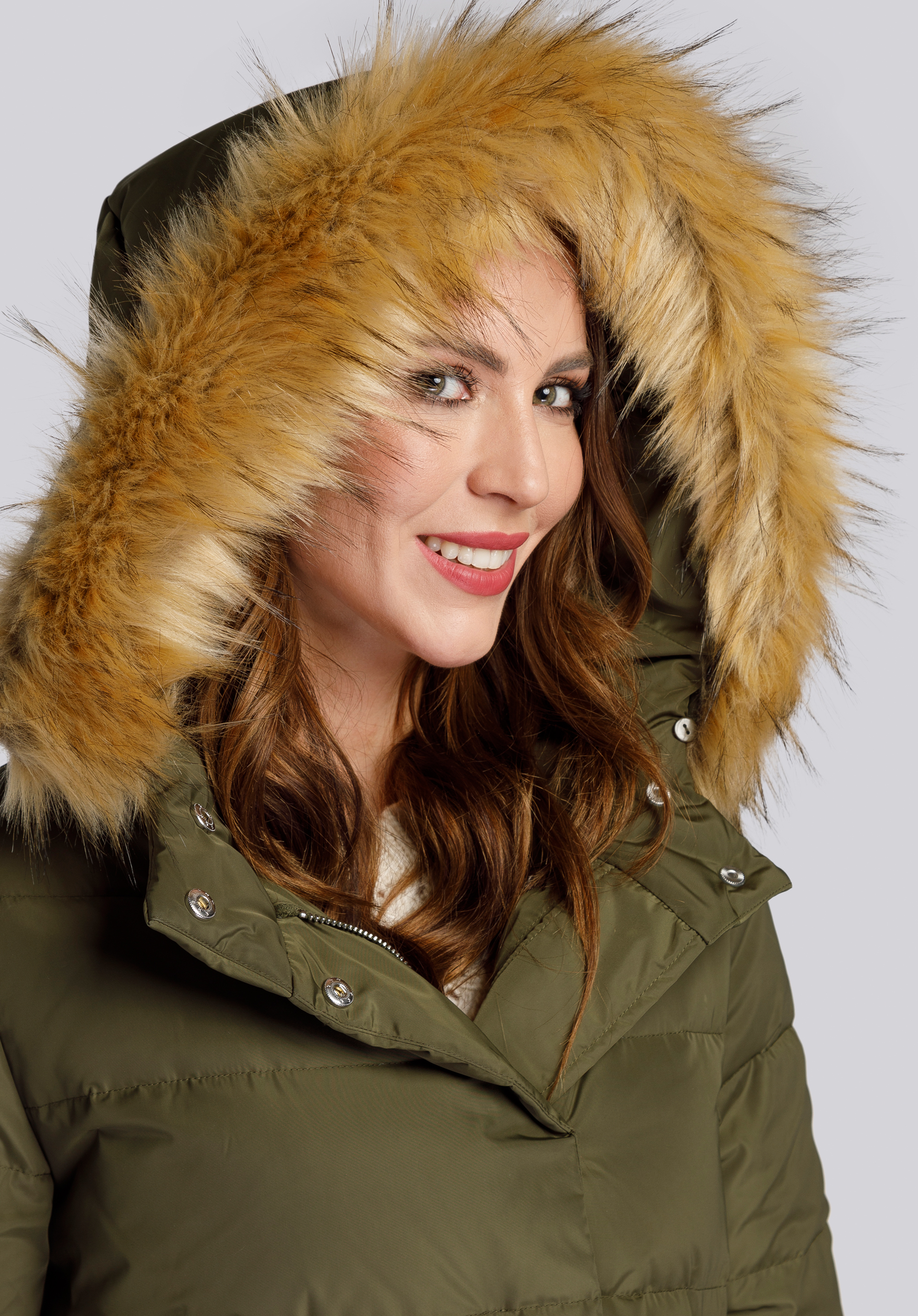 - Mesterséges szőrmével díszített enyhén bélelt kapucni;