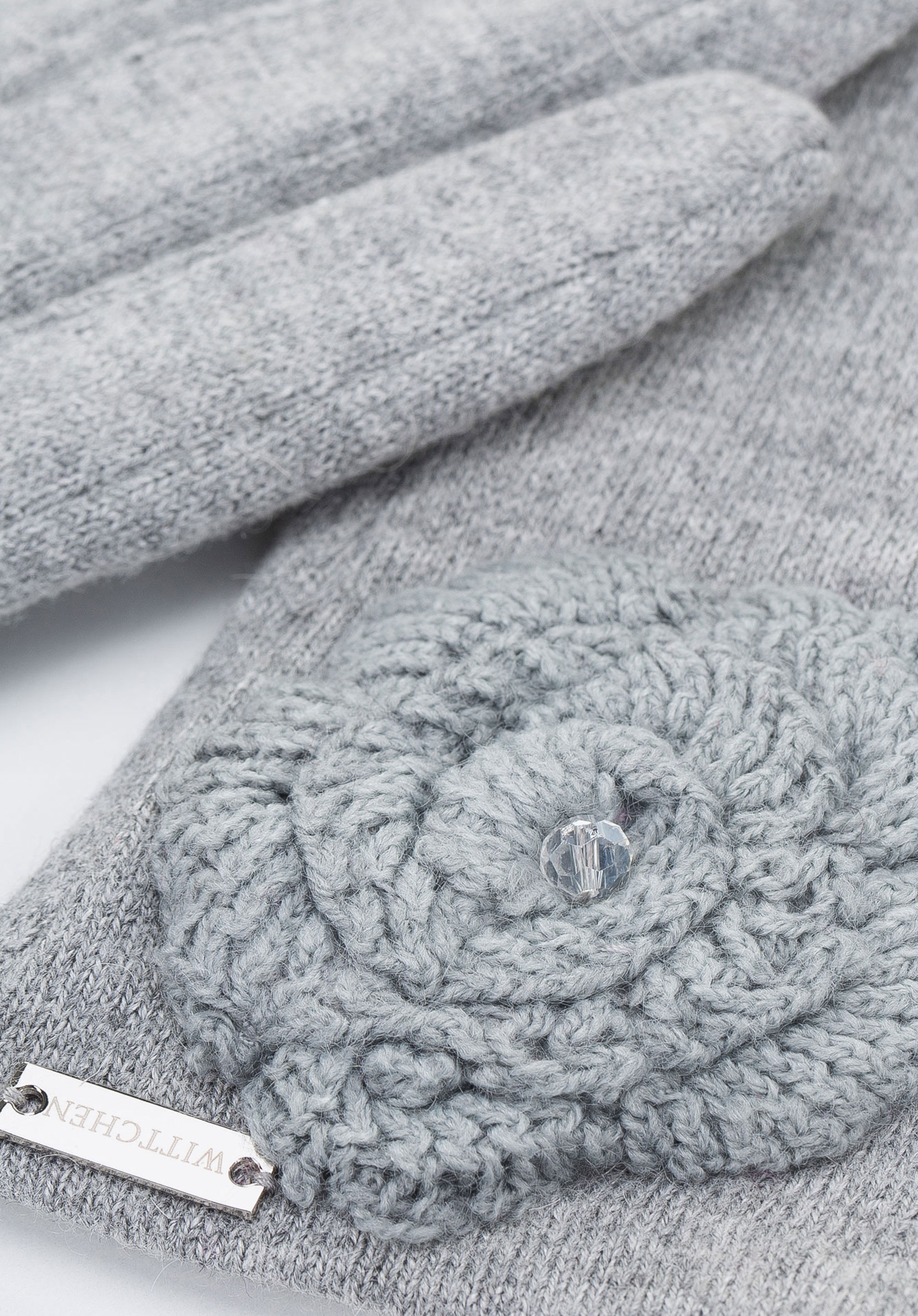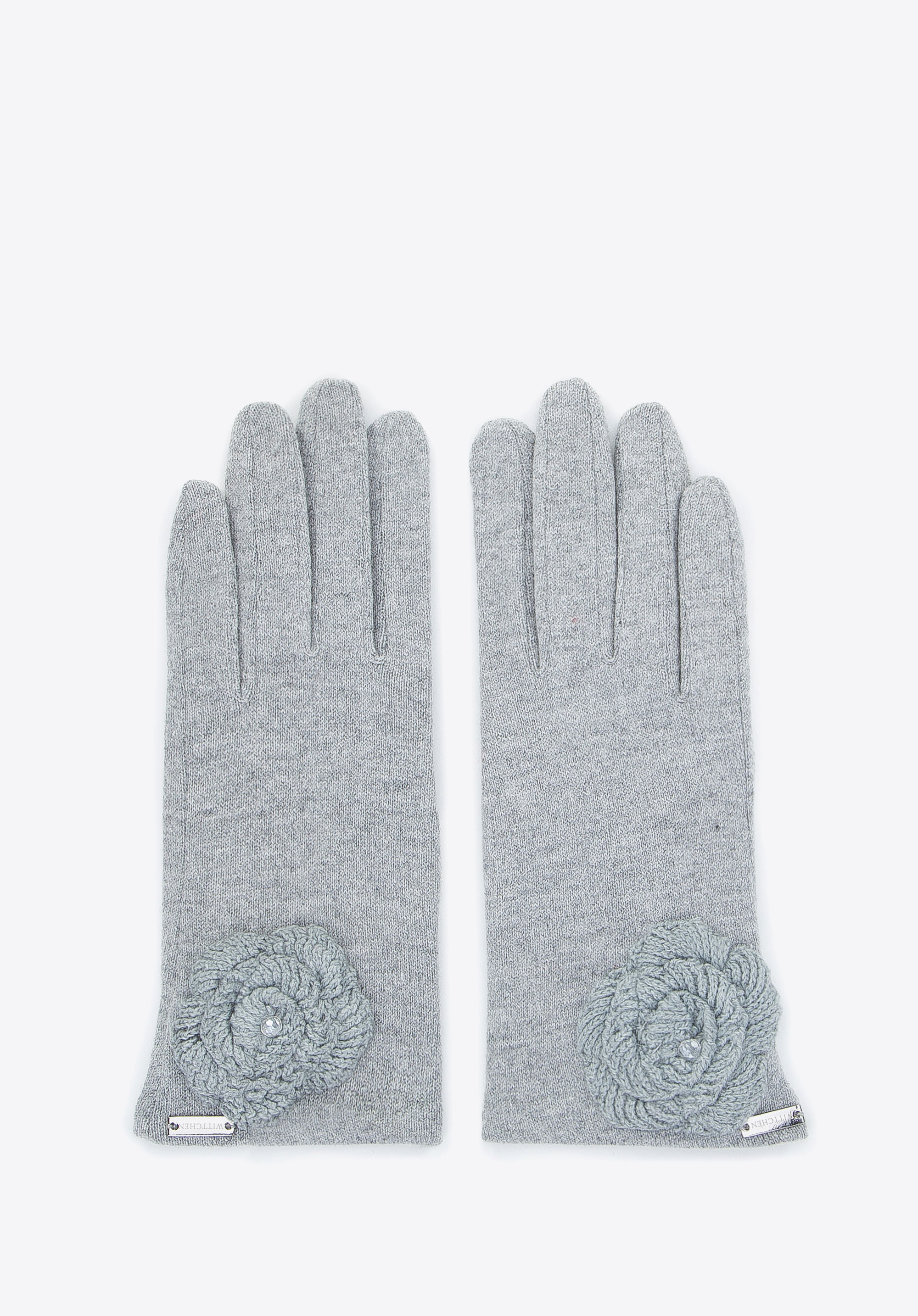 Rendkívül nőies kesztyű a hidegebb napokra. 50% gyapjúból készült, ami melegen tartja a kezet. A speciális szál kiegészítése lehetővé teszi az érintőképernyők használatát a kesztyű levétele nélkül. A kötött virág kifinomult bájt kölcsönöz neki. Ez a modell remekül mutat steppelt hétköznapi kabáttal és elegáns gyapjúkabáttal is.