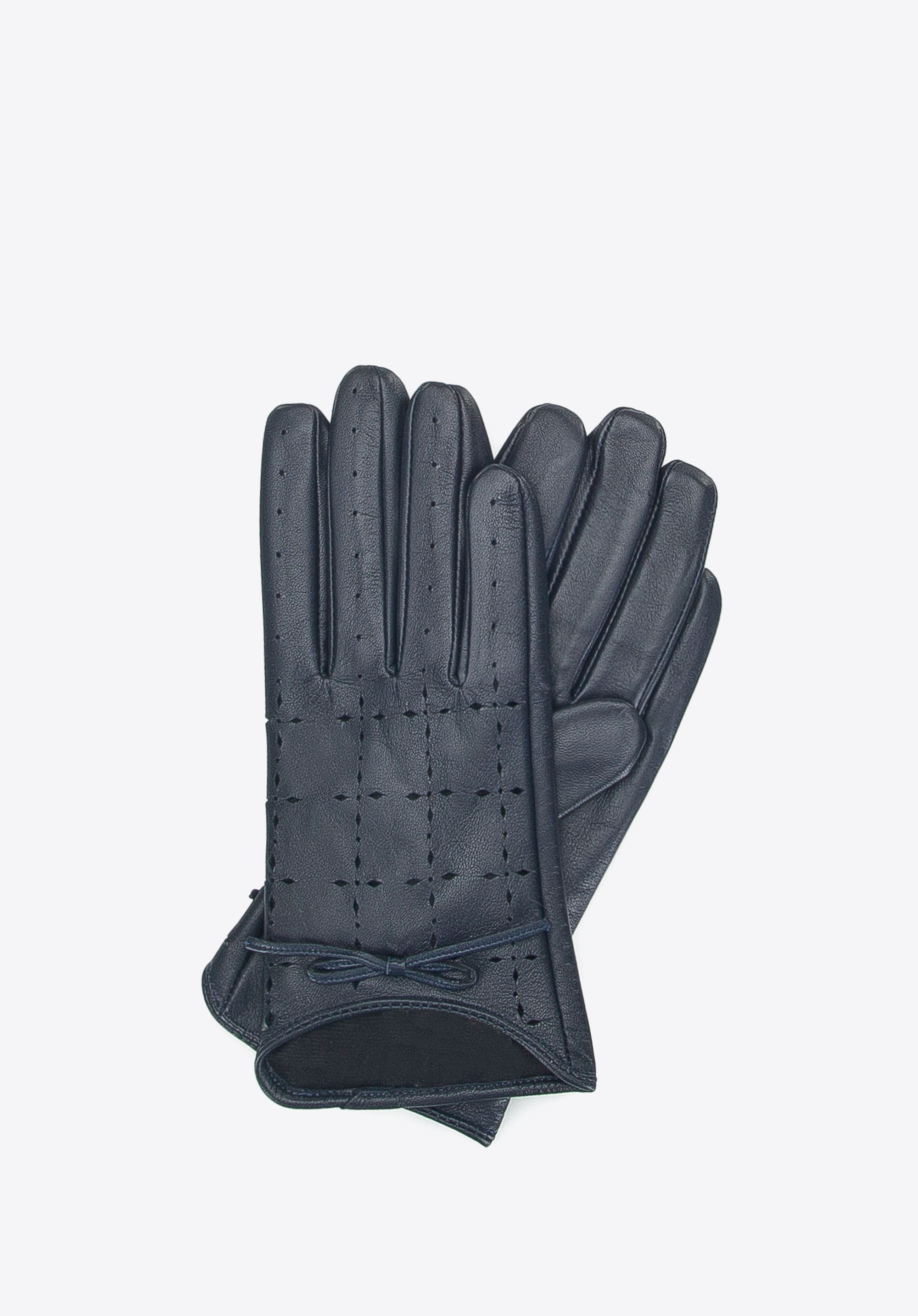 Klasszikus, béleletlen női kesztyű, a legmagasabb minőségű báránybőrből készül. Kifinomult lyukacsos mintázatának köszönhetően nőiesen kifinomult kesztyű. Stílusos masni emeli ki az összhatást, megőrizve a modell stílusosságát.
