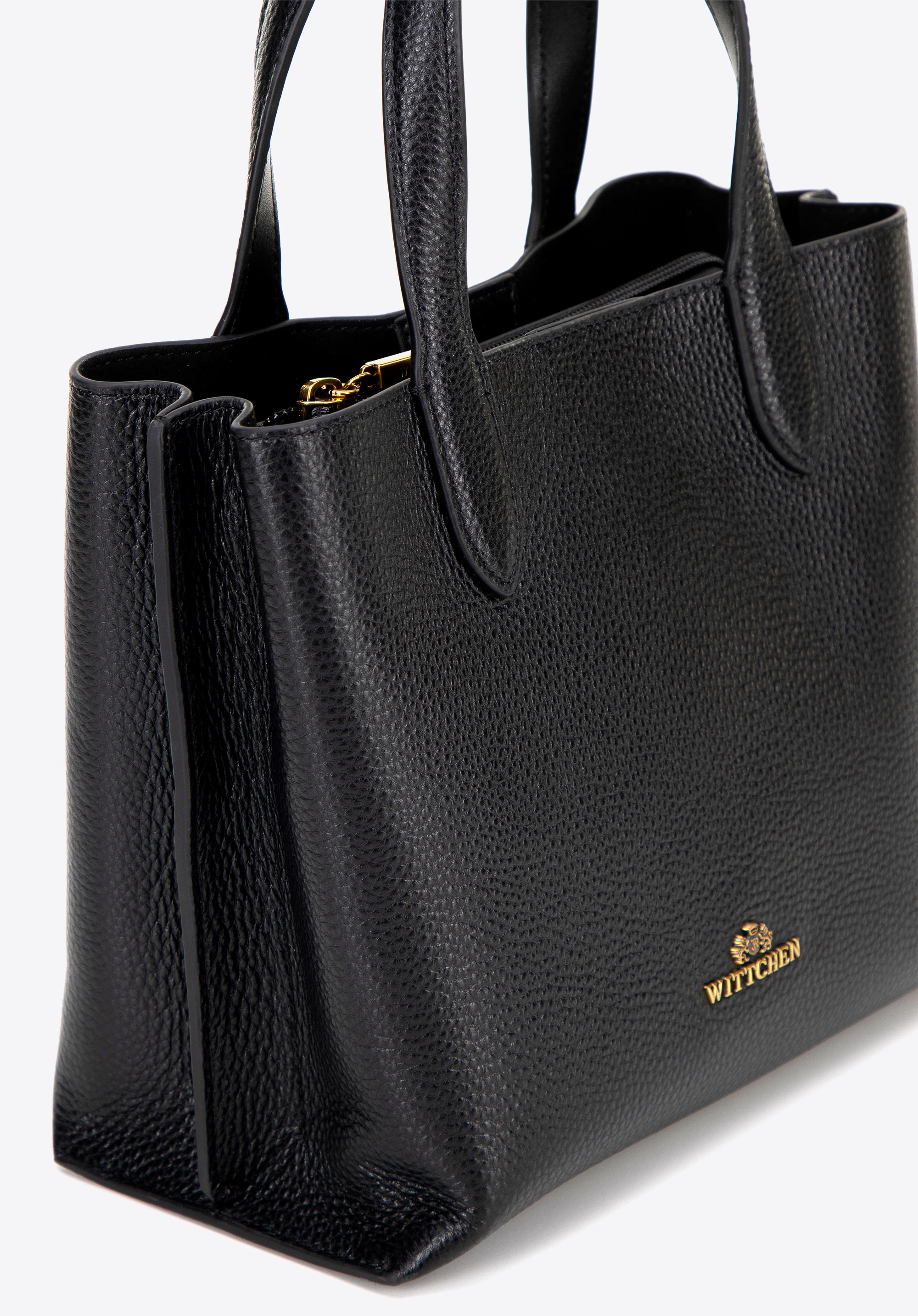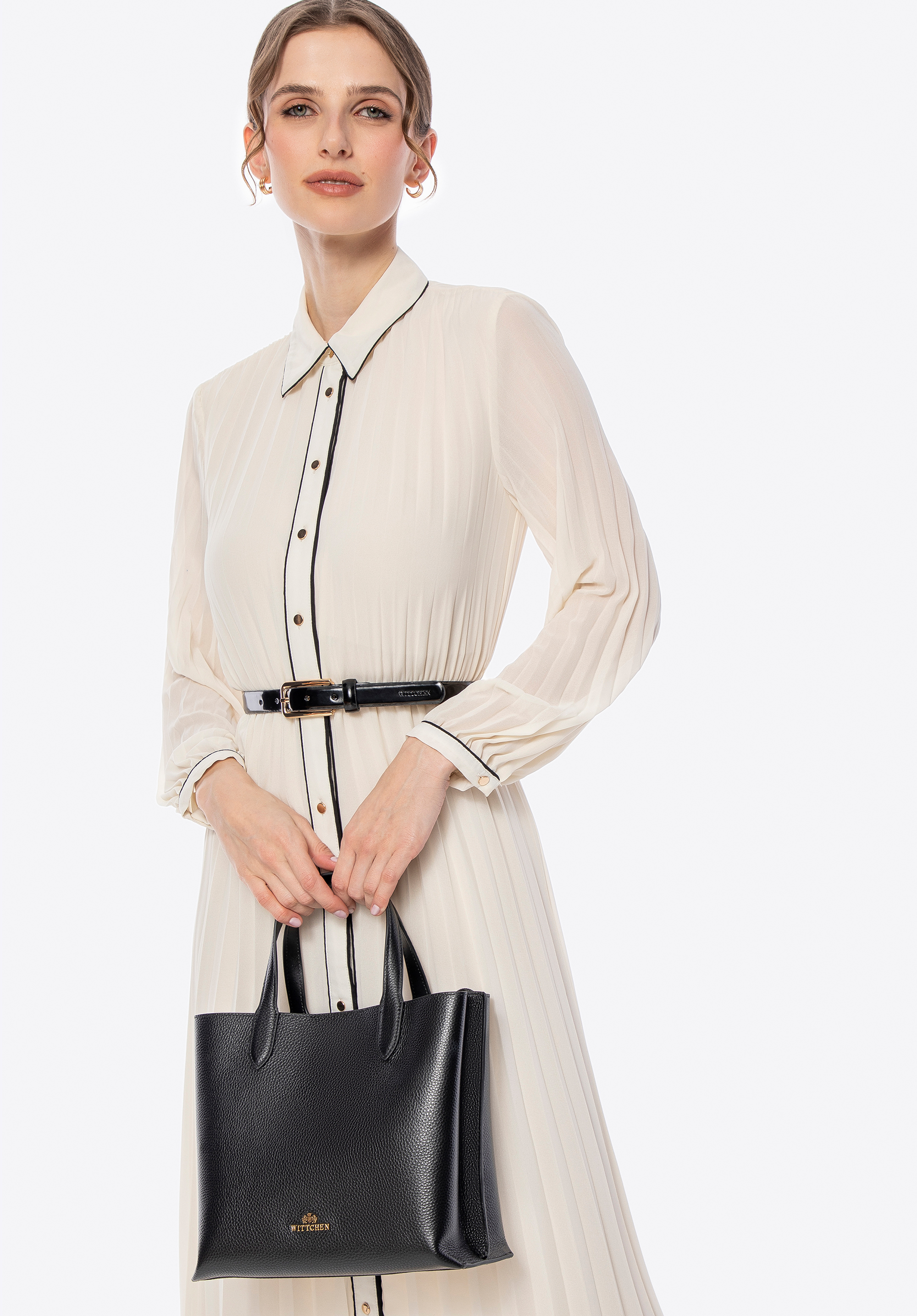 - Klasszikus fogantyúk: A két funkcionális fogantyú kényelmessé teszi a kézi hordozást, időtlen eleganciát adva a táskának.