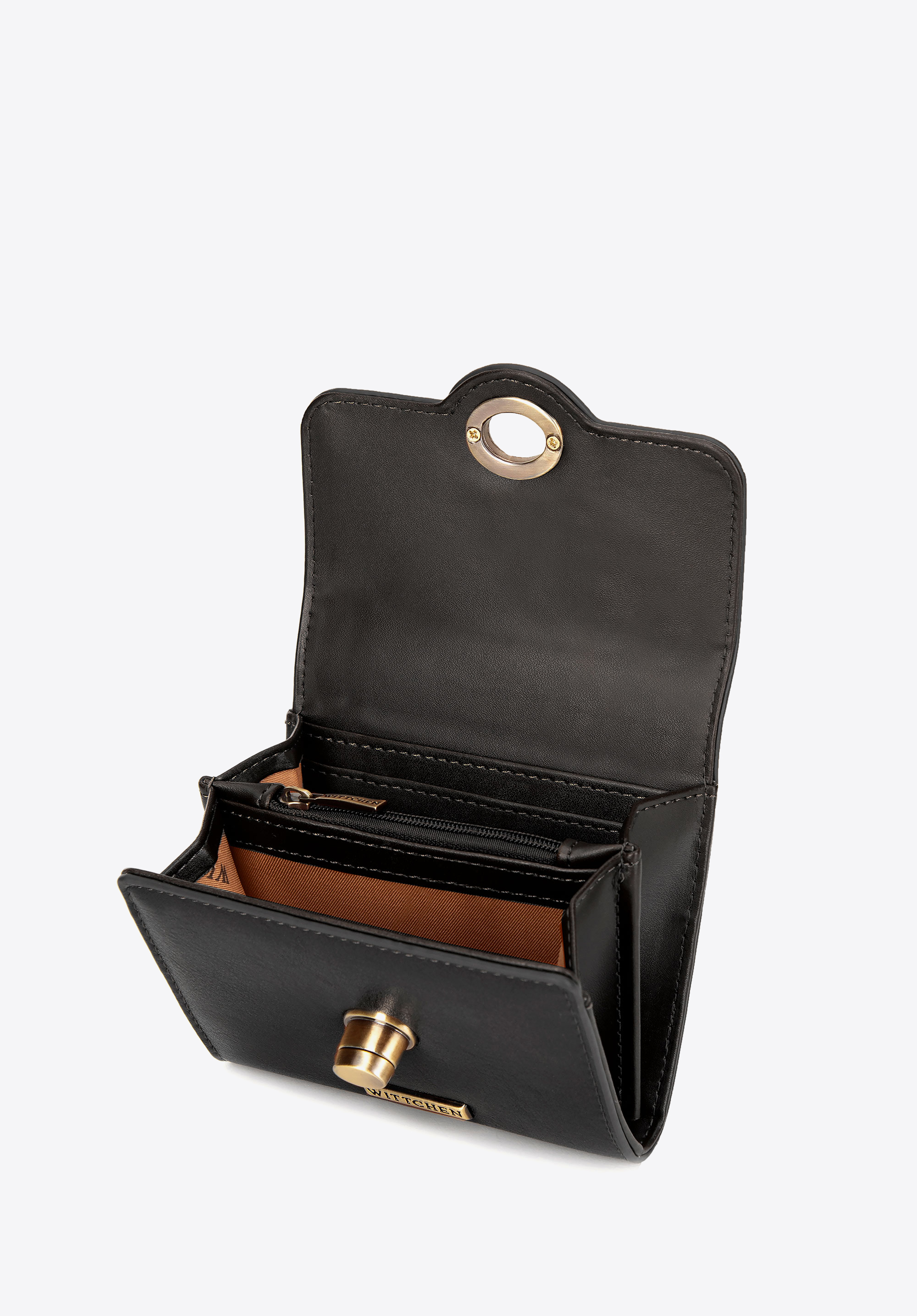Kis méretű női műbőr pénztárca, csavarható gombbal