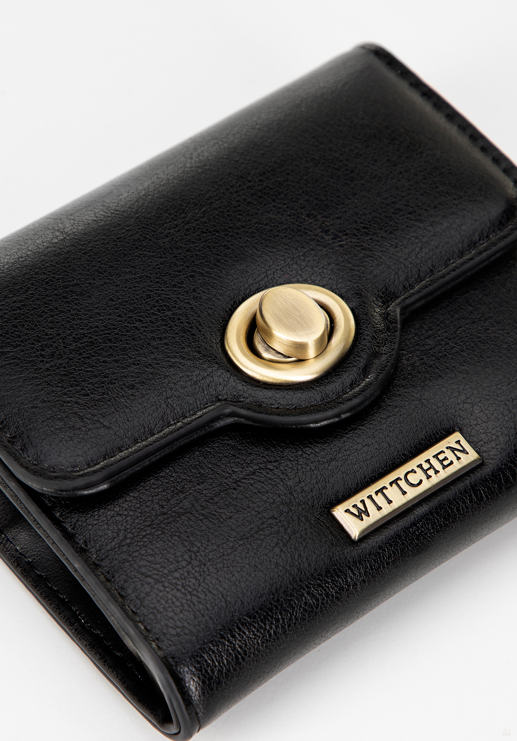 - Fém részletek: Az arany tónusú csat elegáns és fényűző megjelenést kölcsönöz a pénztárcának.