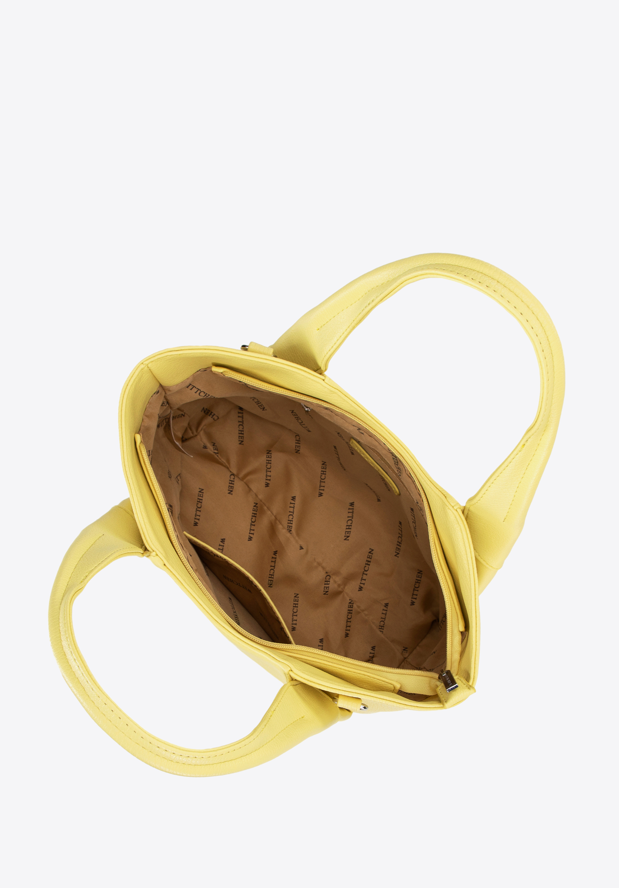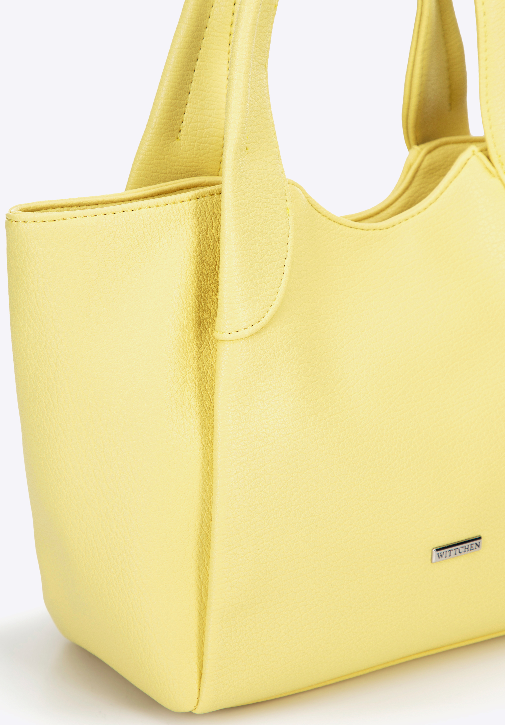Kis méretbe zárt elegancia – ez az ökobőrből készült kézitáska ötvözi a stílust és a funkcionalitást. Kompakt méreteinek köszönhetően tökéletes kiegészítő a mindennapi megjelenéshez, miközben minden lényeges tárgyat a kezében tart. Klasszikus dizájnjának és gondos kivitelezésének köszönhetően olyan kézitáskává válik, amely könnyen alkalmazkodik különféle alkalmakhoz. A két fogantyú és a levehető, állítható pánt kényelmes viseletet tesz lehetővé – kézben és vállon is.