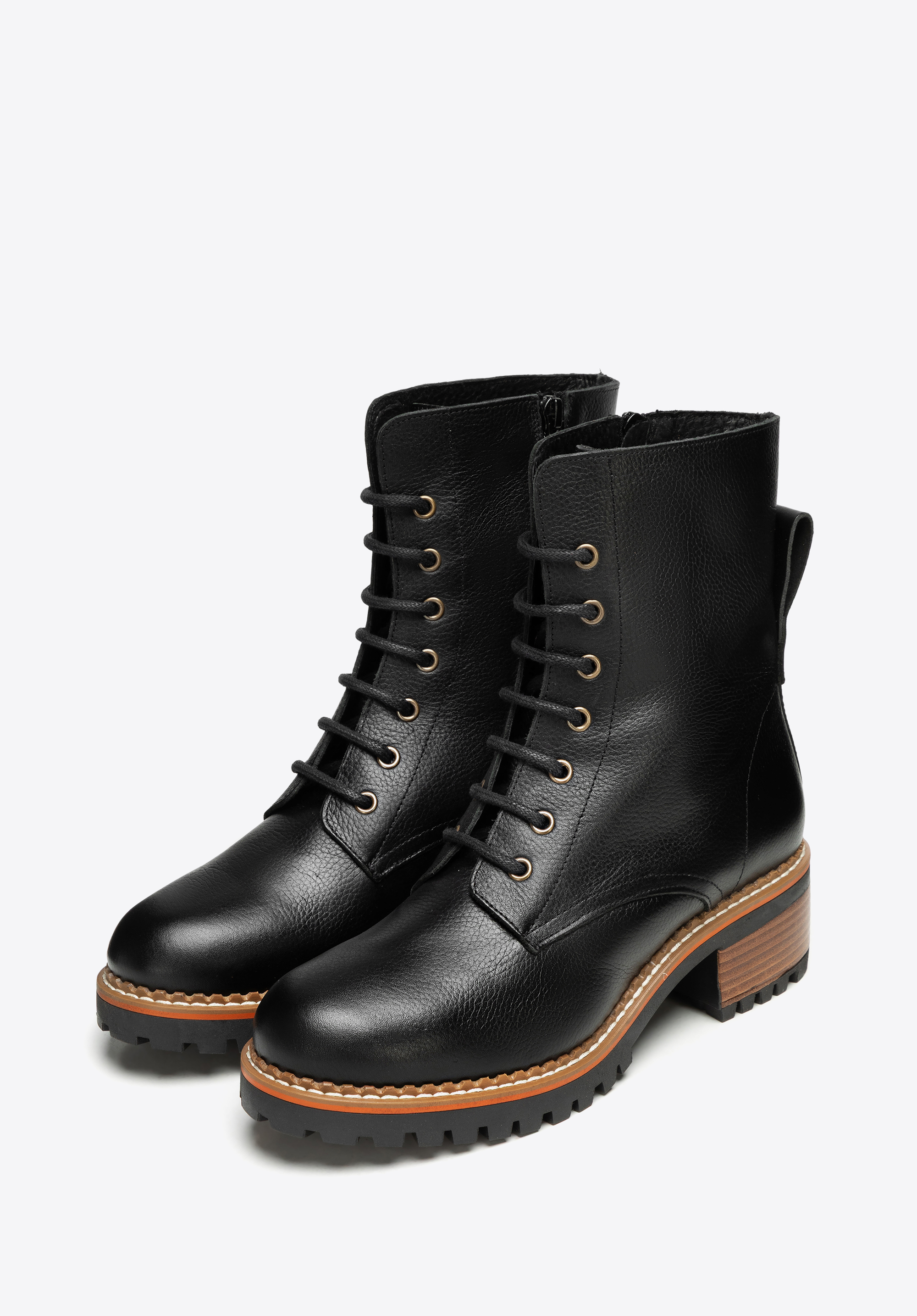 Ez abokacsizma tökéletesen ötvözi az időtlen dizájnt és a mindennapi praktikumot. Kiváló minőségű természetes bőrből készült, időtlen eleganciát visz a mindennapi viseletedbe. A széles, stabil sarok egy kis magasságot ad anélkül, hogy a kényelem rovására menne. A fűzők és az oldalsó cipzár kombinációjának köszönhetően könnyen felvehető és a láb formájához igazítható – nagyszerű a mozgalmas napokra. Spanyolországban készült, a kézművességet és a részletekre való odafigyelést tükrözi, minőséget és tartós kényelmet kínálva.