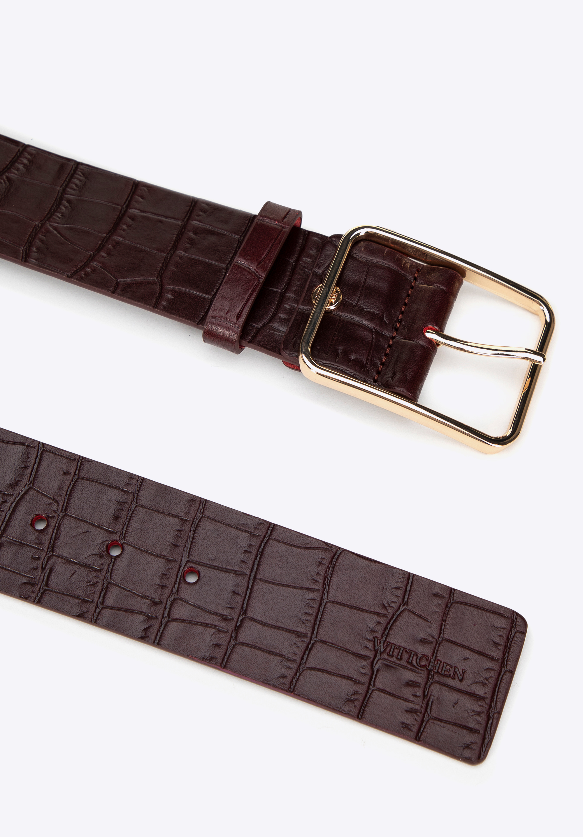 Fedezd fel az időtlen eleganciát kiváló minőségű, krokodilbőrből készült női övünkkel . Ez a stílusos kiegészítő bármilyen ruhát feldob, a mindennapi megjelenéstől az esti eseményekig. A finom logó és a téglalap alakú csat modern, kifinomult karaktert kölcsönöz neki. Ez az öv minden ruhatár nélkülözhetetlen kiegészítője, mivel az öltözékedbe illesztve emeli általános kifinomultságod és stílusod.