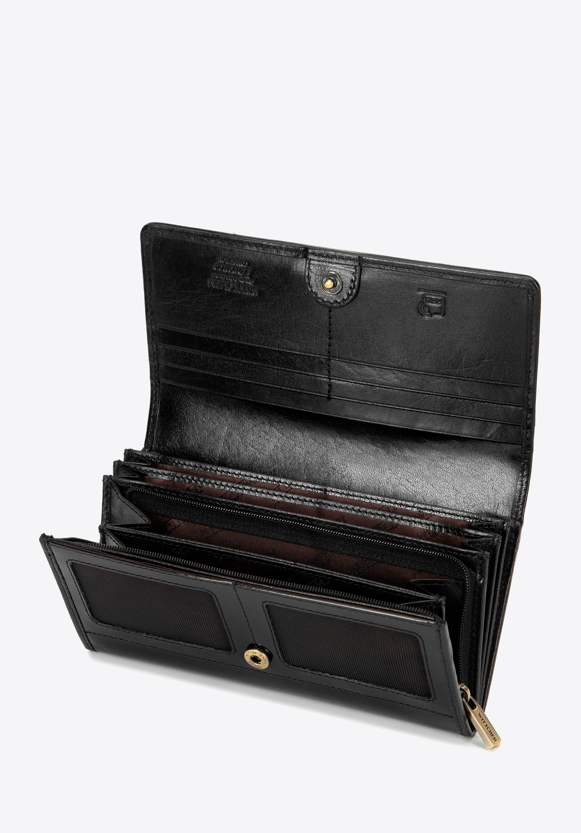 Az elegáns és fényes WITTCHEN női pénztárca tökéletes választás a modern nő számára, aki értékeli a stílust és a funkcionalitást. A legjobb minőségű természetes lakkbőrből készült pénztárca finom fényével tűnik ki, kifinomult karaktert adva neki. Ezenkívül innovatív RFID-blokkoló burkolattal rendelkezik, amely megvédi kártyáit a jogosulatlan szkenneléstől a fokozott biztonság érdekében a mindennapi használat során.